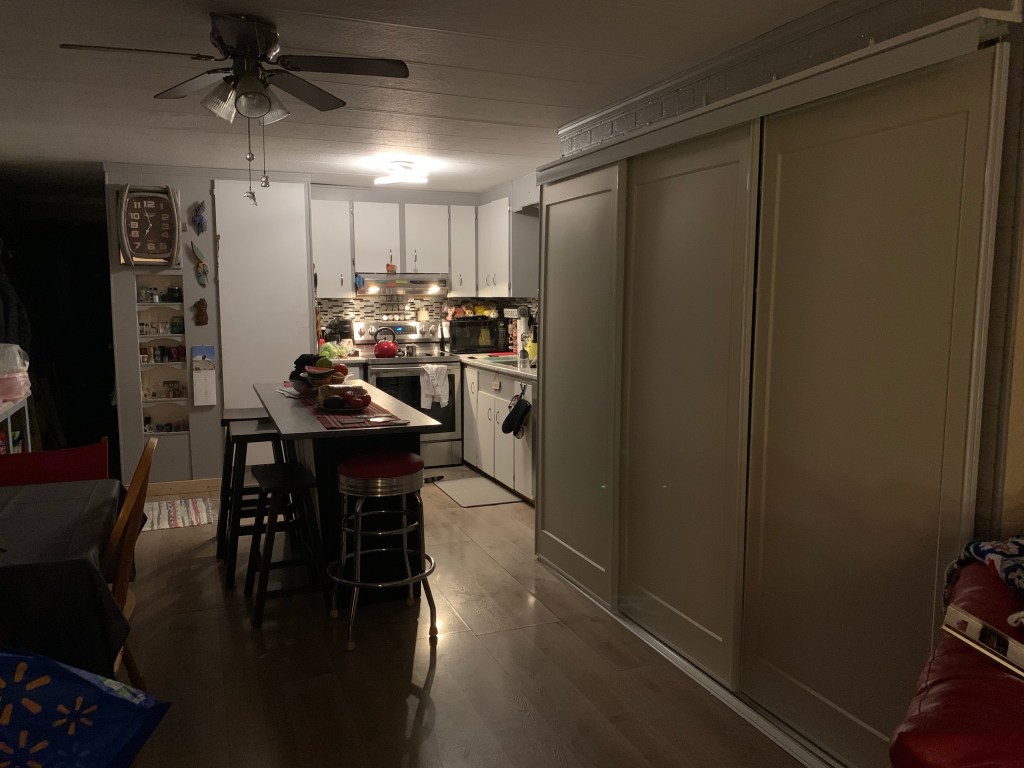 I managed to get my doors hung. Still need to box in the ends and paint them and attach the bottom track but it feels good to get them up since I ordered them last August and it took so long to get them. Probably would have been easier with Jake’s help.