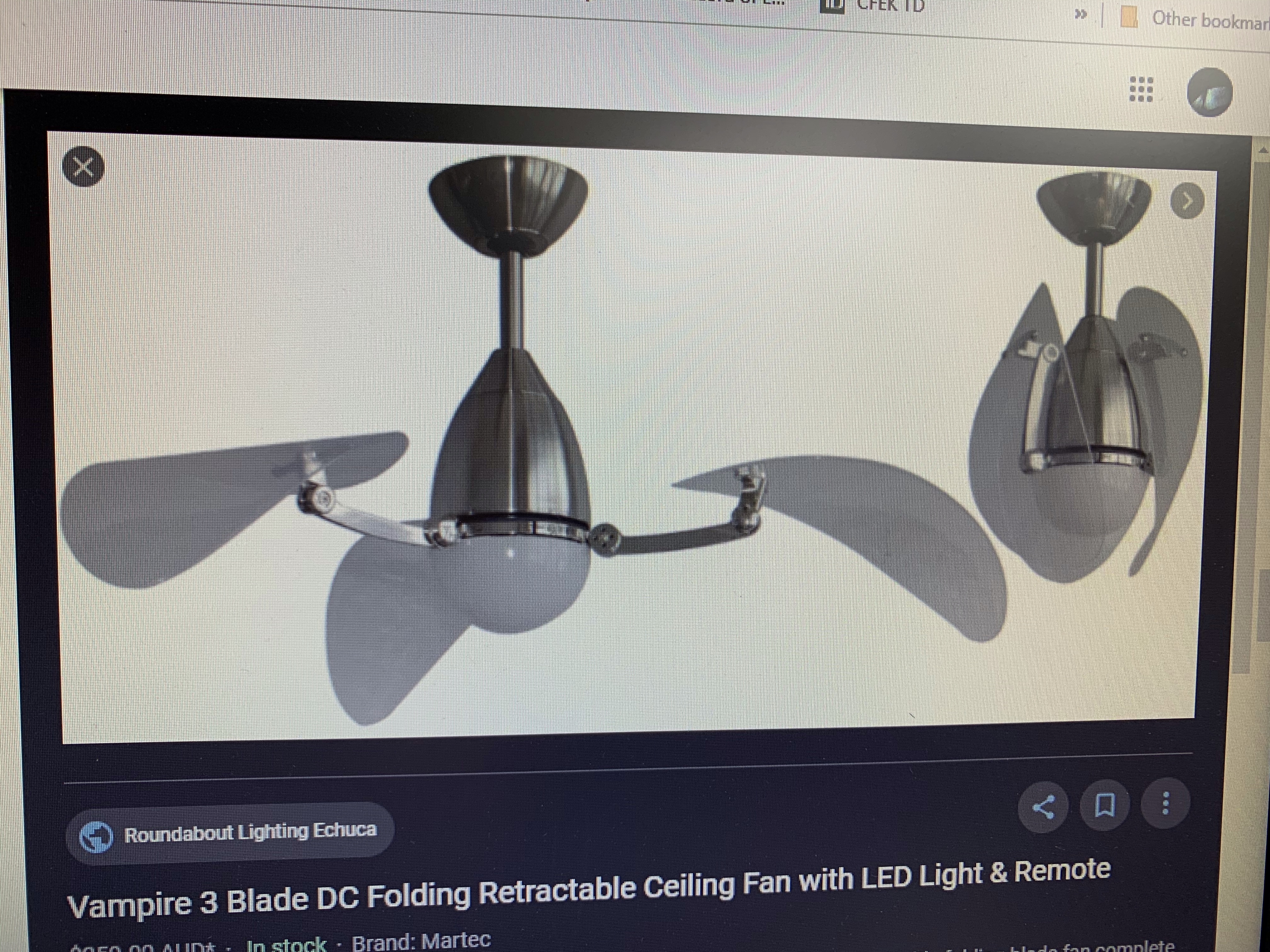I was mentioning to Sean that I wanted to find a modern, close to the ceiling fan to match my kitchen. I went into my office and searched LED ceiling fan and the first pictures to pop up made me giggle uncontrollably. I sent pictures to Rae and Diane and asked what they thought. They both responded so earnestly that I was crying with laughter. One would make me feel like there was a Star Wars universe on my ceiling and the other like there were bats in my belfry. Given the right space I would love either of them but not in my small space.