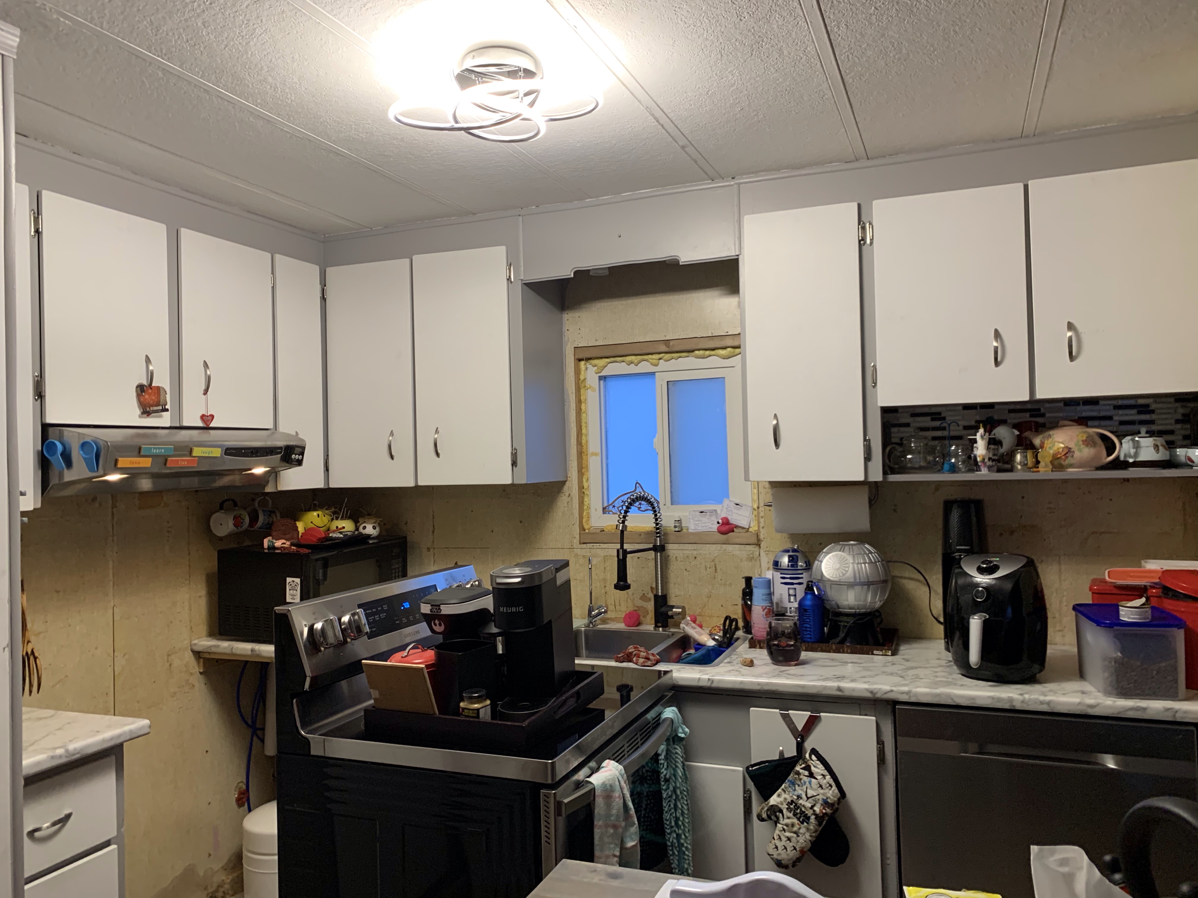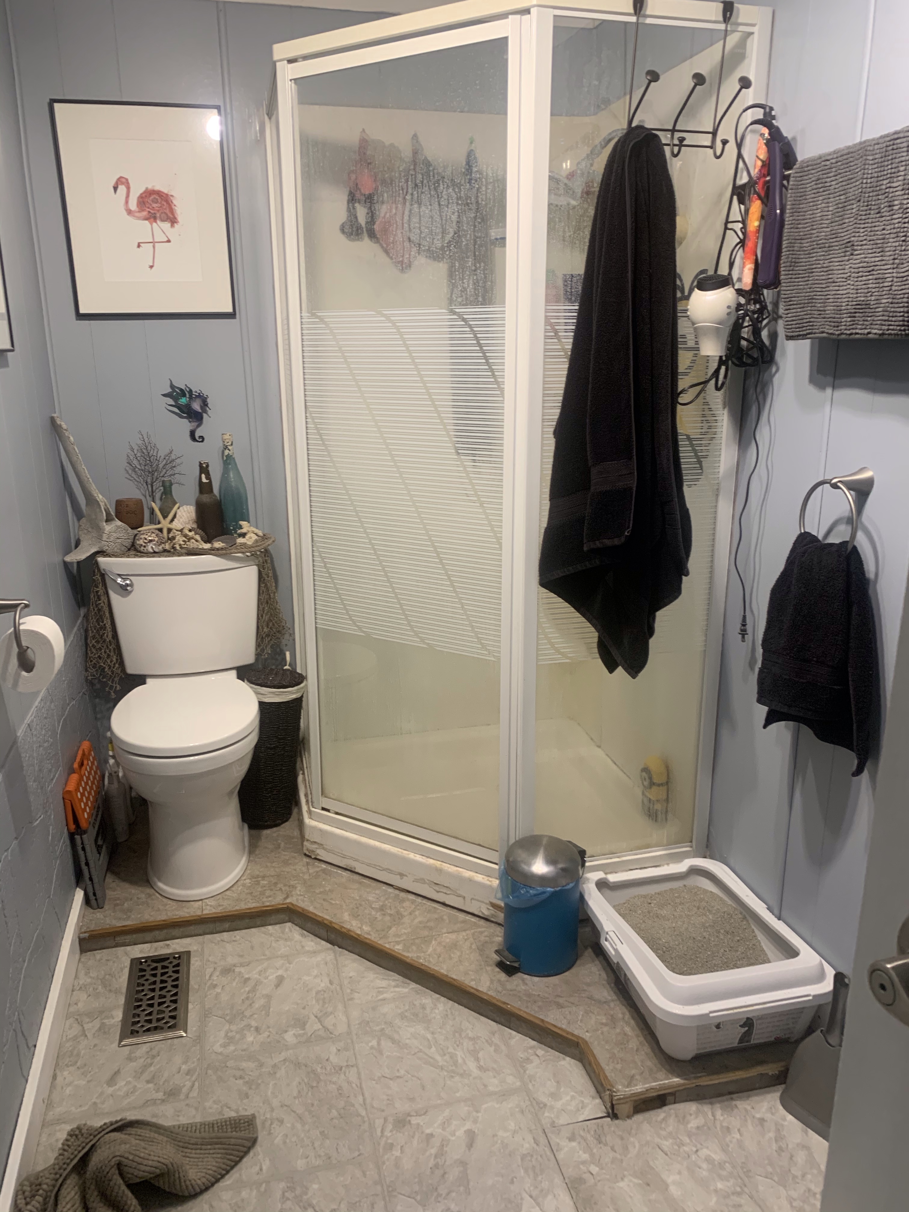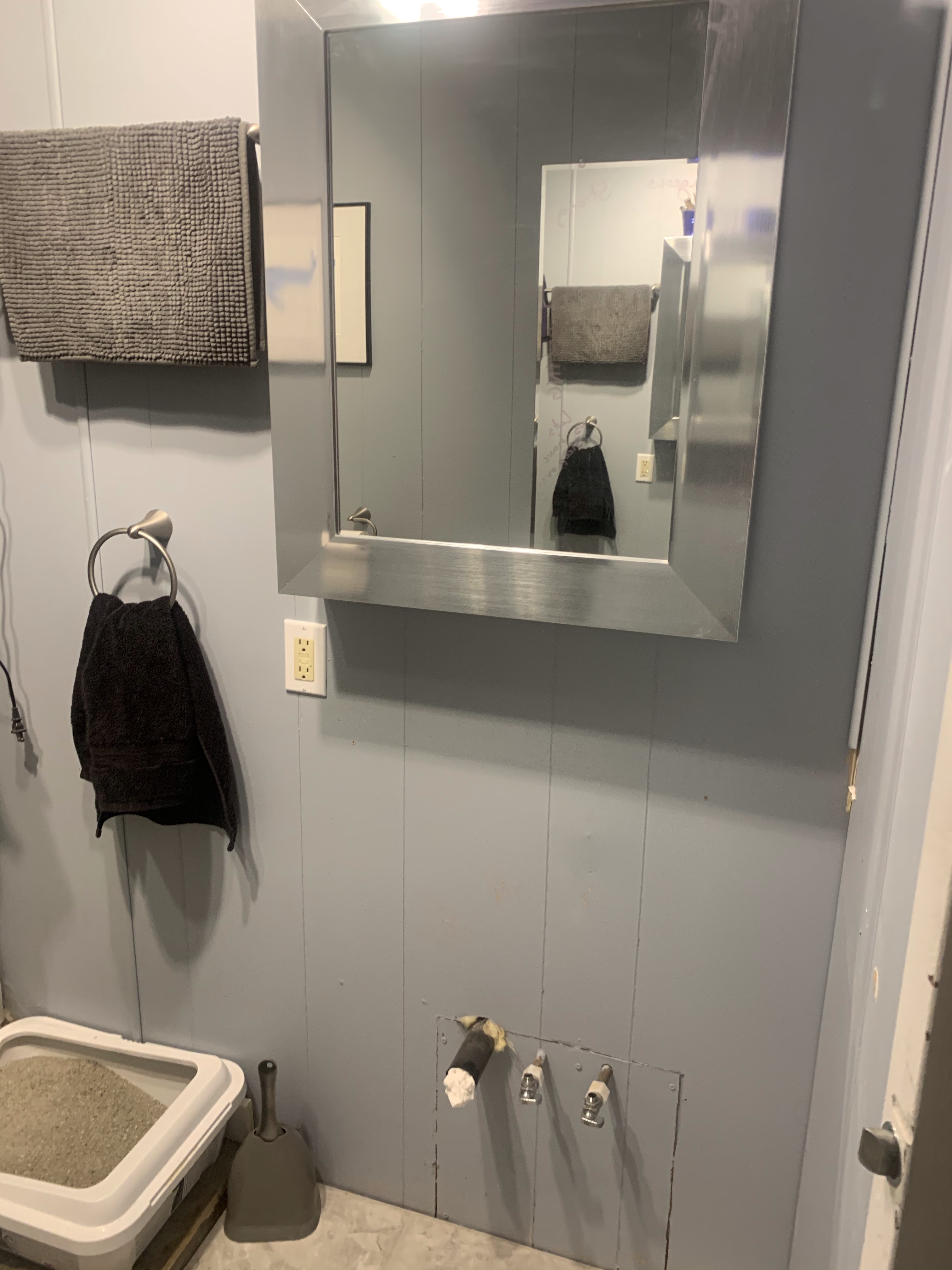 I got a call this afternoon that they would like to come install my furnace tomorrow so I had to come home and uninstall my bathroom vanity. Because I don’t want to have it stick into the hall I will have to take a little more room out of the bathroom. As I am doing a full renovation of the bathroom to rip out the shower and fix the floor back to flat this is the beginning. Rae said they can use it at their house and I will be looking for the perfect smaller one.