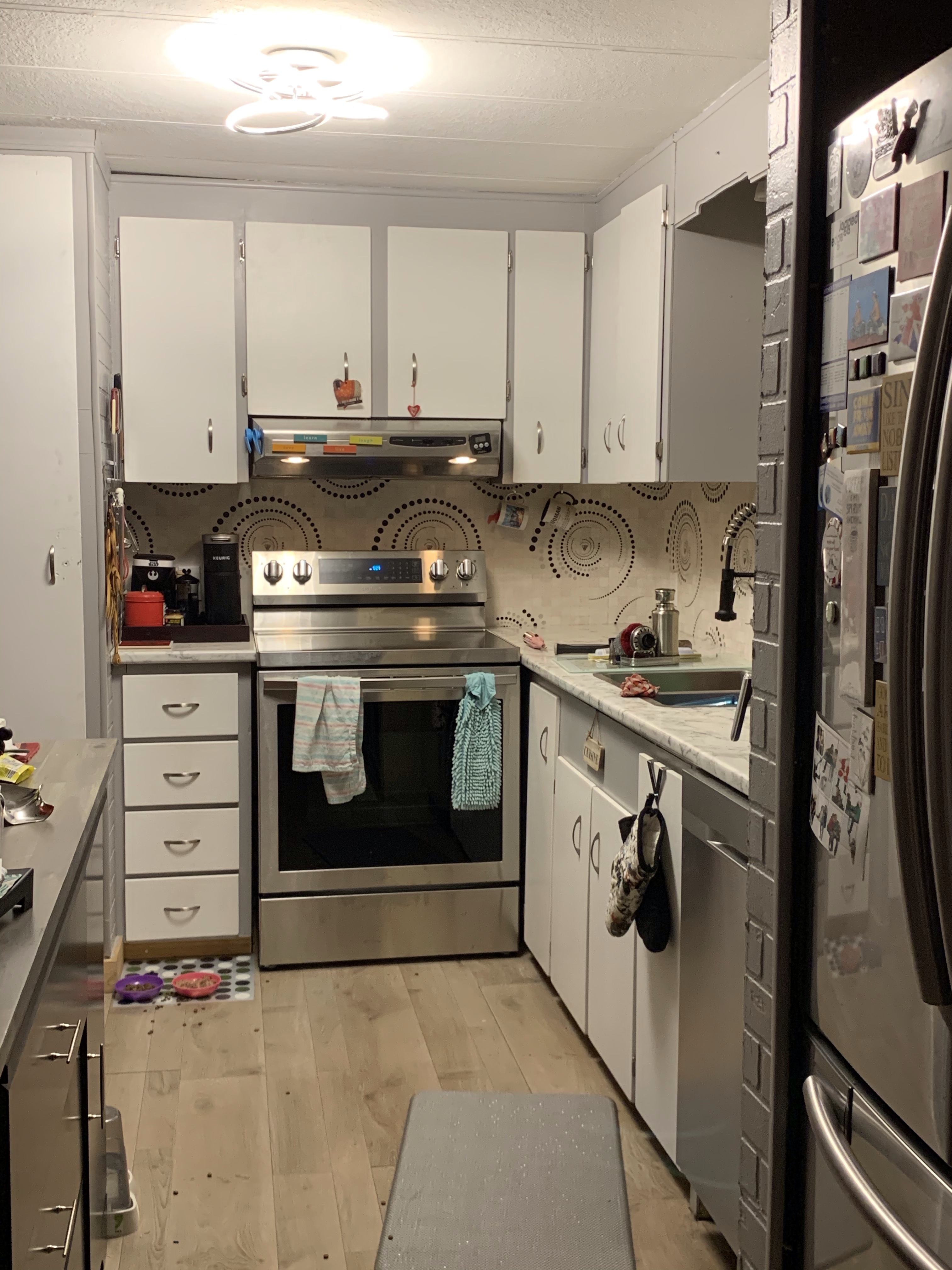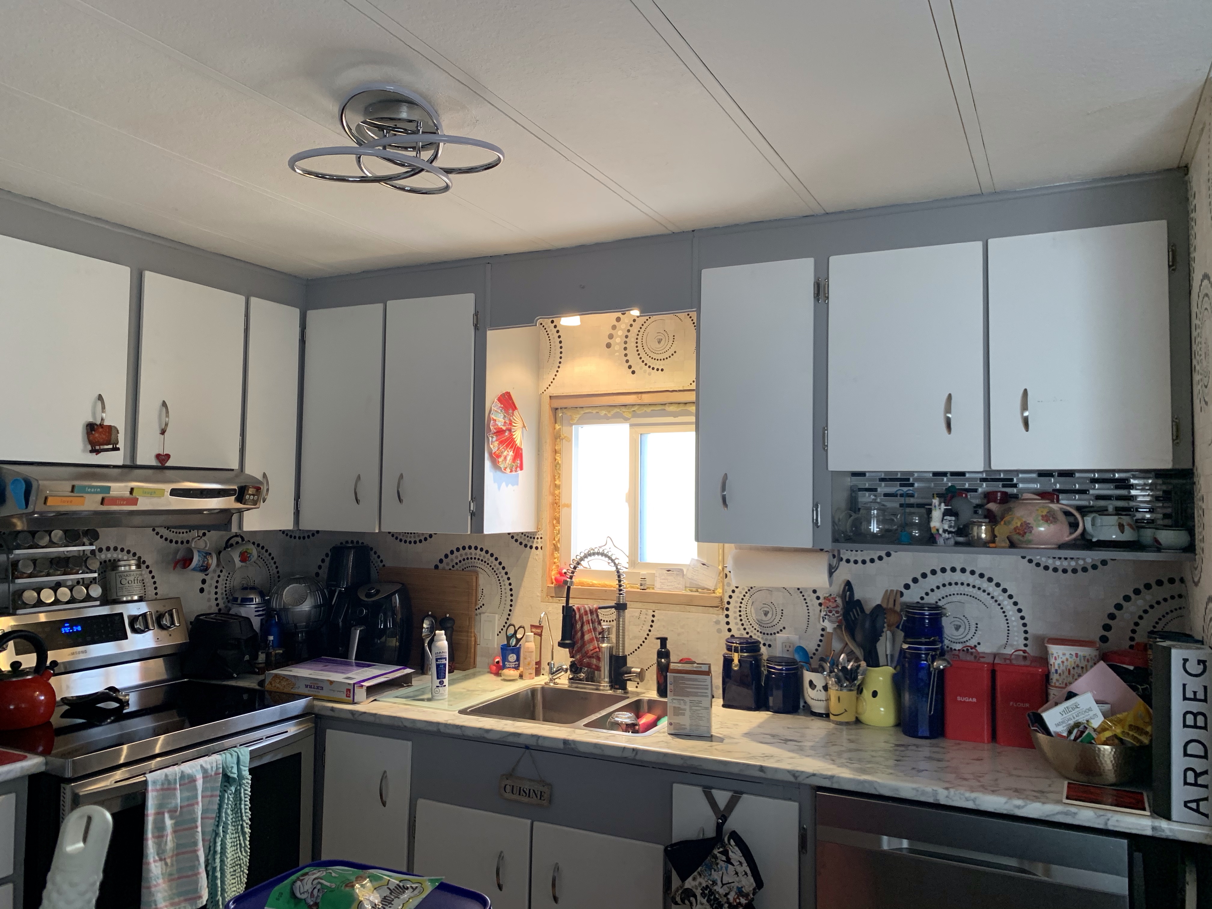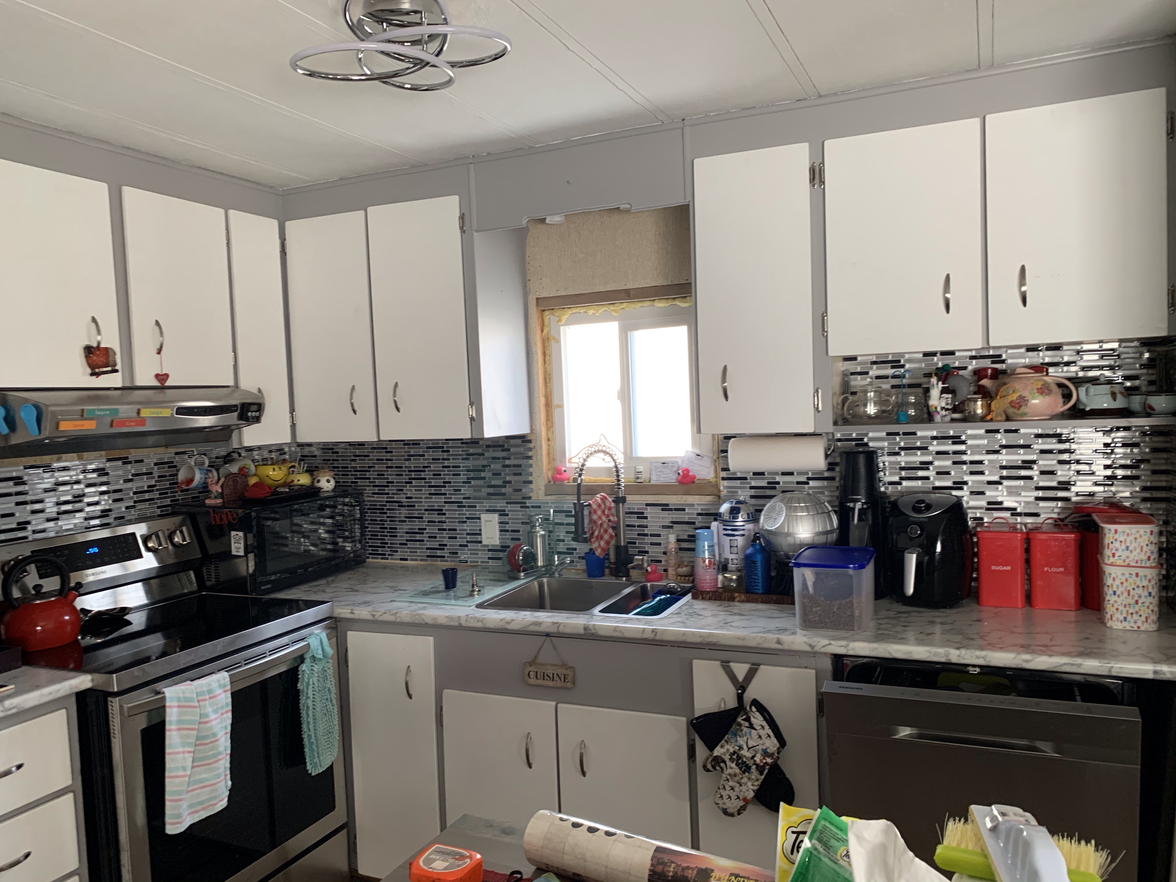 I got a call this afternoon that they would like to come install my furnace tomorrow so I had to come home and uninstall my bathroom vanity. Because I don’t want to have it stick into the hall I will have to take a little more room out of the bathroom. As I am doing a full renovation of the bathroom to rip out the shower and fix the floor back to flat this is the beginning. Rae said they can use it at their house and I will be looking for the perfect smaller one.