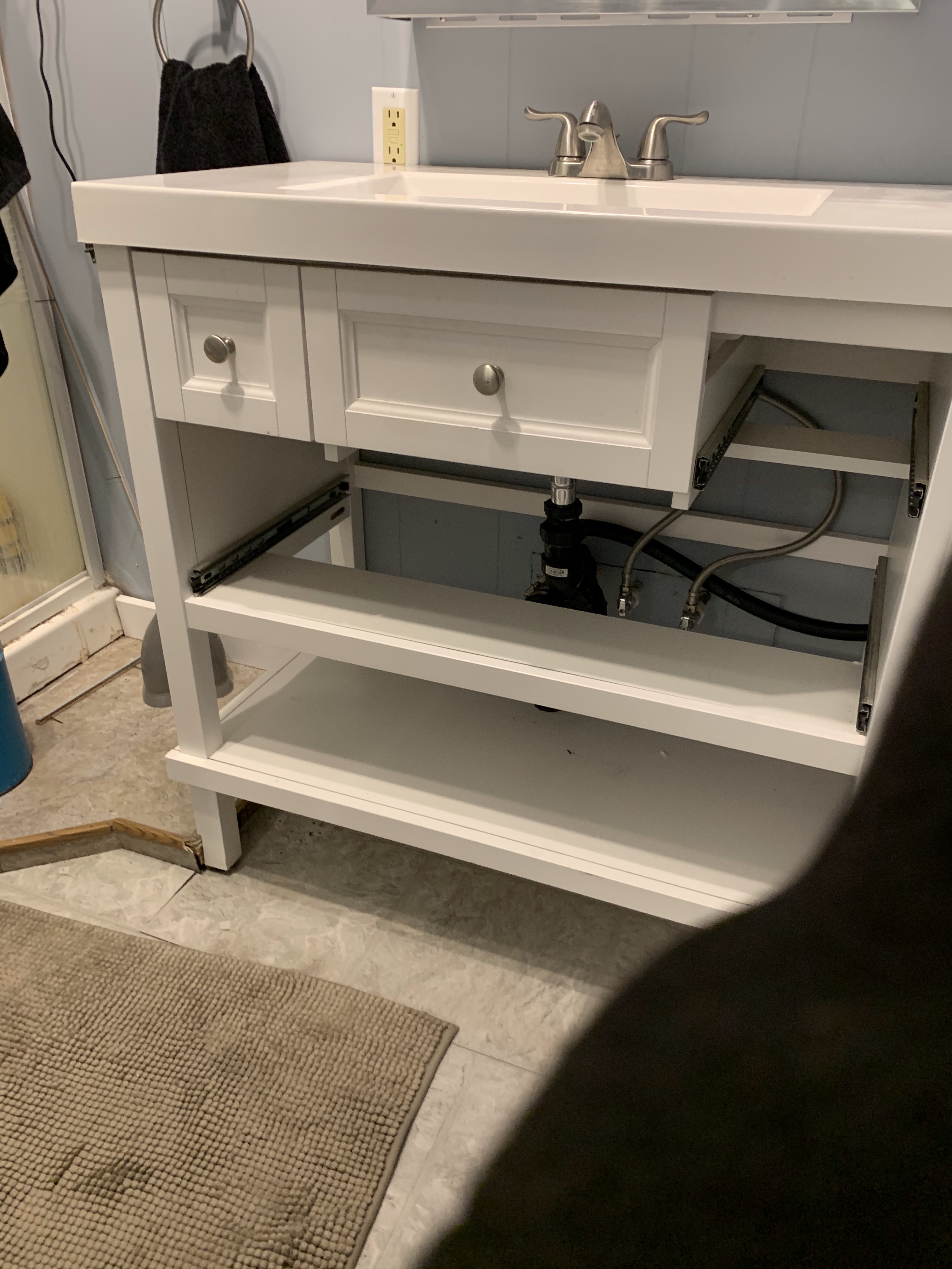 Toward the end of the day I got a call from Jackson’s heating letting me know the guys were done but would be back with the custom cover plate on Monday. I stopped at the liquor store and headed home. I was absolutely shocked into a verklempt state when I got home and found that I had a beautiful furnace that is so quiet I am surprised when I see the money tree moving above the vent. more stunning and causing instantaneous outbursts of gratitude was the fact they reinstalled my vanity!!! Turns out the wall didn’t need to be moved and he needed to hook up a drain line. Must have decide to do me a solid at the same time. I would have had a nightmare putting it back around the new plumbing!! Seriously, I can’t even explain fully all the joy that brought. It was heavy and hard for me to take out on my own last night. To come home to a fully functioning bathroom is marvelous! I will be sending along a thank you note.