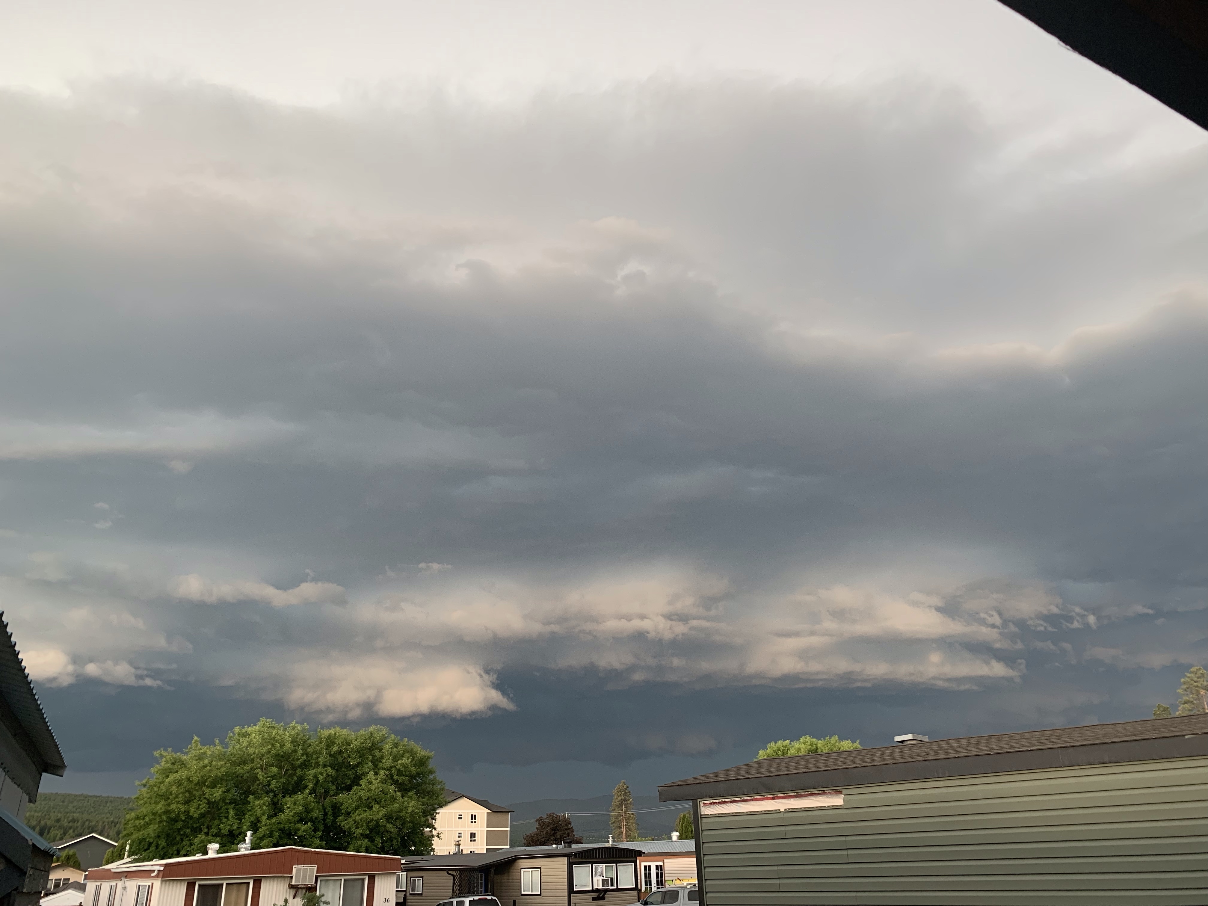 I fell asleep in my new pillow and the feel of it along my spine left me feeling spooned for the first time in a long time. I slept well even with the effort to roll over. I had no problem getting out of bed once I untangled myself. I went to let Missy out and noticed the most incredible clouds I have seen here. I grabbed my phone to take a picture and saw the weather alert. After a few photos, I saw things were changing fast and started videoing. It was powerful and swept through quickly.