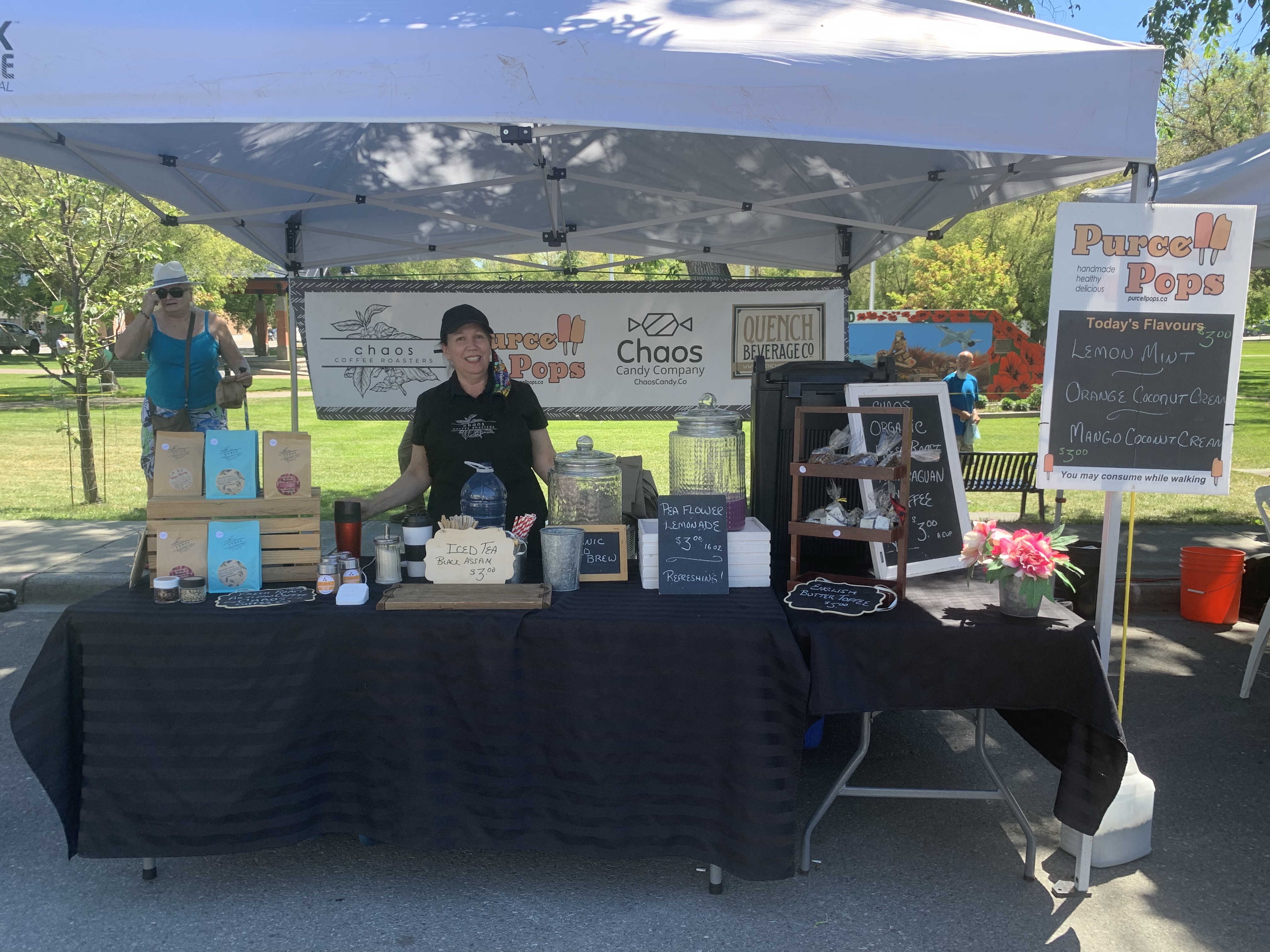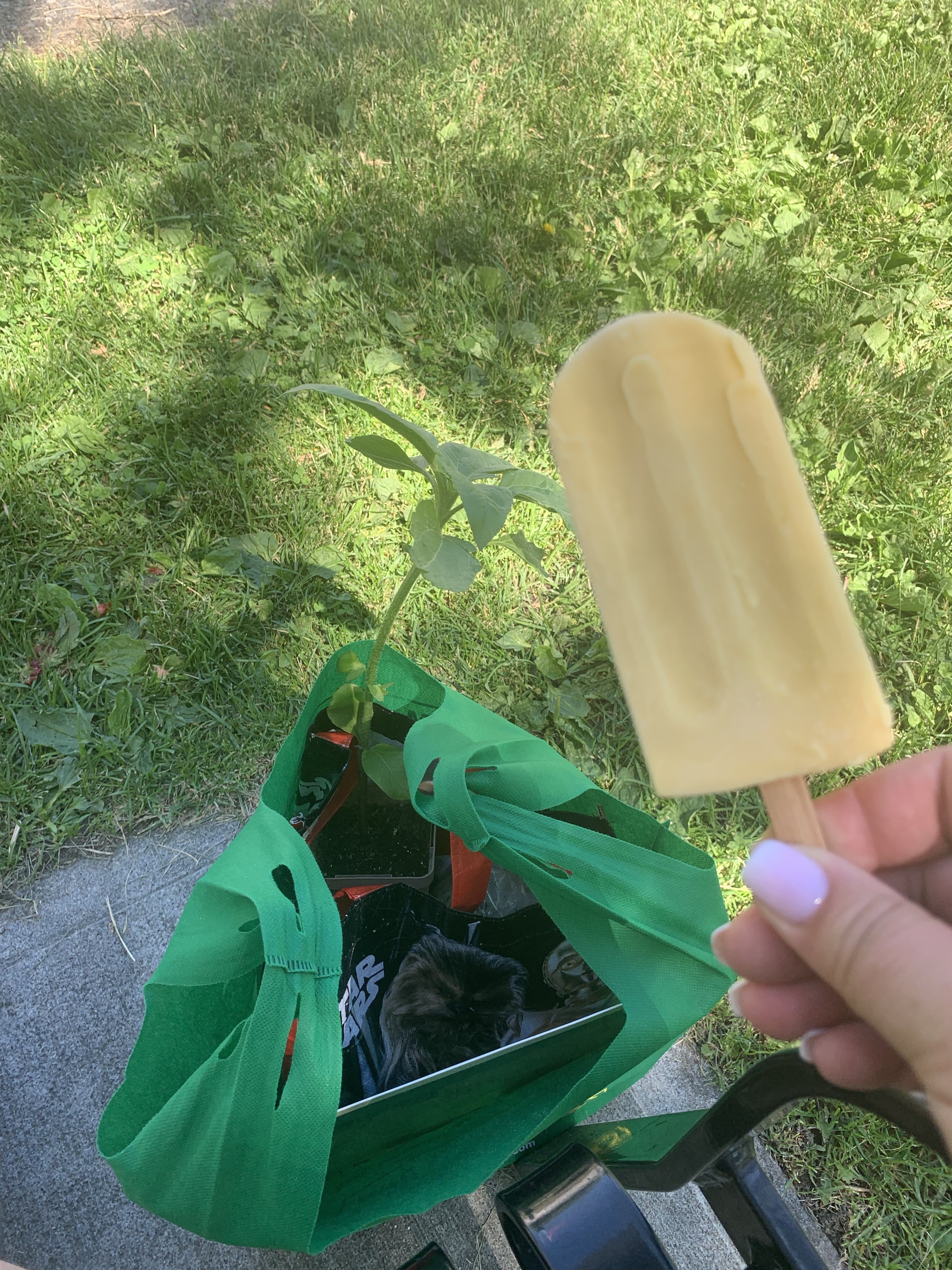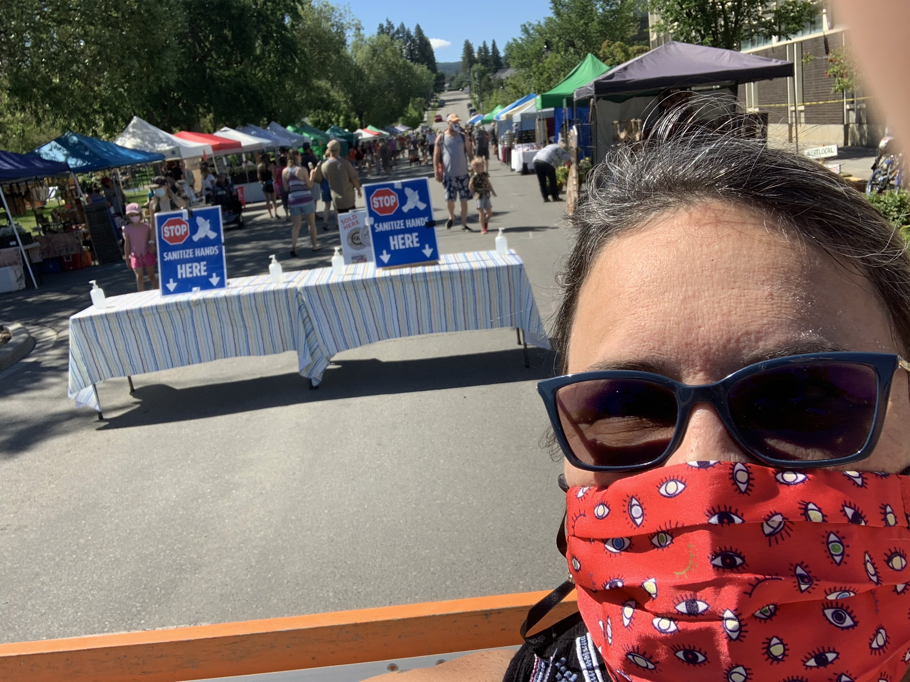 I was awake at a decent time so I got out and watered everything. It was forecast to be very hot. I stayed in and watched footage of yesterday’s grad in Bella Bella. It made me tears to see all those beautiful humans celebrating the success of the large class. There are usually maybe half this many and I knew so many of the families as they were the kids when I lived there. Around 11 I headed into town for The Farmer’s Market. I had made a plan to pick up my winnings from last night at Siobhan’s booth. I was parked already and walking towards when I realized I forgot my phone. I went back home for it and was on my way back when I looked both ways pulling off 4th St S onto 7th Ave when suddenly there was a vehicle with a couple bikes on the back in front of me. I scared the woman and felt bad about it. She was exactly hidden by a parked car until I pulled out. Close call. The market was lovely, by the time I got there it wasn’t too busy and I was able to take in everything. I bought Cinnamon Raisin bread, Pea and sun flour shoots, Ginger Mead, Goats and Hoes Soap, A sunflower seedling from a young girl, a pair of lovely sea glass earrings and met the man who custom made the table I sent home with Jake last weekend. I then purchased an Orange Coconut Cream Popsicle and sat on a shady bench in the park to read a script. I am on the play selection committee and had a new one to read. It was so lovely that I had to close my eyes on occasion and just listen to the sounds of life in the area, including the kids playground, the birds and dogs and the musician down the lane. For the first time since 2019, I was at the market and enjoying a little bit of normal. In a a mask to be careful, but mostly normal. Just as I had finished reading I got a text that my shelter was ready for pick up at Canadian Tire so I texted the neighbor, Tracey as she had said she could grab it for me in her truck. Before I left I had to buy a jumbo hot dog from Keon who was set up in the parking lot for a heart and stroke event. Got home and puttered about the yard, had a drink with Tracey, cleaned the pool and got it ready. I had an edible, put on a bikini and floated about in the pool listening to the Shred Kelly concert again. It was sooooo relaxing. Came in and showered and had leftovers and then Ashlée arrived to take a turn at floating while I sat in a chair and we had a great catch up.