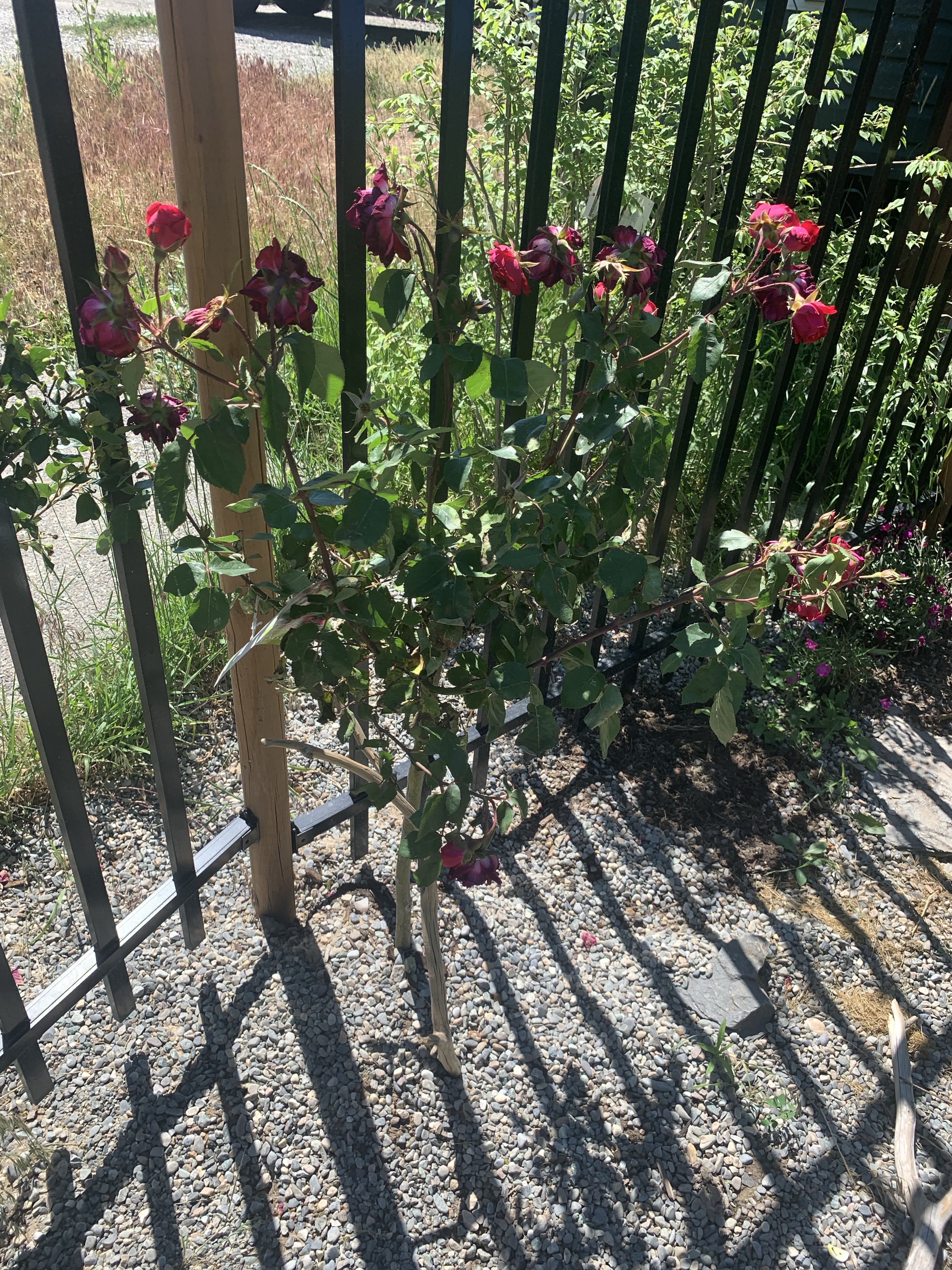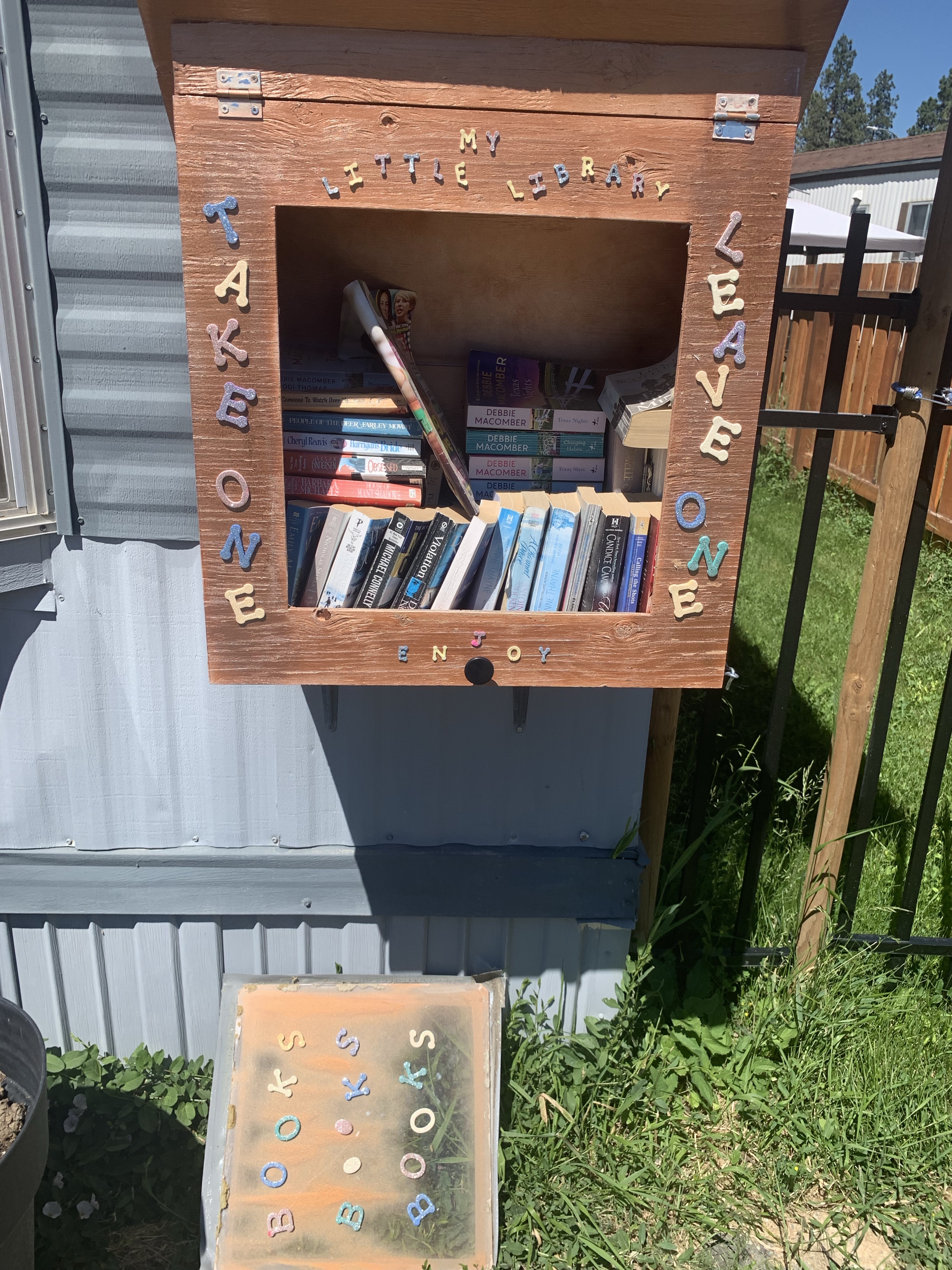 It was so hot that when I got home, the clear plexiglass in the door of my little library had fallen off! My rose does not look very happy either!