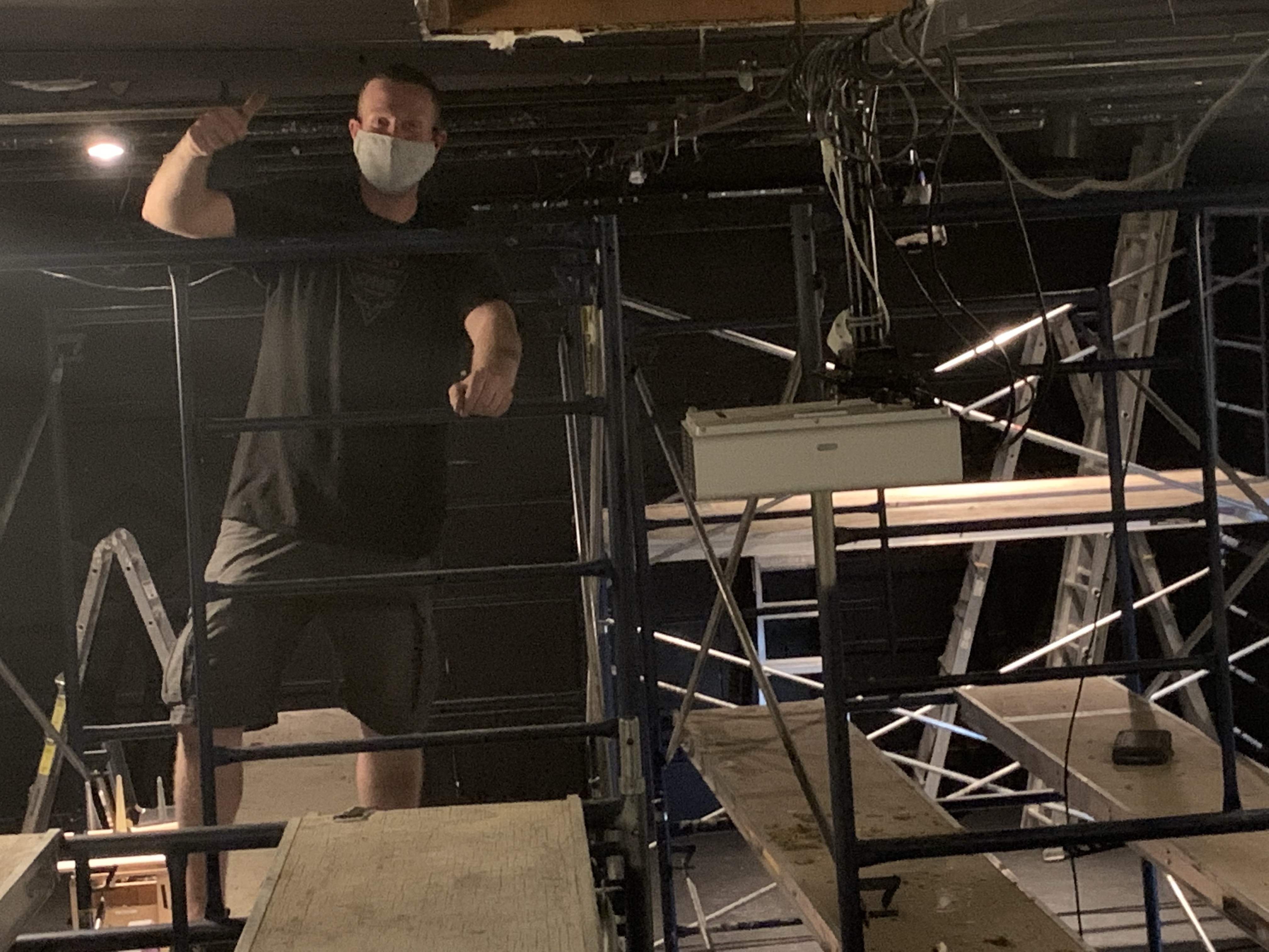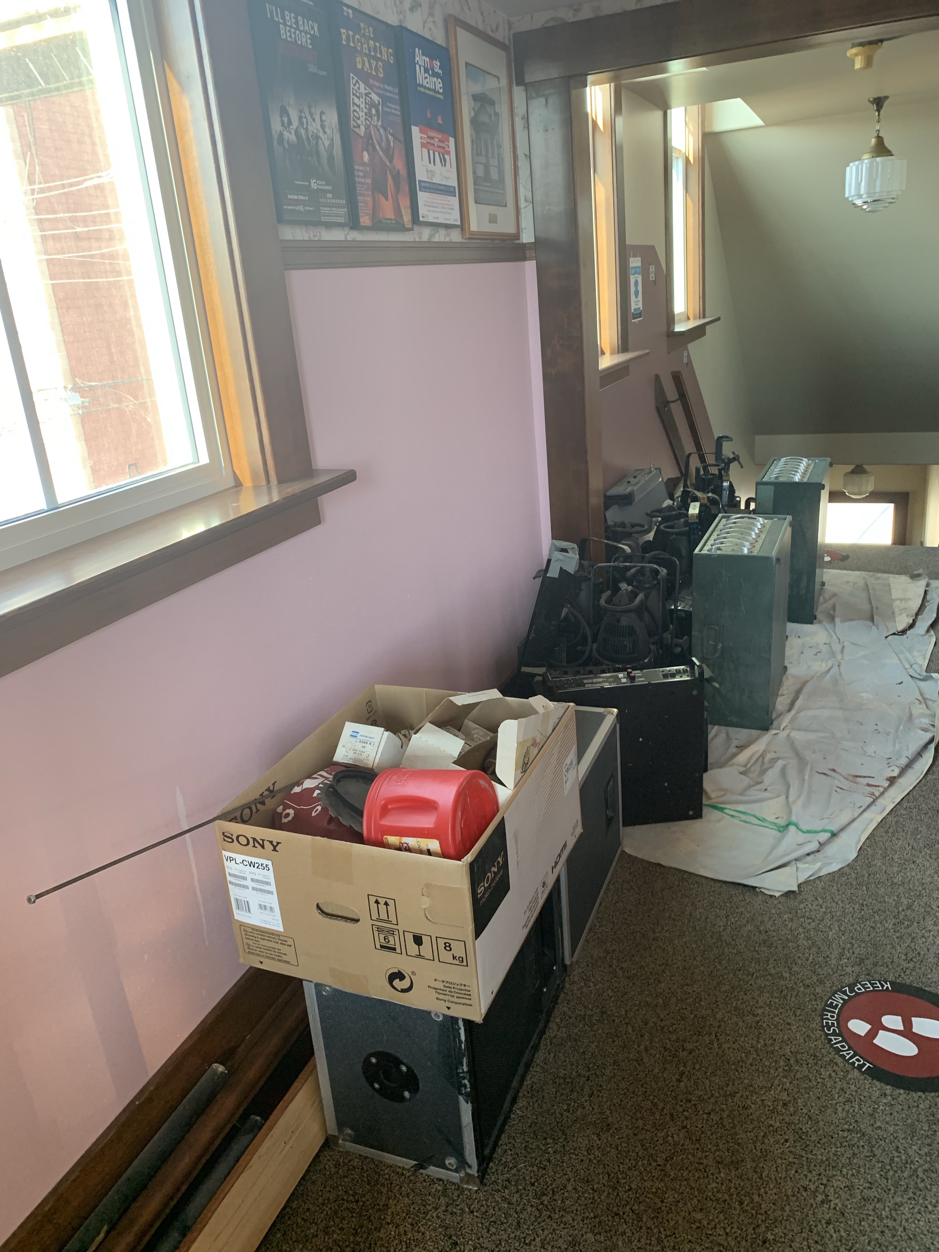 I had a Dr appointment by phone and she referred me for an X-ray to try to get to the bottom of things. I picked up a prescription for Gabapentin as Dr S thinks it is nerve pain I am suffering. Afterward I headed to the Theatre to get organized for the people who would be arriving to help take down all the lights and projectors and empty the Tech room behind the booth in anticipation of it being renovated. So much is going on and I am so happy that Peter, Jennifer, Sandy, Deb, and the Penny’s, Amy, Kevin and Lincoln came to get it done. I already feel like I wish I had been more involved with the building of the work surfaces. I thought what I had said would be sufficient. I am practicing patience to see the final project . We did put everything in the lobby into two piles of keep or go. I will put pictures up on line soon offering people to come get if they can use it. Lots of old gear, etc. We got it all done in under an hour and a half. It was nice to see Sandy and Deb again and everyone was very understanding that I couldn’t lift.