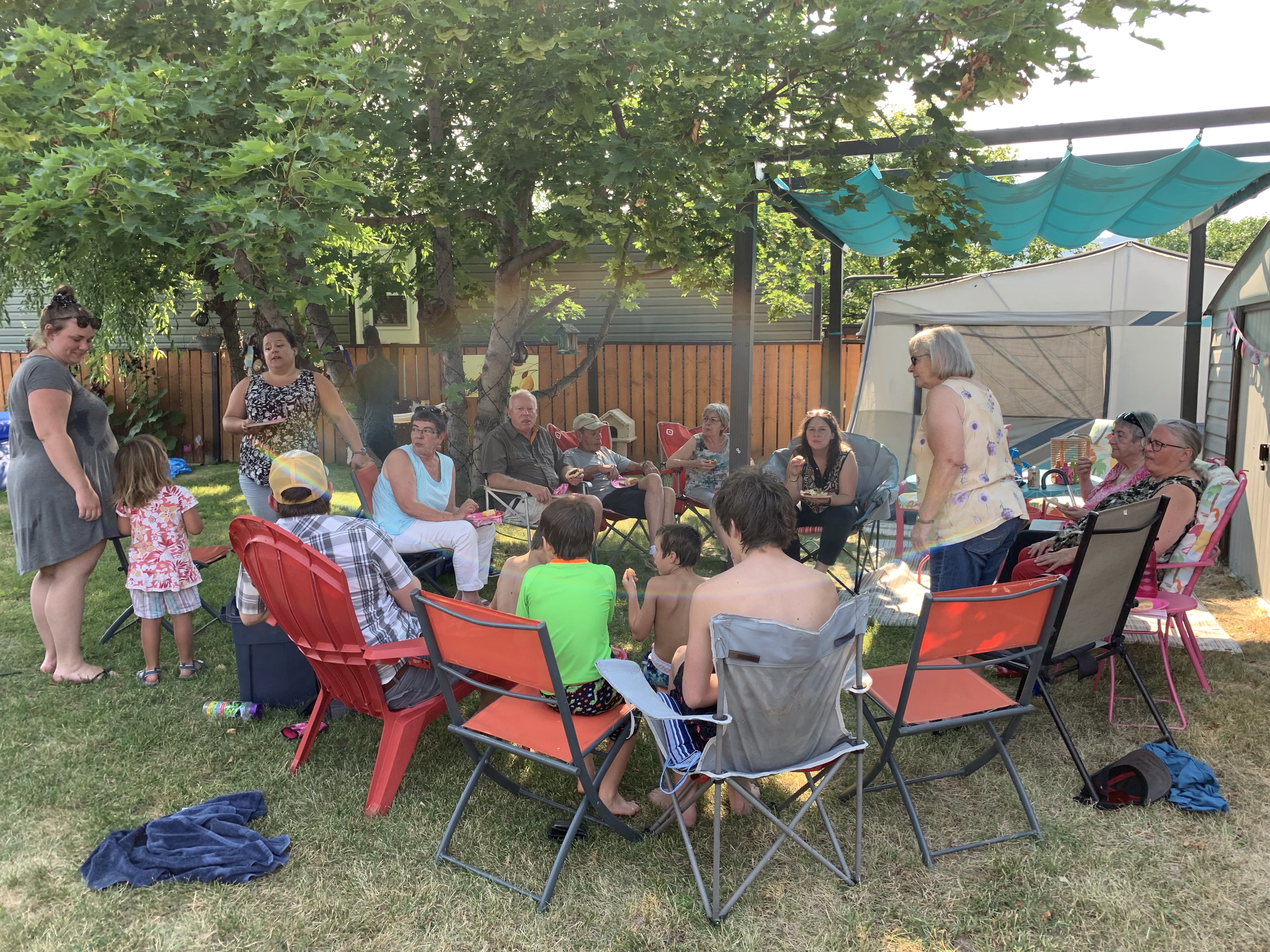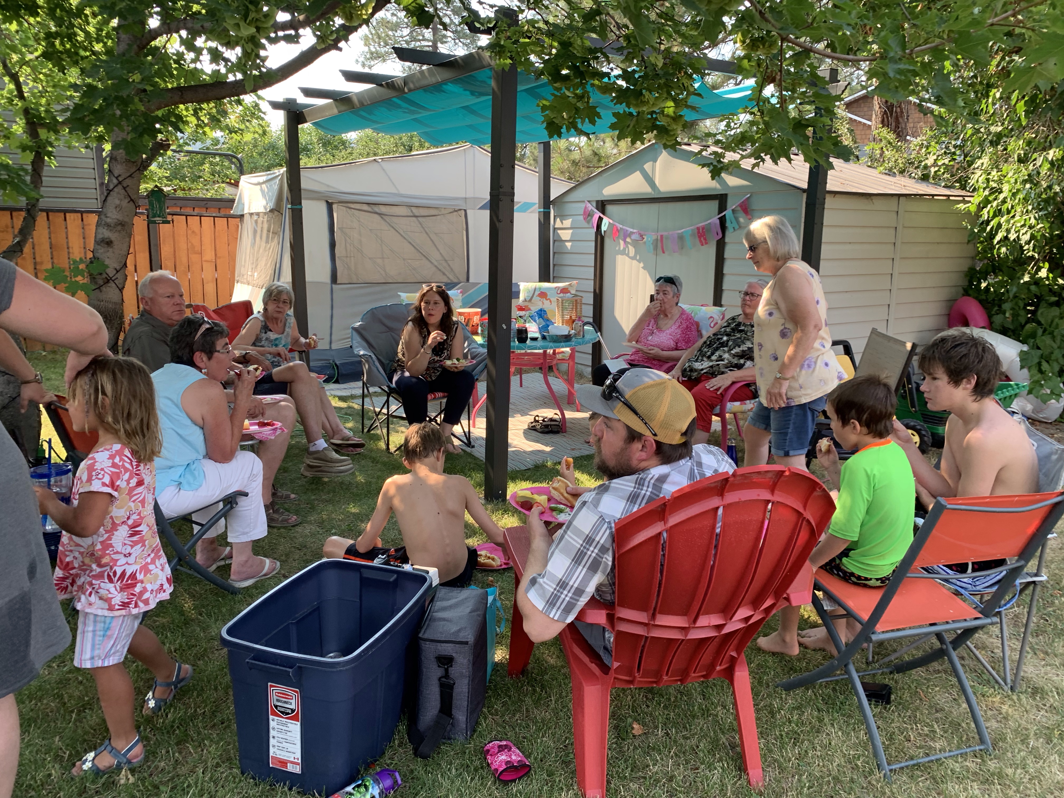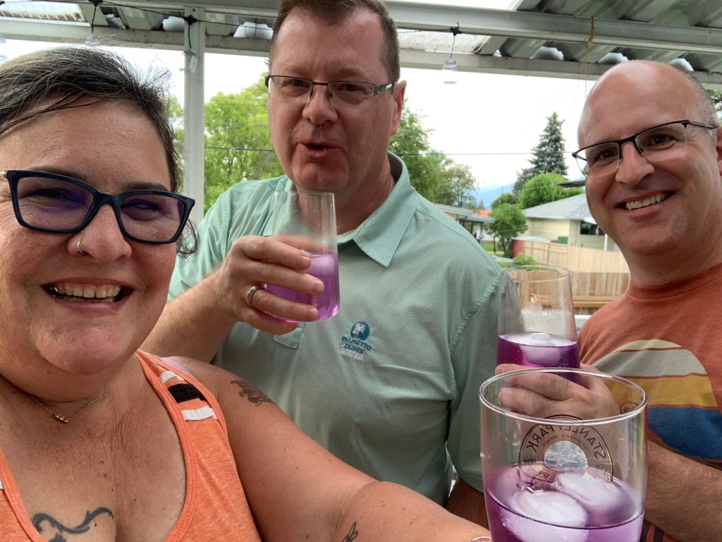 The women left at a decent time without much fanfare and I washed and reset the trailer. Emmy and I really did have a lovely time today. After breakfast she coloured the unicorn and I spray painted the horn. I coloured her braids purple which she let me know was only ok because it would wash out, or her Mom wouldn’t like it. She chose lunch at McDonalds for the toy and was thrilled to get the girl bunny from Space Jam. There was much great conversation between the two of us and I had a very good chuckle at one point. I had made arrangements with a local woman to go try on some Fluevogs so I told Emmy over lunch that I had to go to try on shoes next. We drove up and parked in front of the house and I hear from the back seat “so we are just going to some random person’s house to try on shoes?” They sadly did not fit so off to the Dollarstore for party supplies we went. I planned to have a swack of family over for a bbq as Rosie, my mom and as it happened, uncle Bryan, were all visiting. It was all planned and I was looking forward to it when I realized it was my daughter’s step-mom’s birthday tomorrow so I slipped into birthday party mode. Rae ordered a DQ cake and Emmy and I went for supplies. She became the party planner and we got all pink things with a princess theme. It was so funny in the store as it seems Emmy has not been in a big store since Covid. Everything she saw was ‘AMAZING’ or “AWESOME”!! It was highly entertaining to watch her take it all in. I dropped her off and got home to get things ready and then Danika brought her back later, after a birthday party for a friend. Mom and Rosie, Donna, Rae and Roger and boys. Ashlée, Bill and Deanne, Emmy and then Uncle Lawrence and Uncle Bryan made for a great deal of good conversation, good summer eats (Donna’s homemade pickles!) and a lot of splashing in the pool. I love our big family events and it has been far too long. That was the best three hours!! After cleaning up the yard and watering the garden, I moved indoors to tidy up while playing Vancouver Island MusicFest. So much, soooo good. It had the vibe of the Sunday night at Fest. Colin Linden and guests including Chip Esten, who played Deacon on Nashville, were just fabulous and as I write I am listening to the cool styles of William Prince. I absolutely throw aside any doubts I had about continuing on. If they will have me (they will), I will be back next year and every year after until I can no longer.