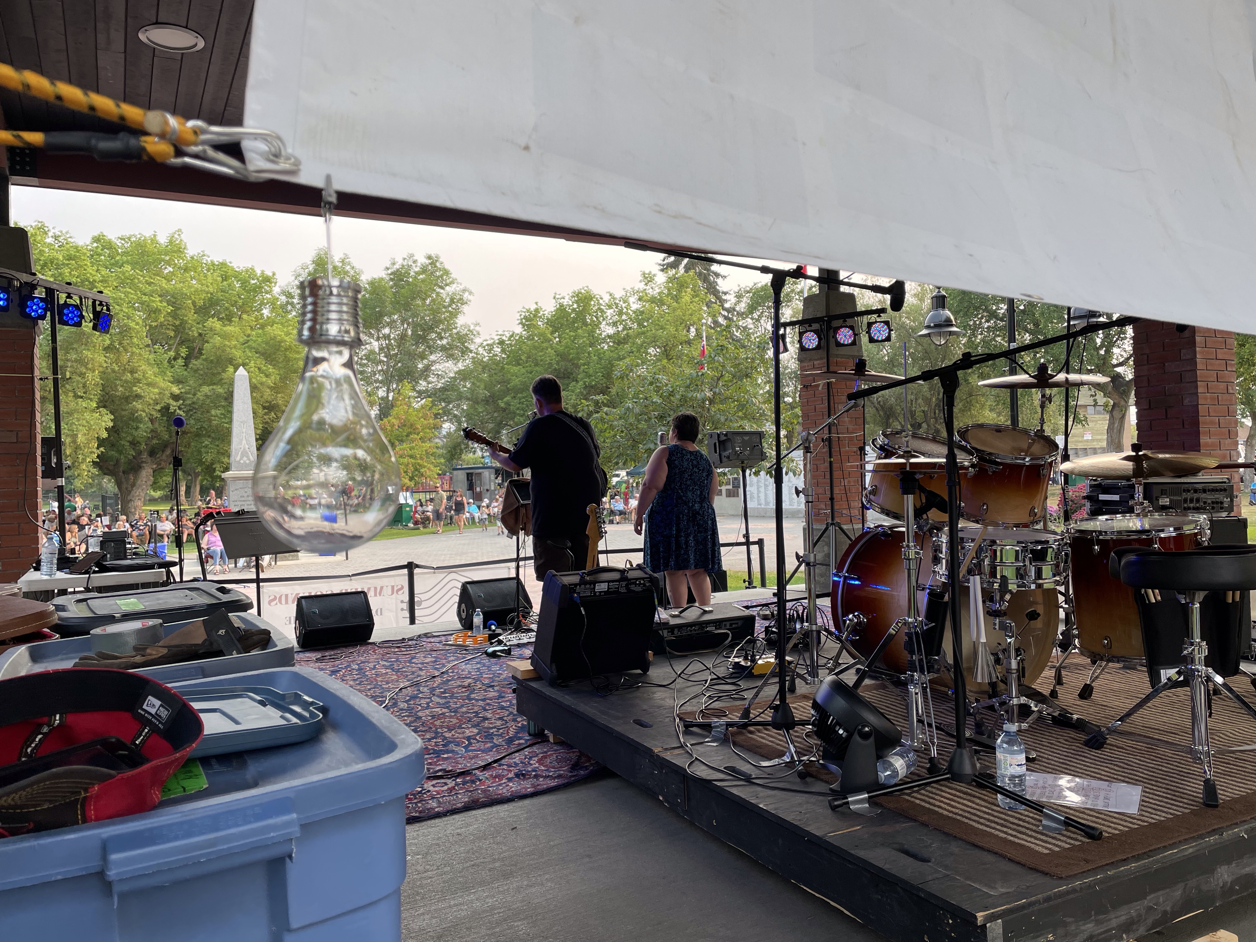 I really am ridiculously excited and looking forward to adventures. Jake arrived and brought Emmy to the park for a while. I had fun tonight managing the booth and being water girl. The Quimbys and Voodoo Rhythm Kings performed, Bif Naked was in attendance, the park was packed and it was steamy hot out. I had the most fun doing the emcee part with Maureen and solo. She writes us up a basic script and we take it from there. I have always enjoyed emceeing. I was walking around with water when I heard someone call my name for some and then mention we were a long way from MusicFest. It suddenly twigged that it was Tanner from Courtenay! He is working on the project next door and I am thrilled. Look forward to having him over. This day really did improve immensely and I had a really nice visit with Jake when I got home as well.