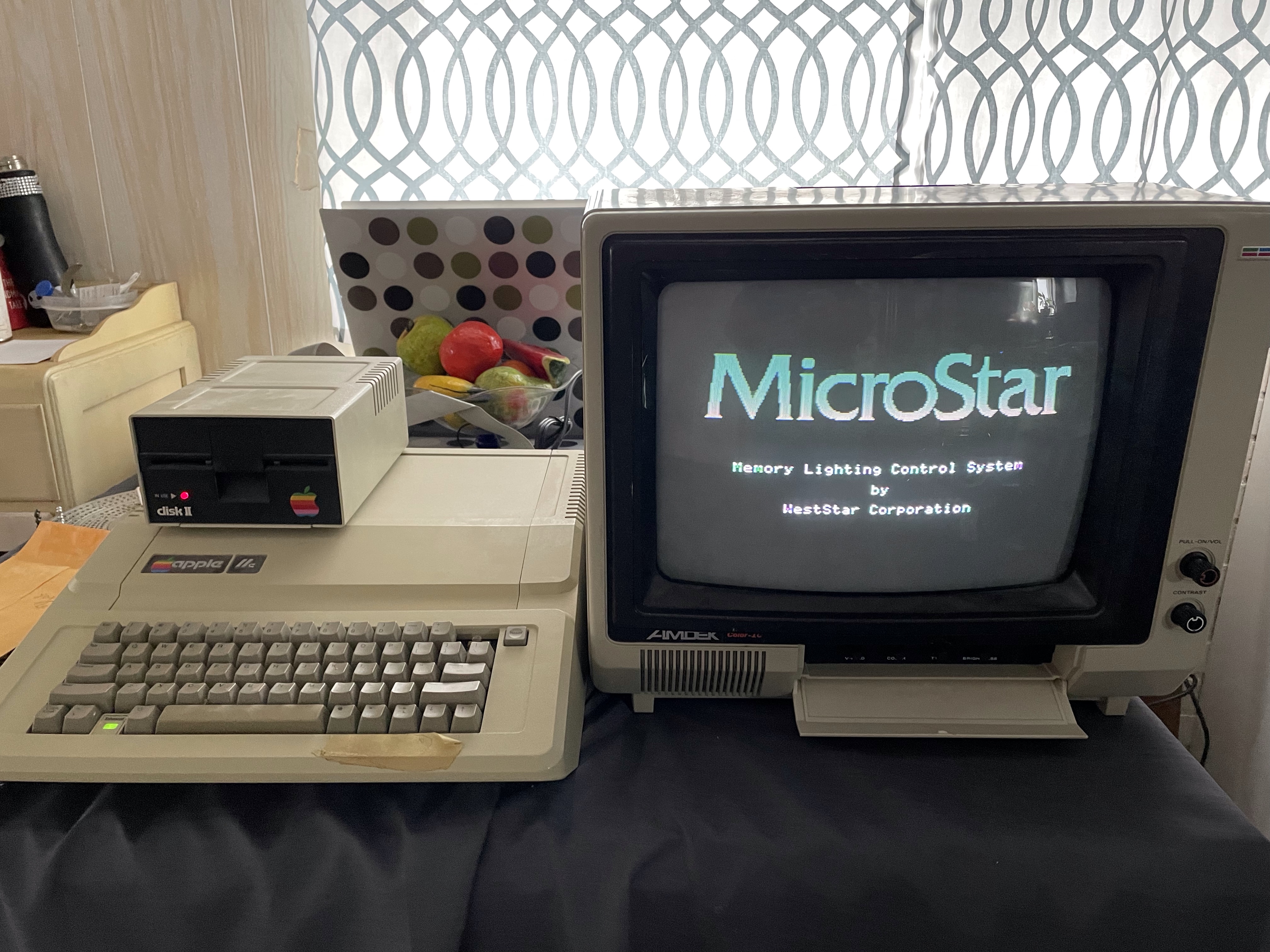 I picked up fast food for Jake, Emmy and I and then did her hair before Danika picked her up to go to a wedding. Jake and I went grocery shopping for snacks and some food for his trip home tomorrow. Got back and I made us dinner while he got the old (1985) Apple IIe I have at home from the theatre booted up. He had never seen a floppy disk before so that was cool. Once I showed him how it worked we managed to get the old lighting software program running. It was fun to post online to show friends. Jamie was instantly interested and when they dropped off Emmy he came in and opened it up and tipped it, takin pictures etc and Emmy was monkeying with the buttons, etc. And then it wouldn’t start. I am not going to kid you, I am not happy. Anyway, I told him to go home and talk with his wife and make me an offer as I am using it to fund raise for tech booth. Jake thinks I am being oversensitive about it and it is fixable…