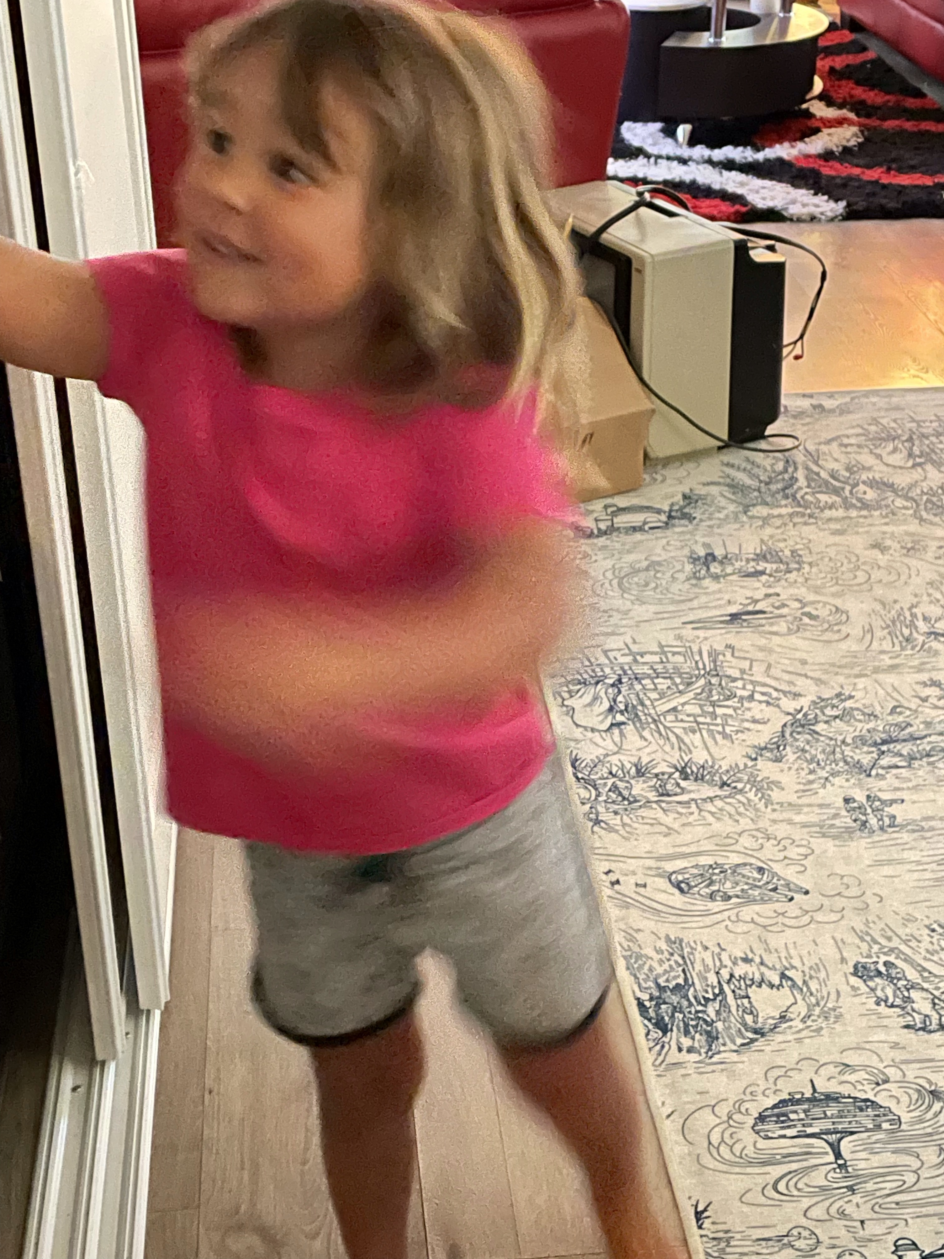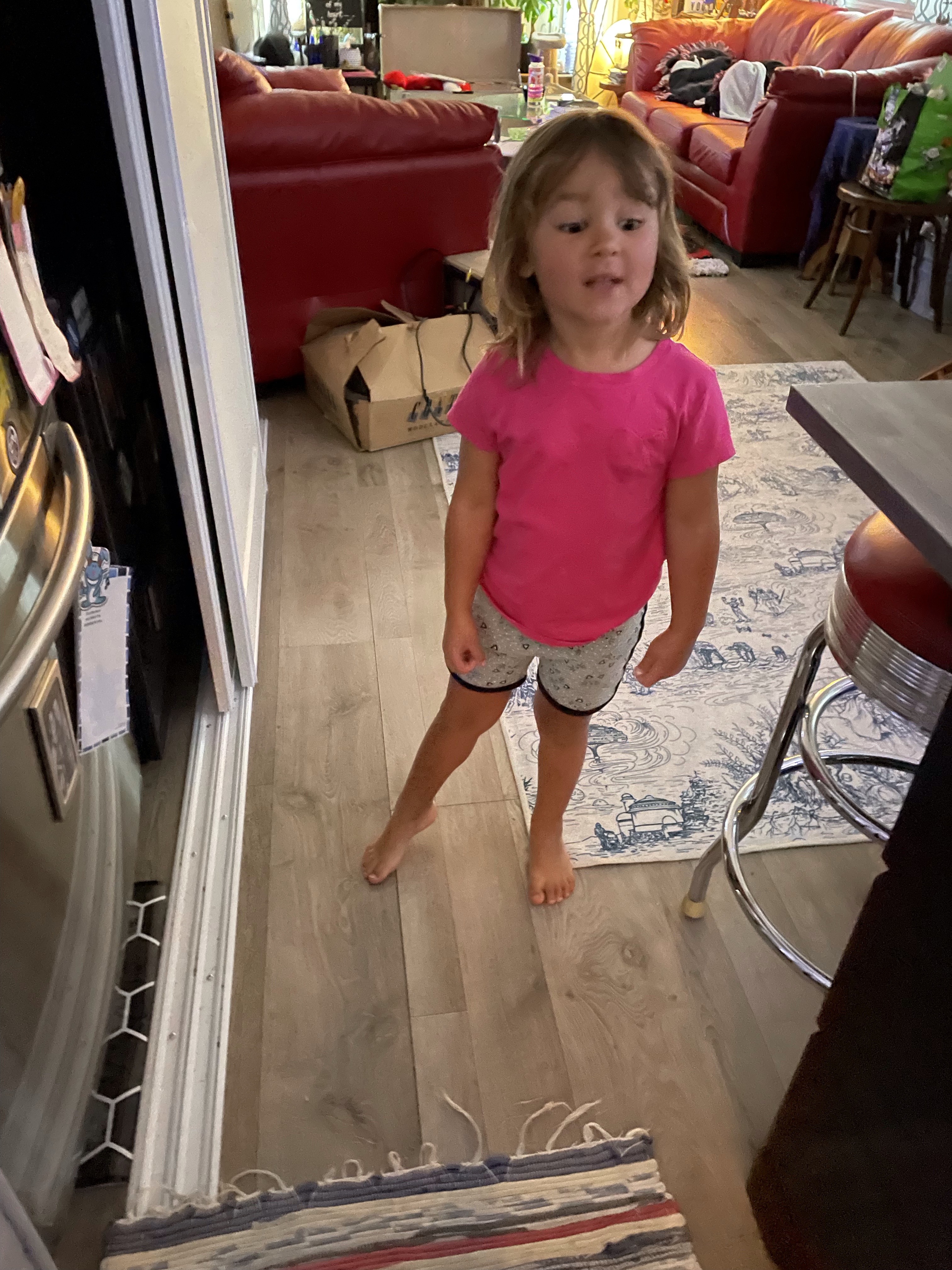 I told Emmy not to open the fridge and showed her the picture after she tried and she was shocked to see her arm disappeared.