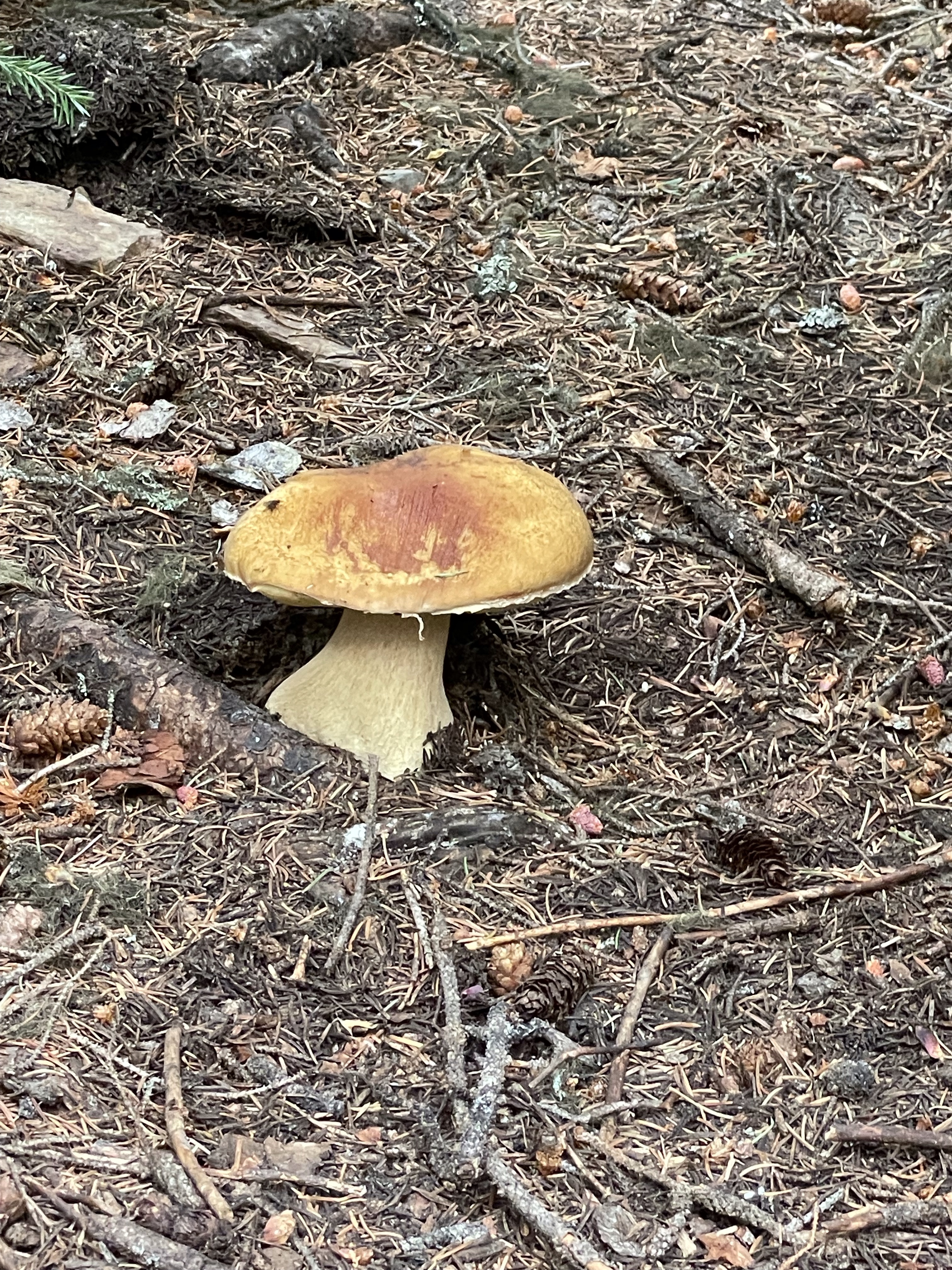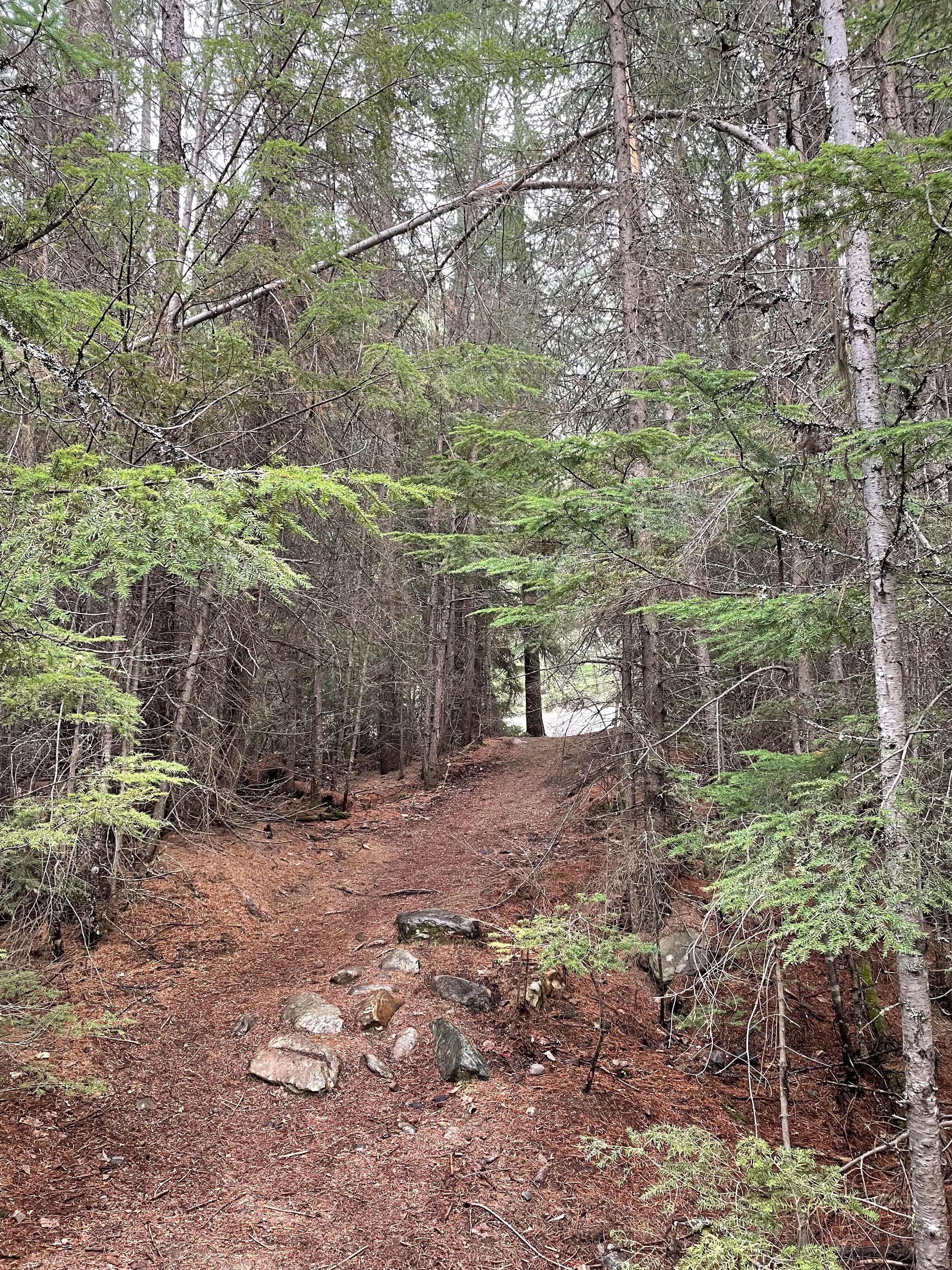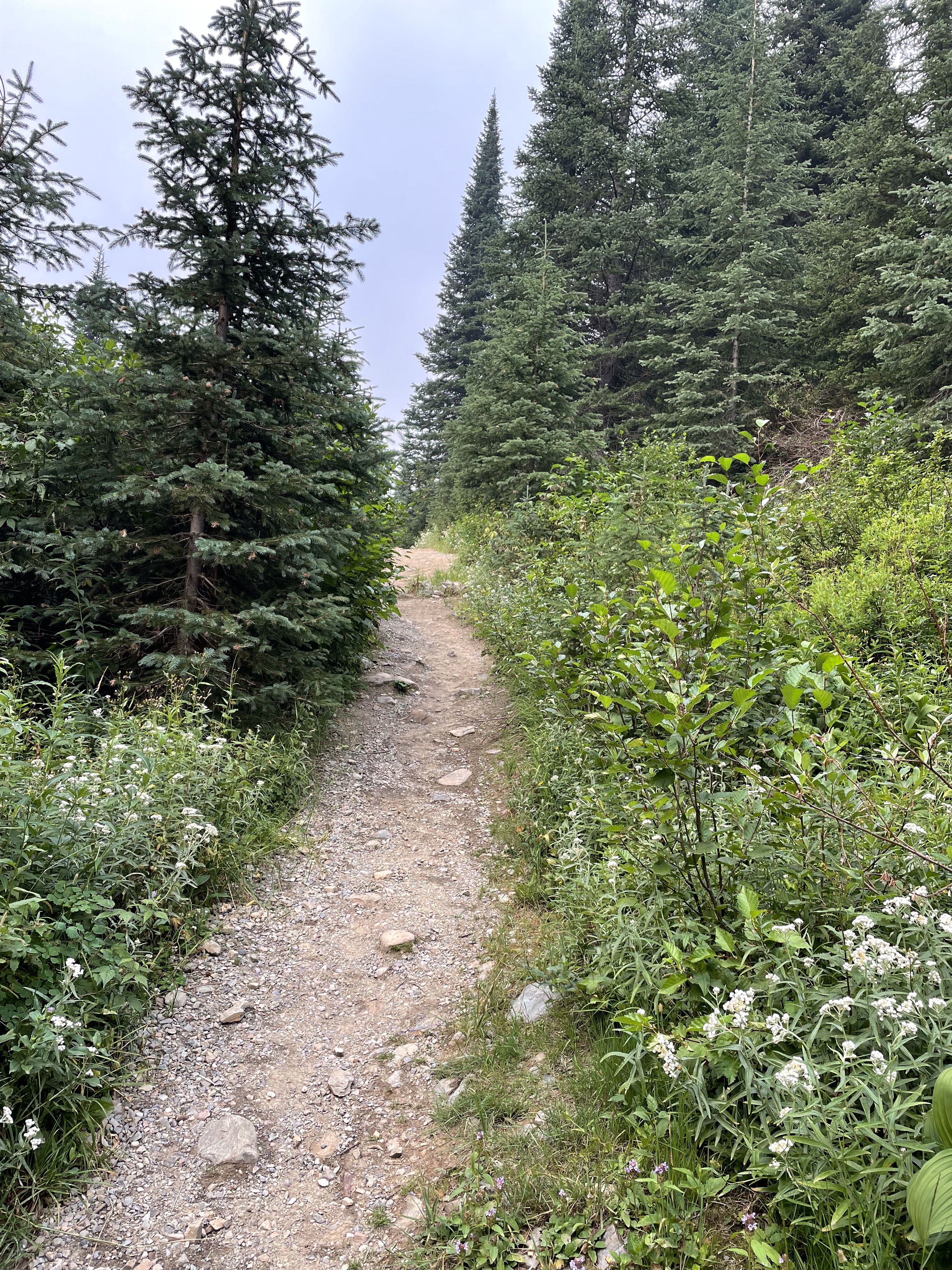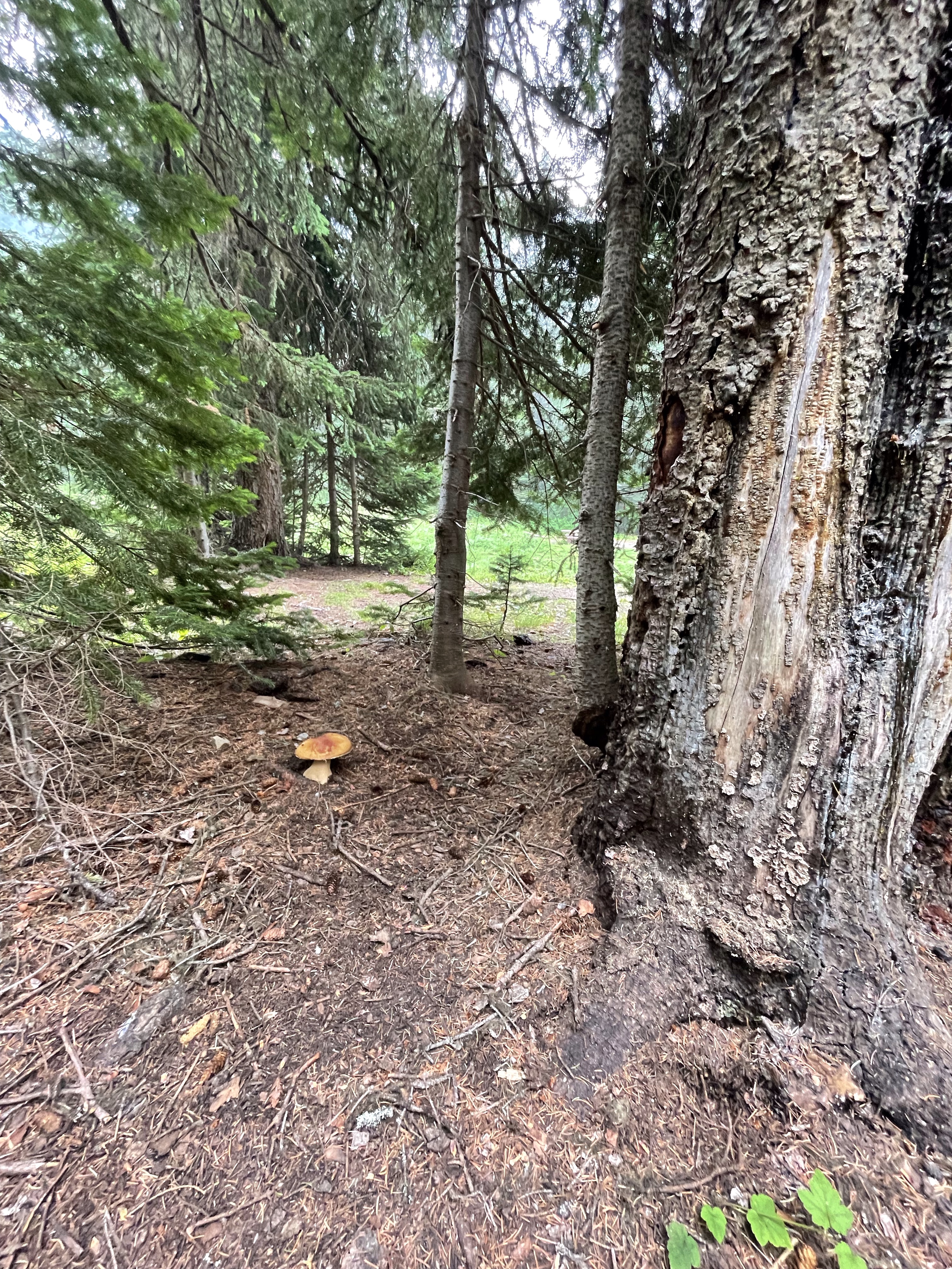 We headed out with the goal of driving up to the falls, taking it in and heading back. There was some confusion as to where exactly to stop and she had explained to me that the road continued on to White Boar Lake and glacier but the road to it was usually only usable by trucks so of course I had to prove that wrong…. I was already believing my Tucson was more like a truck than a car anyway, the way it is decked out so we kept going. 11 Km later we were at the Lake and it was the best decision ever!! So gorgeous and the road up was like a riverbed in several spot but I took it carefully and never once bottomed out or scraped the sides. At one point a pickup was coming down and I had to give right-of-way and back down for quite a ways around curves and all until there was finally a pull out wide enough for him so I could go by. Back up camera and nerves of steel for the win!! I have to say he must have been impressed. We parked and there was no one else up there so it was incredibly peaceful. There is a short hike down to the lake and it is stunning, even with the Smokey skies, I can’t wait to go back when it is clear again. We ate huckleberries and took photos and enjoyed stretching our legs. I need to buy bear spray and go back there to camp. No cell service, no crowds, just picnic tables and an extremely well kept, odour free, toilet paper stocked outhouse! I finally got to use my new to me walking stick which are perfect, especially for swiping the cobwebs out of the way in the forest. They are actually kid sized ski poles that I got at the second hand store for $10 and they work perfect for short me.