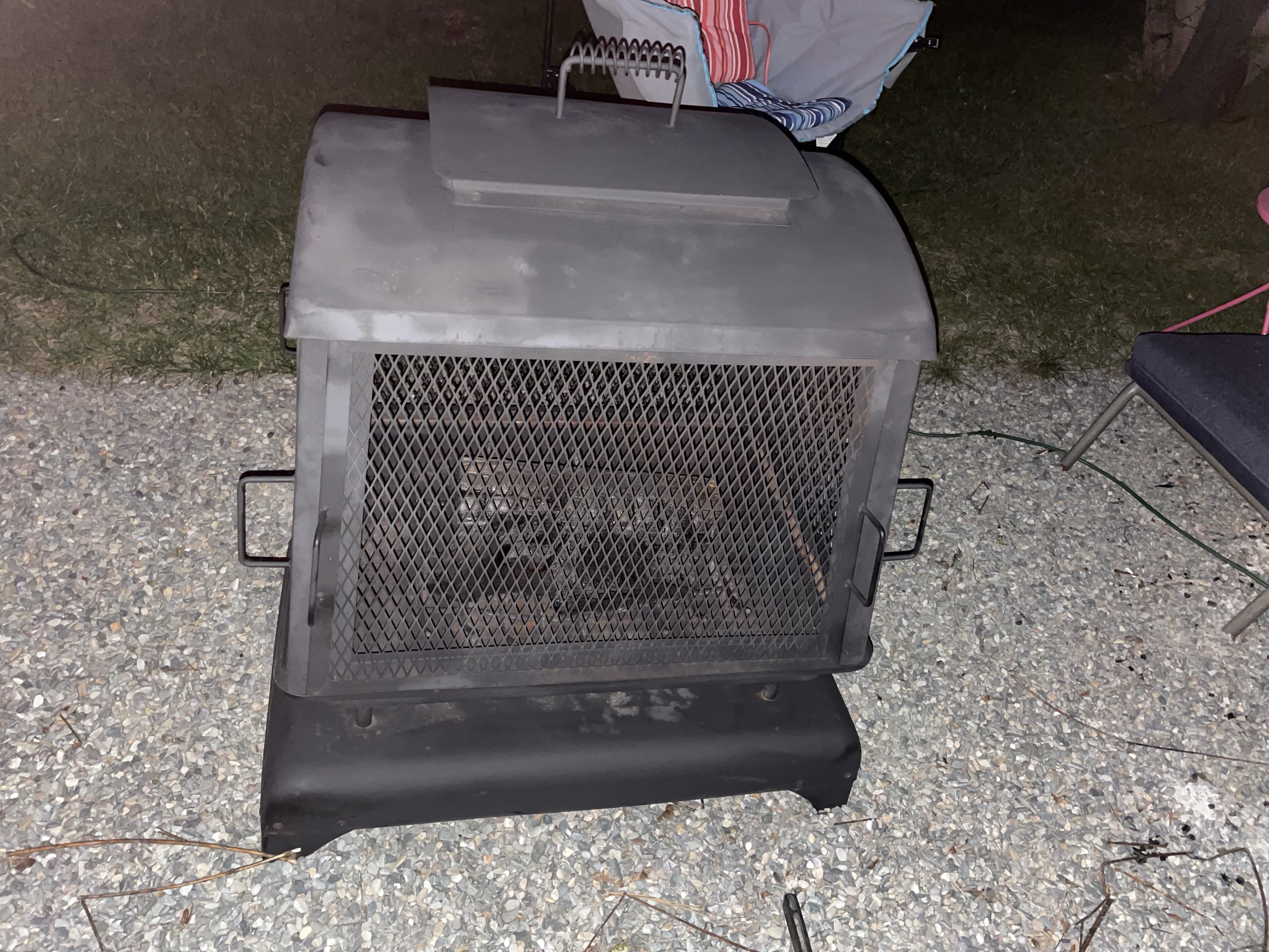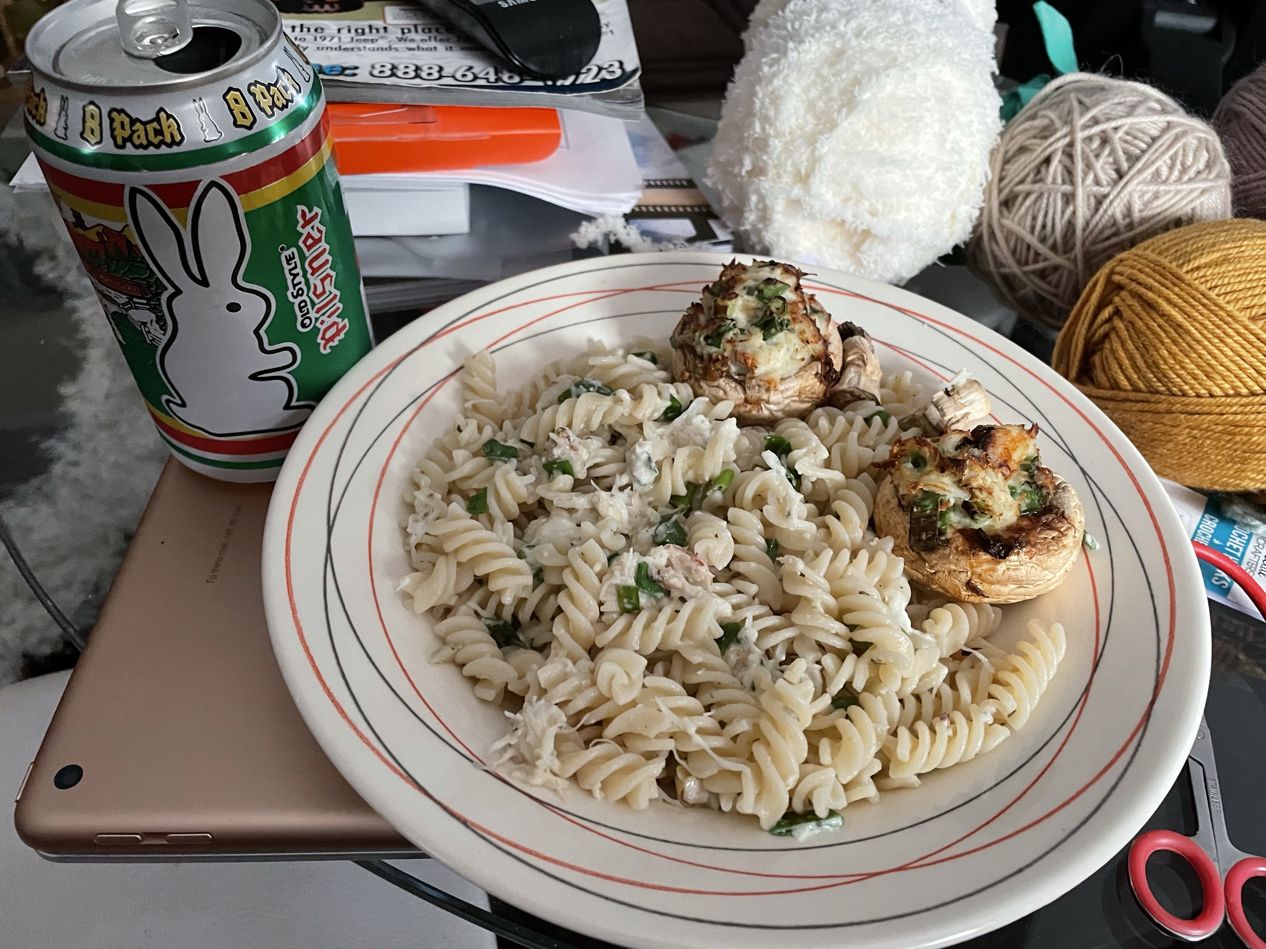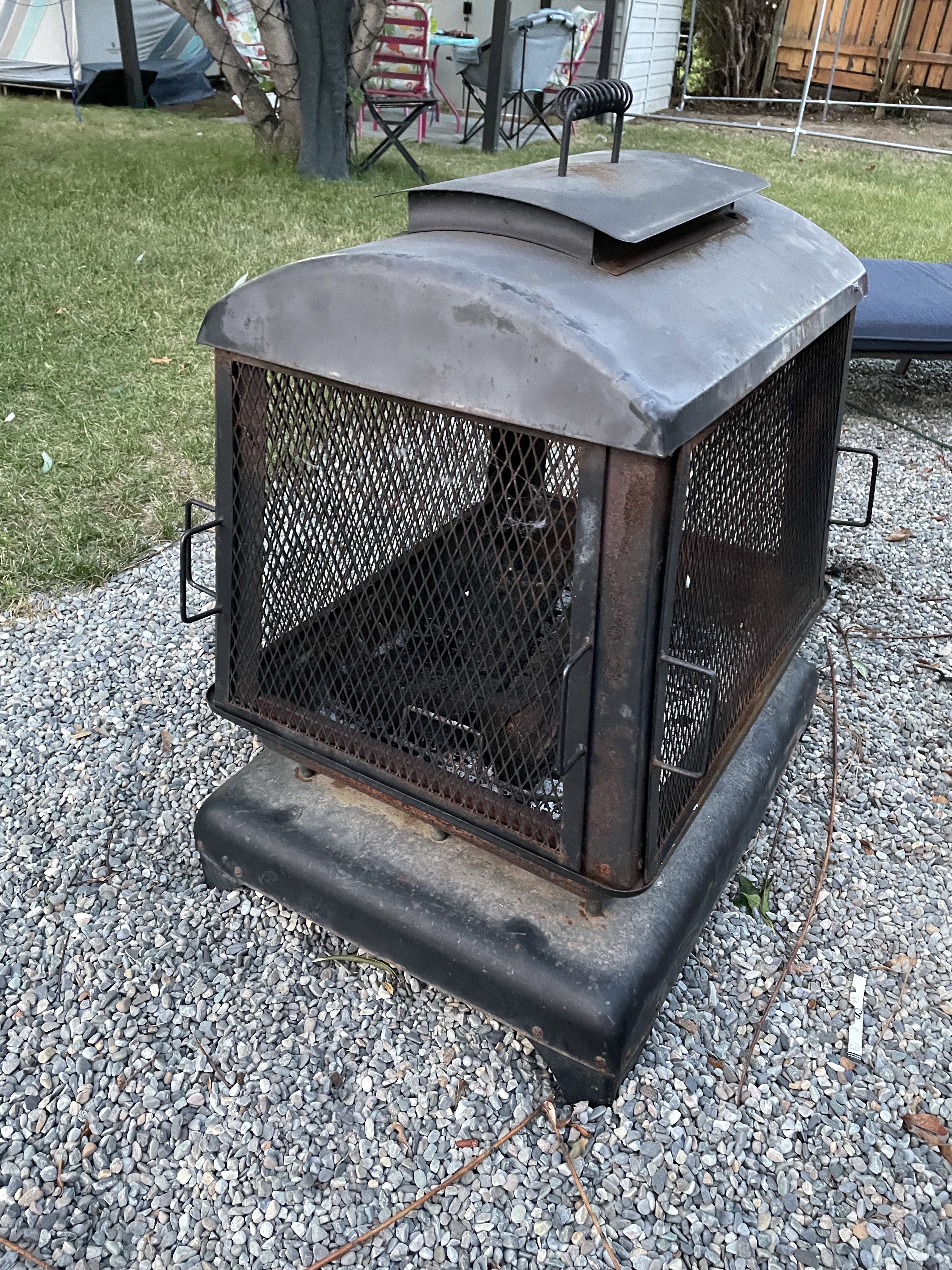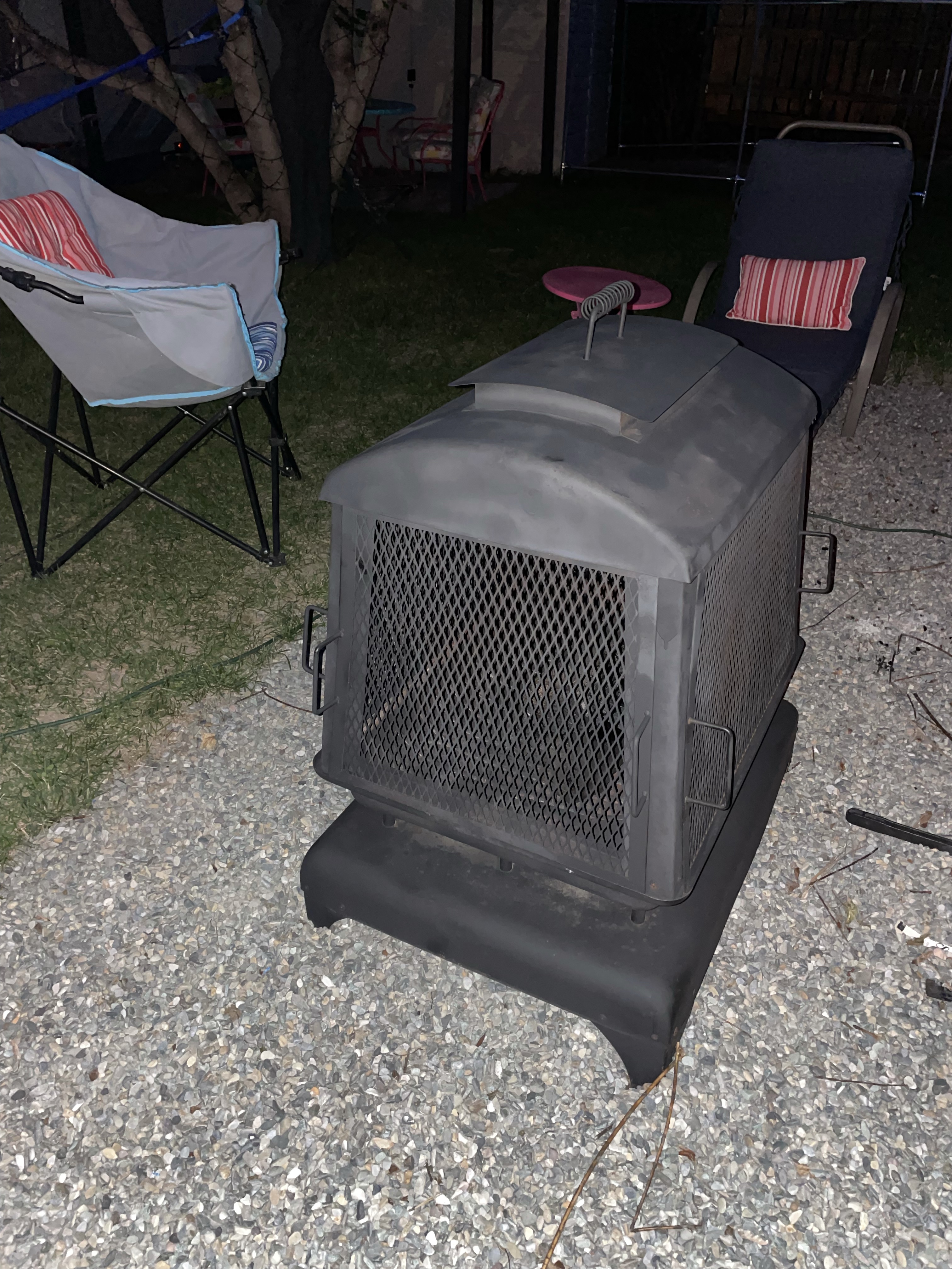 I worked later but moved mountains and then went to buy more spray paint and came home to finish off the fire place. While it was drying I made a nummy pasta with the leftover crab mixture and wound down watching my shows. I put the fire pit back together when I went out to water the garden. It turned out pretty great, all things considered. I am glad it came with a cover so I can keep the rain off and stall further rusting.
