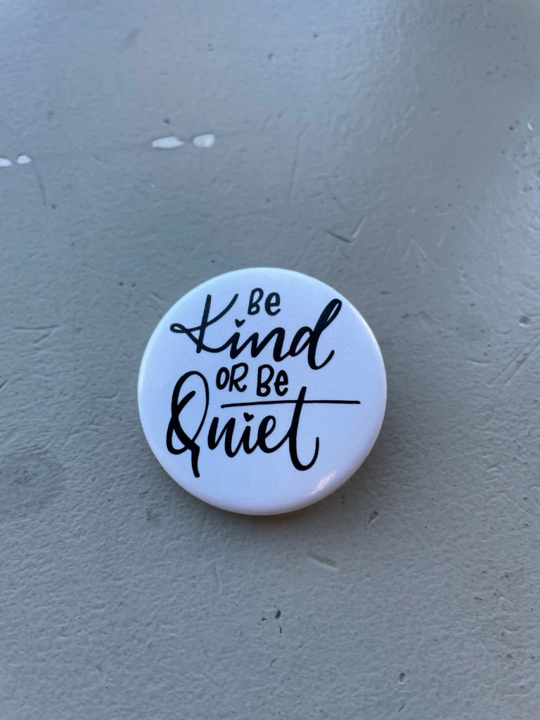 Today I decided to go the lab as early as I could manage to get the bloodwork required before seeing the surgeon about my pelvic mass. Today I was let in pretty quickly and had a lovely chat with both the greeter and the phlebotomist. They both loved my button I was wearing and asked where to get one. The greeter shared with me as I was leaving about the terrible things she has had to put up with, swearing and disrespect. As she was busy with the next people in line I asked the lovely couple still outside to give her my button when they went in. I then reached out to the person who designed it to see if I could buy a couple dozen to give away to frontline workers in every industry and she is going to give me the best deal she can. It is hard and fast for me, Be Kind, or Be Quiet.