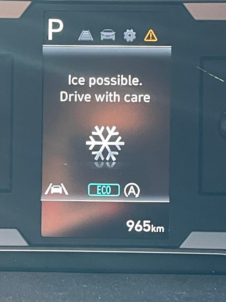 Awoke to a good chill in the air. It was 0 degrees Celsius outside and only 16 inside. I swiped left on the thermostat to change from AC to heat. It kicked in immediately and ran almost until I left for work. I need to keep my plants and StickBugs and George alive. Missy goes in and out and will soon begin staying in again. Even my car was warning me about the cold!!