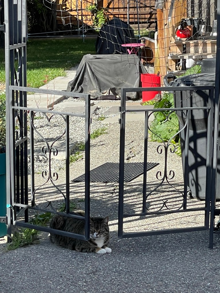 I raced home to get cooking as Danika and Emmy were coming for dinner and couldn’t stay long. I made the Almond Crusted Chicken with Roasted Veg. Missy was guarding the gate when I got home. She’s unusual. Suits me fine.
