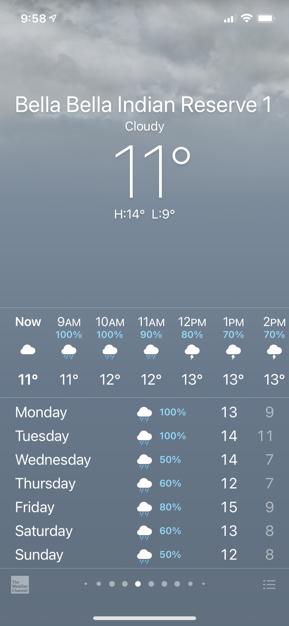 I found myself checking weather around the province today just to show how varied our beautiful BC is. I lived in Bella Bella and visited Atlin. Both are close to the west but one is one the coast and one is further north inland. Quite the weather patterns for mid September.