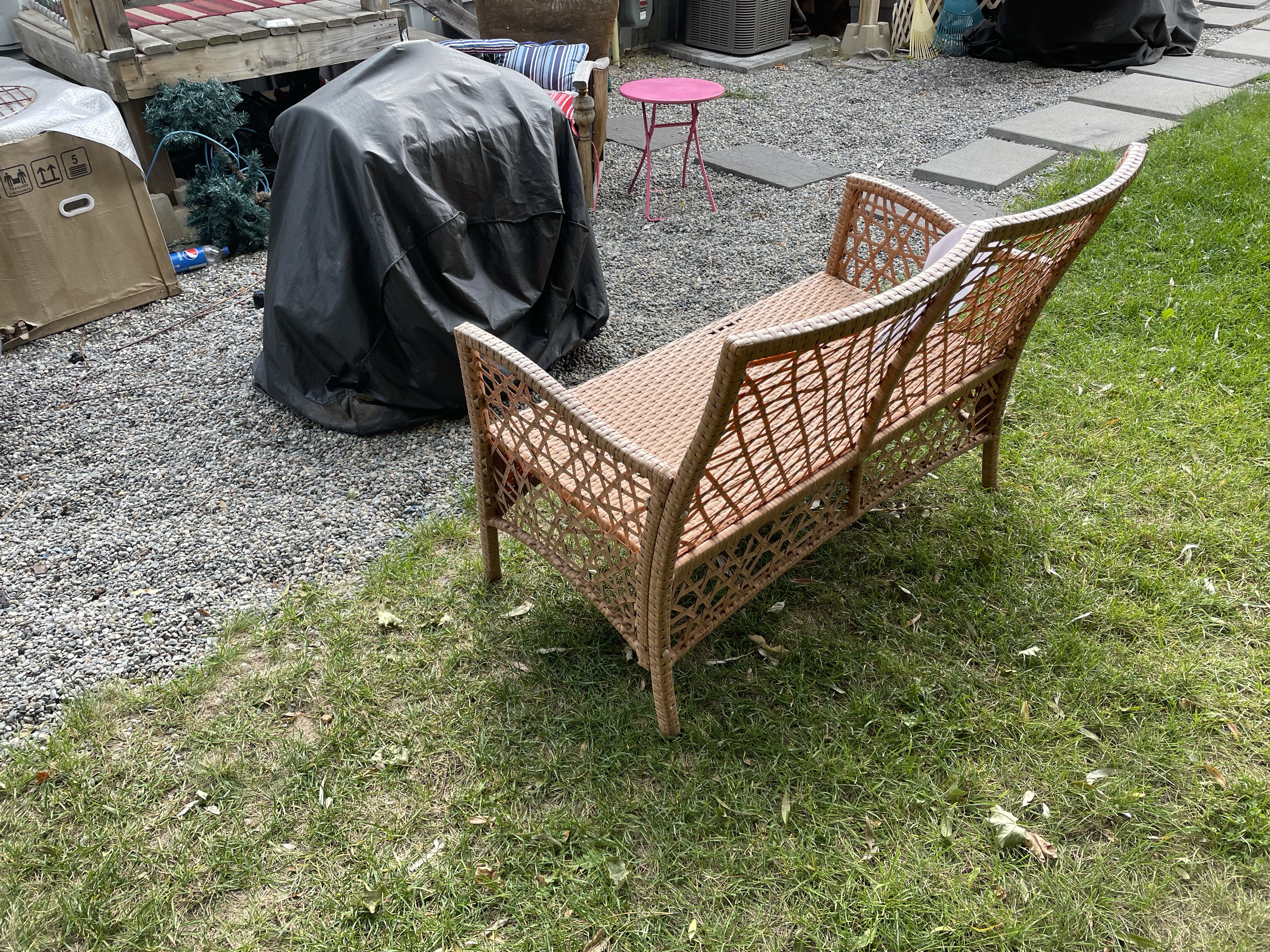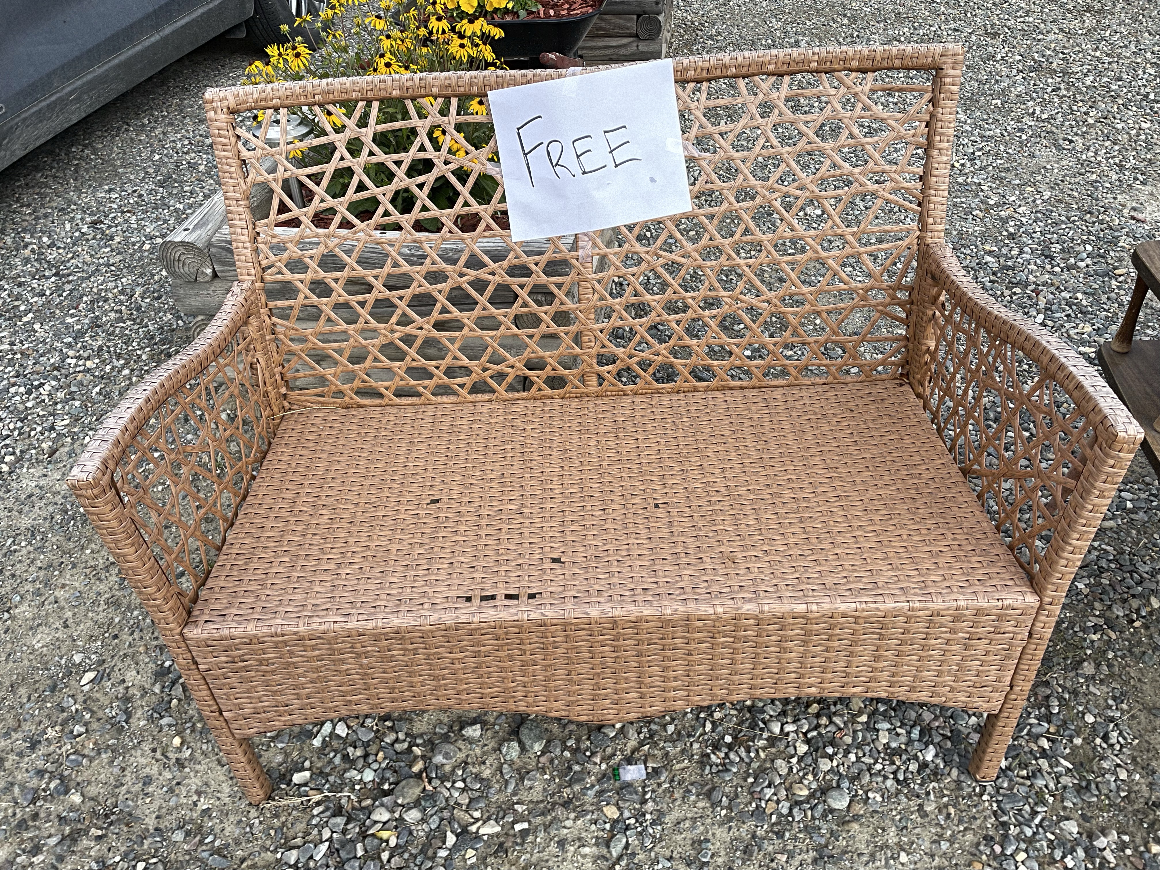 As I was leaving to head on a mystery shop tour I saw a Neighbour a few doors down had put out a few free items and I knew instantly that I have enough material left from my patio set recover to make a cushion for this for around the fire place. Great hobo mom score!