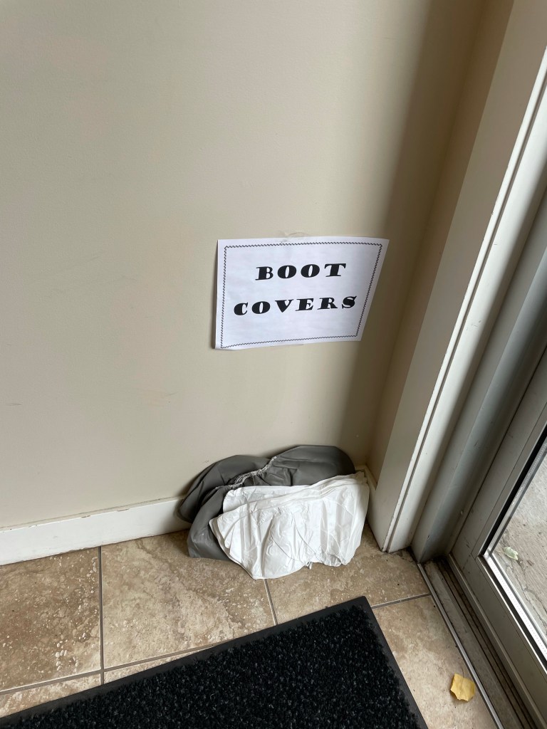 It does crack me up that they leave boot covers near the doors as it is all coal miners that live there.
