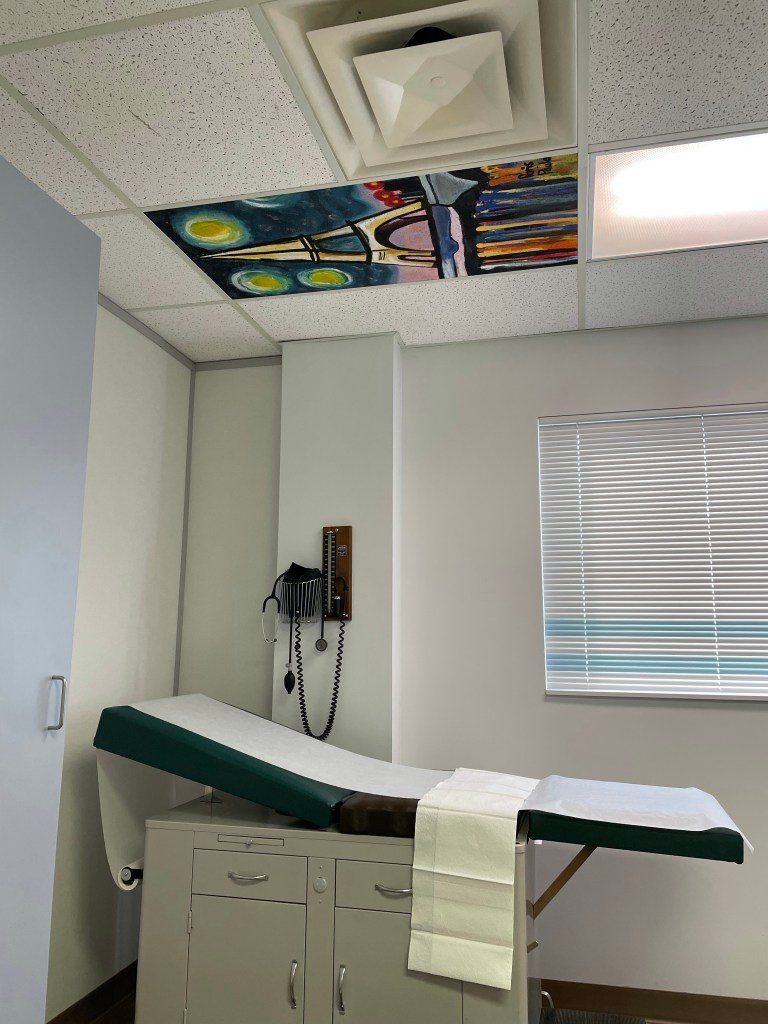It was the usual Monday morning for me, getting chores done and going in later. This morning my guts were unhappy because once again I drank red wine last night with Sean and Diane. I was grateful she sent me home with some spaghetti sauce so I made some shell pasta to take to work and enjoy for lunch. I got to work sometime before 10, settled in to finish entering all my Treasurer business, wrote cheques etc before it was suddenly time to go to the Dr. Today was my appointment with the OB/GYN Dr. Rode. I had been told he had a poor bedside manner but that he was a very good surgeon. I admit to having severe stress stomach in anticipation. He came in and asked me a bunch of history and then told me to get ready to be examined. This is something I haven’t been used to in decades. I found great humour in the phallic symbol painting above the examining table. At one point my paper cover fell off and I said oops, he turned and said “oops, now it’s more like you are on a tanning bed”. He totally made me laugh. Once I got dressed again we had a good long talk as he in great detail explained what a cancerous cyst looks like vs a benign one. He also told me that although he feels it is 98% benign, there is always still a chance. I told him I am in the 2% club, that most of my life that is the percentile I have landed in. He looked me straight in the eye and said that if he got 98% on all his exams in his life he would be very satisfied. We have agreed to wait until January to have another ultrasound. If it has not grown by then I can make up my mind whether or not to go through the extensive surgery necessary to remove it. If it has grown then he will likely decide it should go right away. He went on to tell me all the potential risks. I do appreciate that he didn’t sugar coat it but he also made sure I was aware of all my options. I mentioned I would not have a GP after Dec 3 and he said I would be under his care going forward for this. I did come away very shell shocked as the risk list is long due to my previous history but also relieved in the same breath. I feel heard and cared for! Two things I was prepared not to experience.