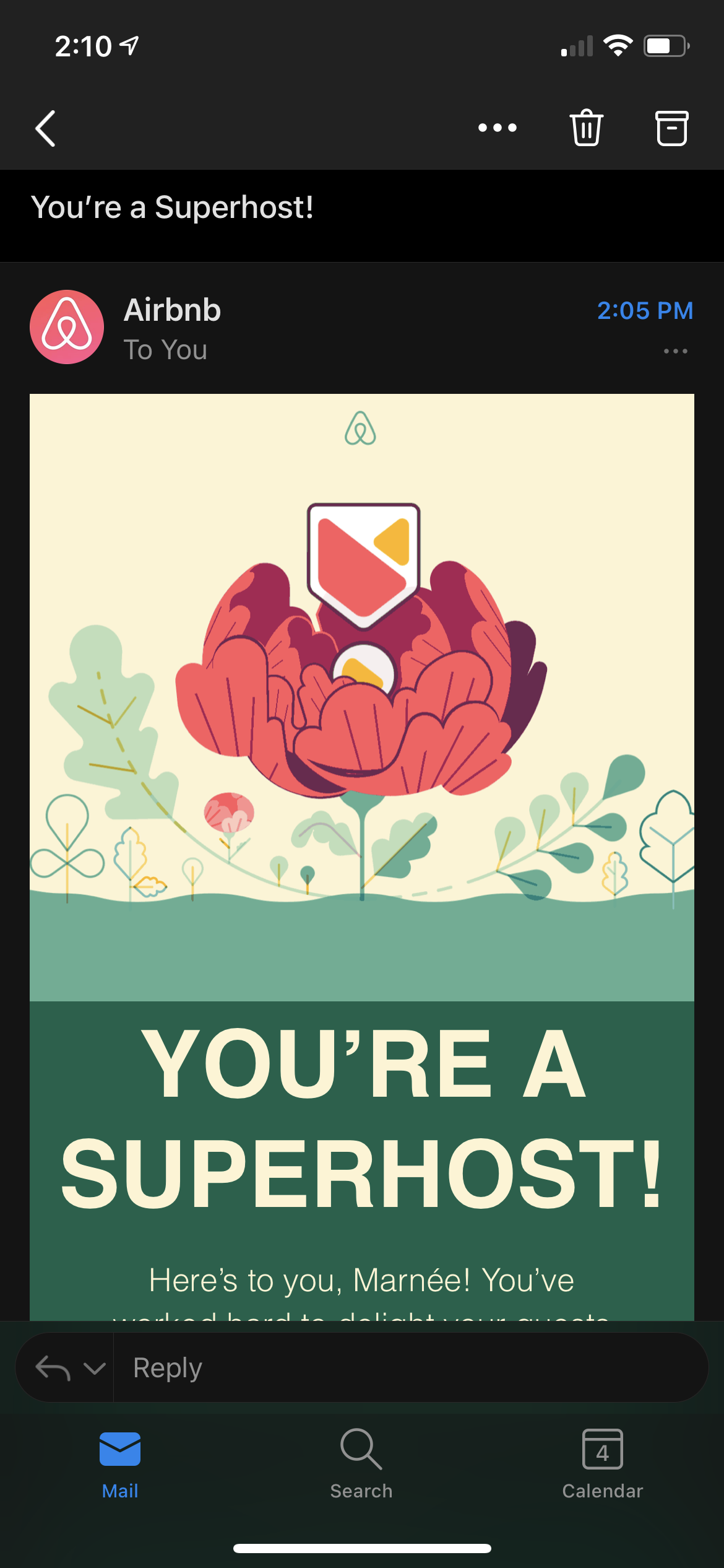 I was excited to get notice that I made Superhost for Airbnb!