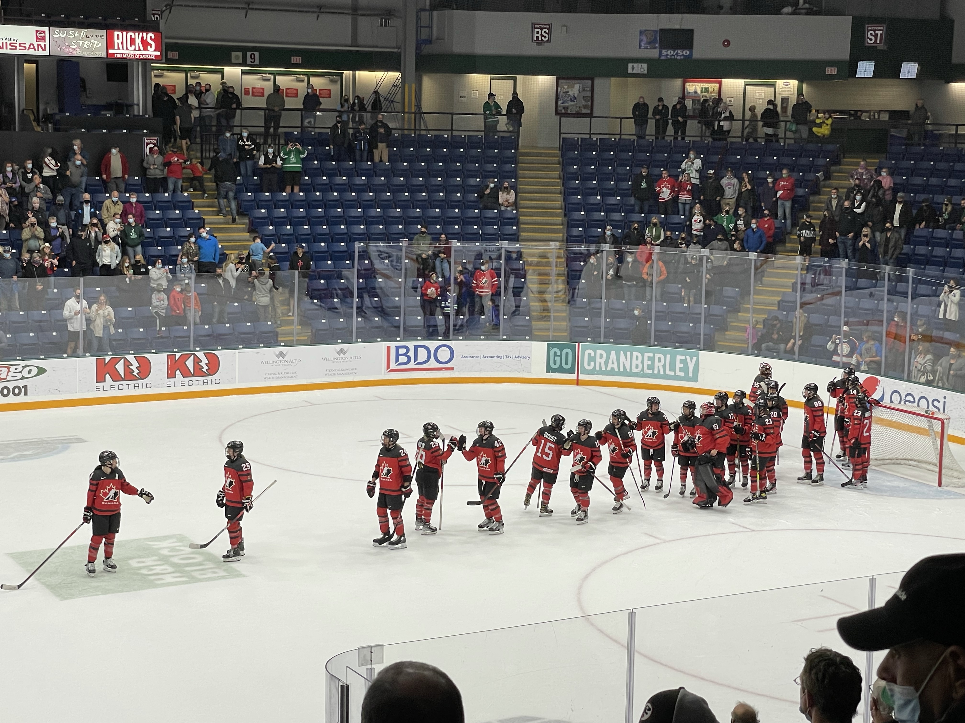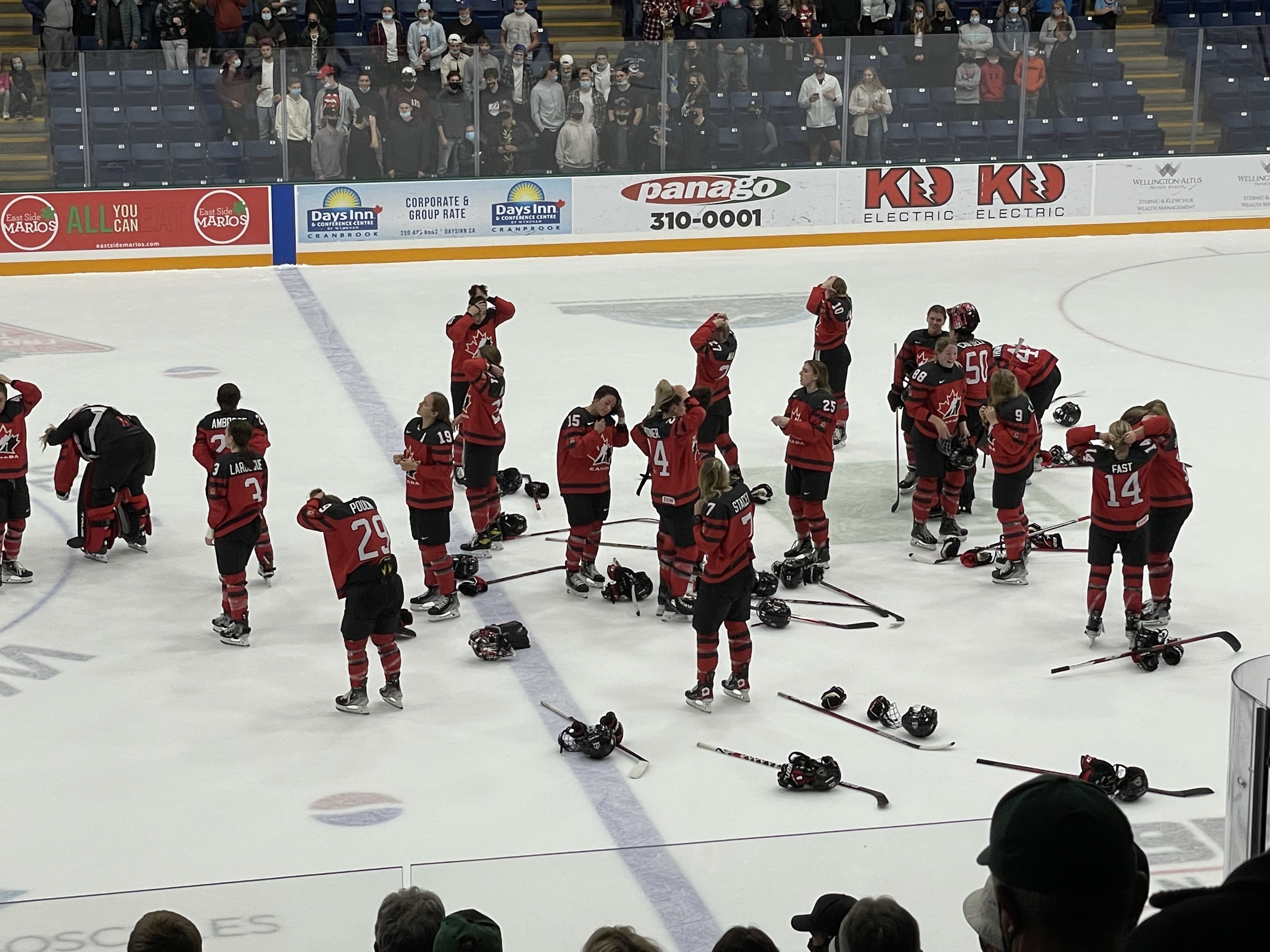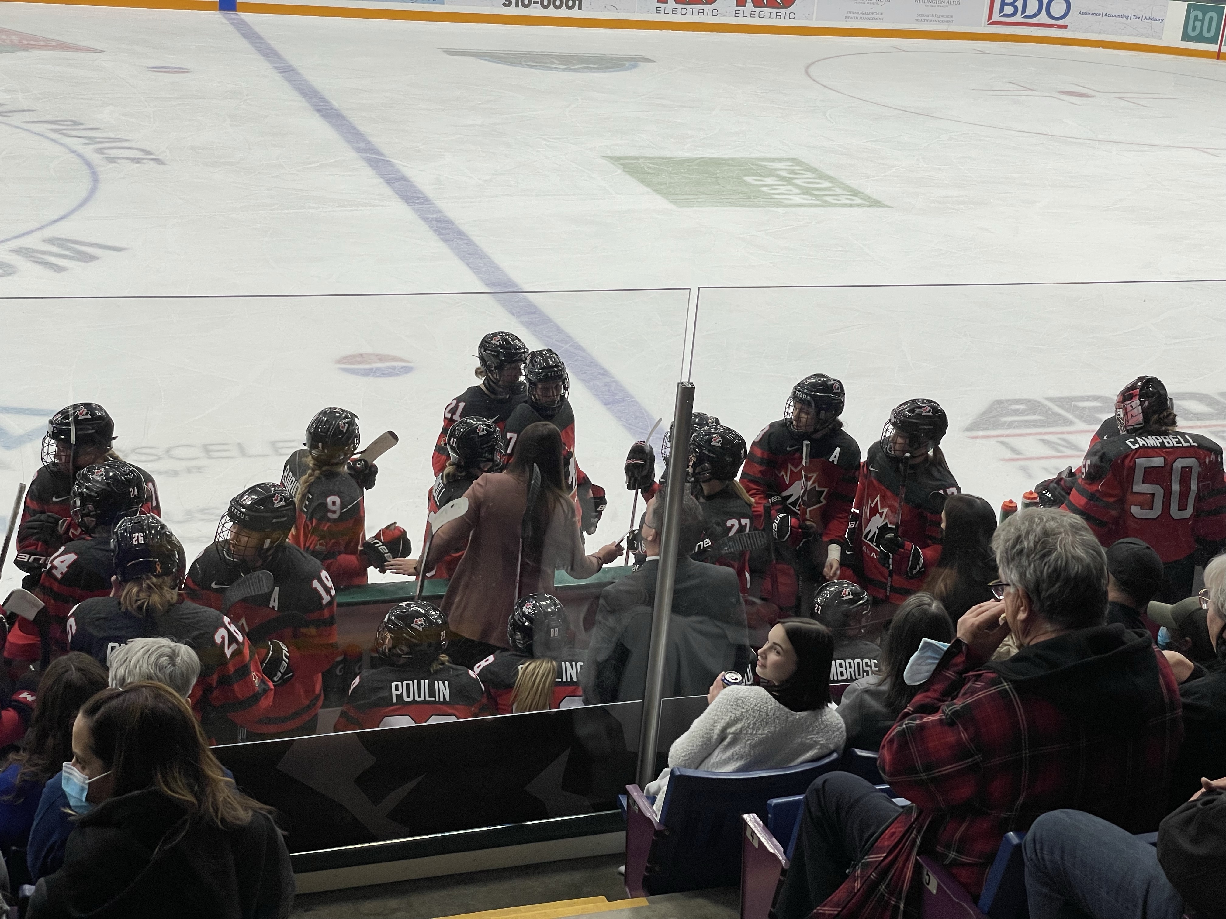 After work there was much joy as I picked up my neighbour, Tracey and headed to meet family at the special Bucks game. I had seen the tickets available right away and jumped on them to grab 3/4 of a row 9 rows up from the ice, between the benches for the Bucks vs Canadas National Women’s Hockey Team. This exhibition game was intended to keep the ladies practiced before the ‘real’ game. I had no idea their birthdates ranged from 1985 to 2001, so much fepower! They got their butts kicked by our Bucks but it was so much fun and they seemed to keep a good head about them, It may have helped that everyone was loudly cheering for them and sidebar cheering for the Bucks. My fave moment was honestly when they all threw down their gear and fixed their hair into ponies before the group photo.