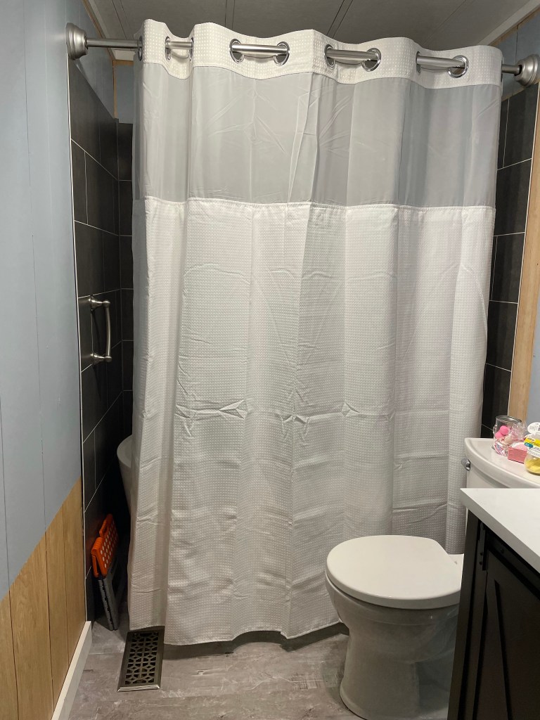 I spent the next whole bunch of hours cleaning my place and yes, vacuuming! I had to get down on my knees with my goo gone to take off the sticky glue mess from the renovation as the many layers of flooring left terrible residue that was tracked out. I also installed the grab bar in the shower as I don’t want anyone using it to feel unsafe.