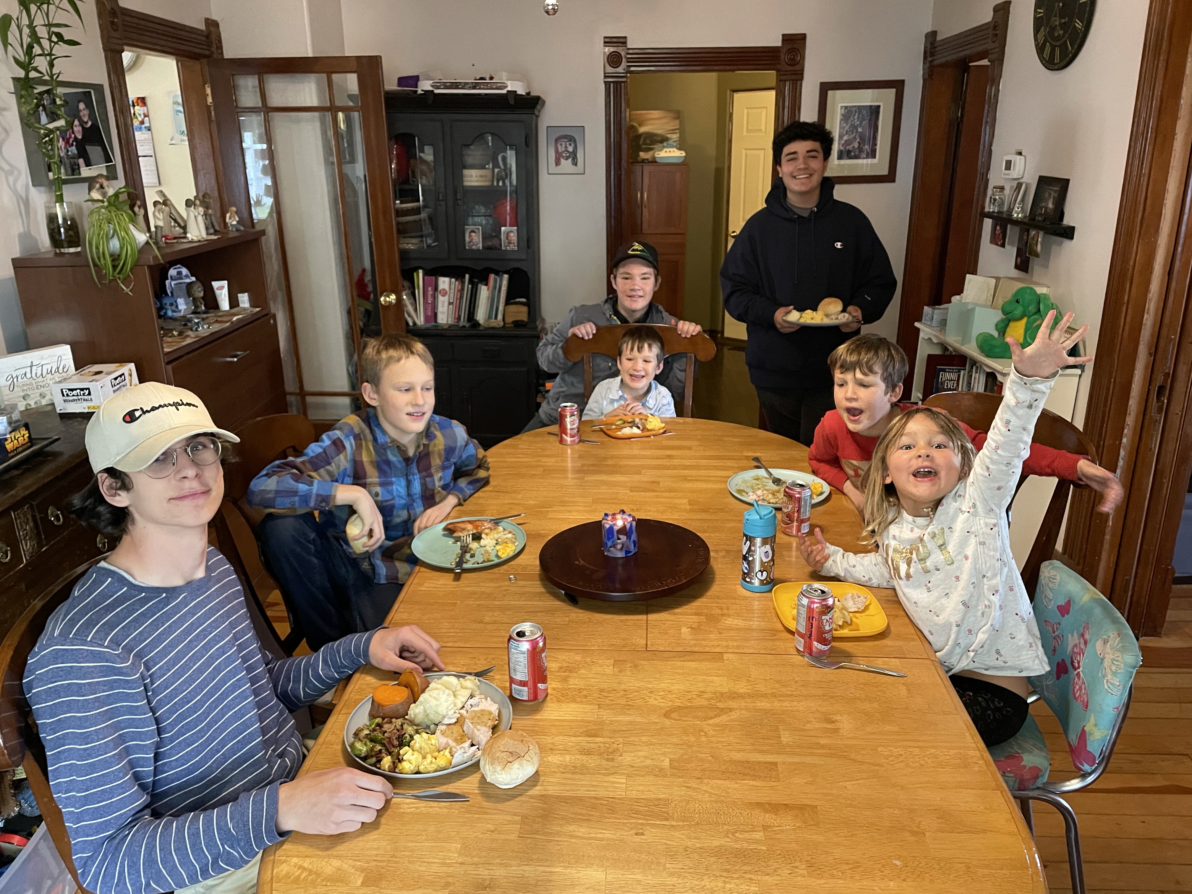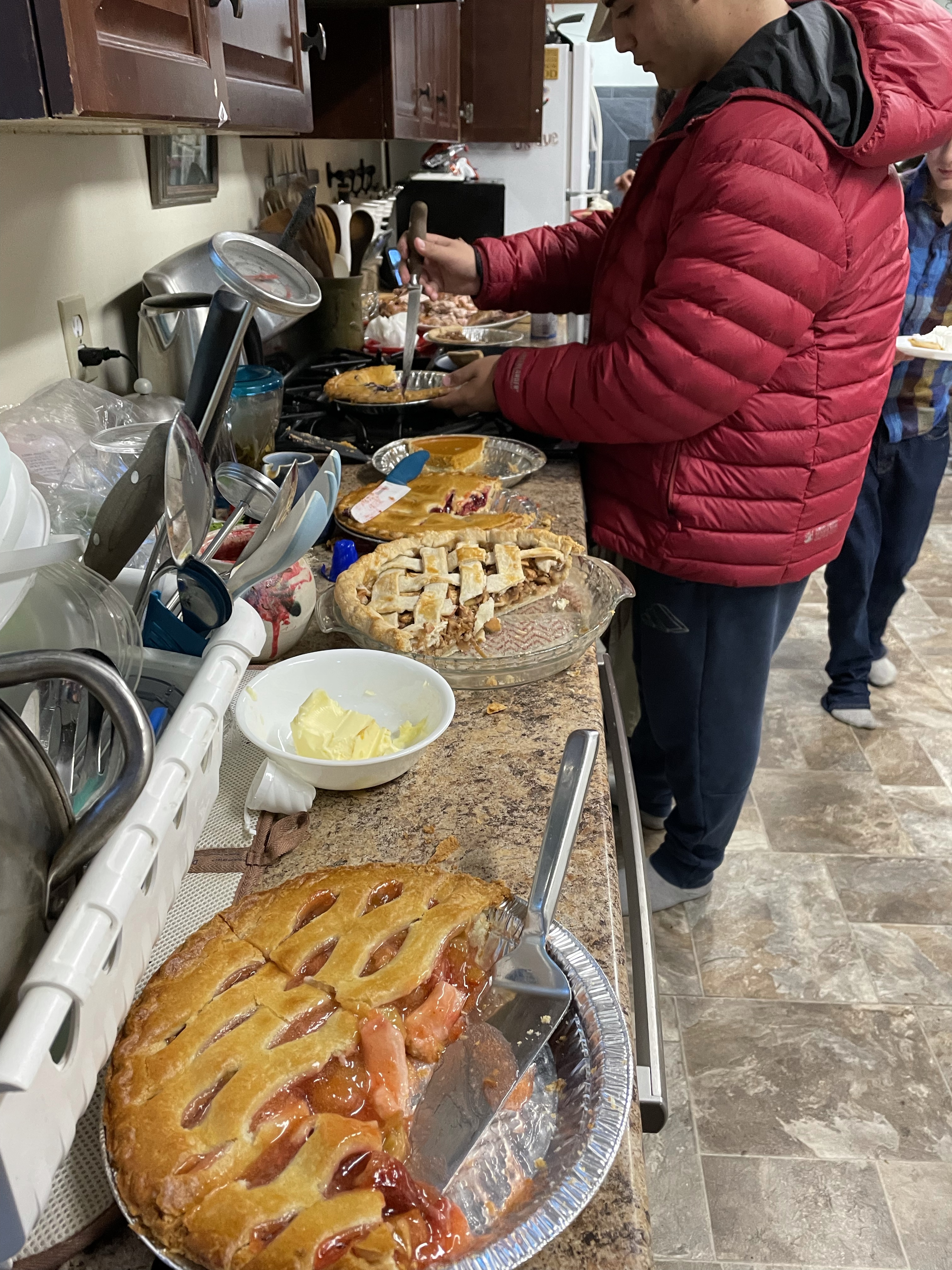 Mark arrived and I was surprised to find he didn’t realize we were going to Guedes house for dinner. It all was delicious and the pies were well received. We played JackBox after dinner and then the game he brought, Poetry for Neanderthal which was fun,