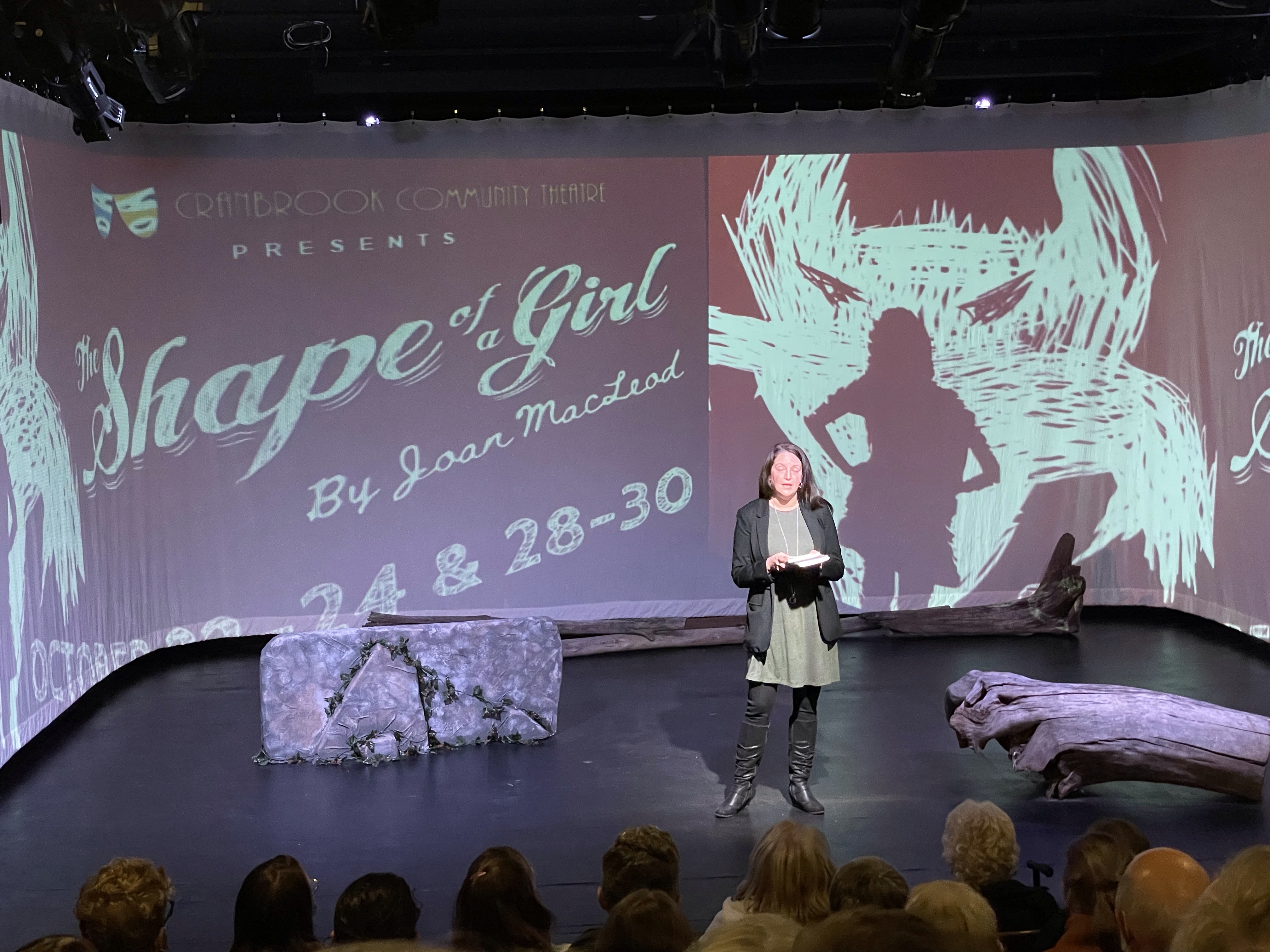 Tonight is the night. Opening night for The Shape of a Girl by Joan Macleod at Cranbrook Community Theatre directed by Amy Penney. This evenings performance was presented by Cheyenne Kneller, a 15 year old actor from our local high school. She shares the role with Jelena Jenson on alternating nights. I look forward to seeing Jelena next week. I purposely did not read the script as I did know it would trigger me. It is inspired by the events of the swarming and murder of 14 year old Reena Virk in 1997 under the Craigflower bridge in Victoria. I remember clearly when this occurred and found myself only two years later at the age of 39 in the place where she died. It was overwhelming as I was in rehab working through my own PTSD from bullying and being a suicidal 16 year old. I will say that I was not sure I should see this show, that it may trigger me. I wasn’t wrong. One of the producers sat down beside me just as the show was about to start and when the Director came out to give the land entitlement recognition she also gave a beautiful tribute to Peter and I for the work that we have done on the renovation to make this show possible. I turned to Elizabeth and said ‘damn, I didn’t bring Kleenex’. she promptly handed me one and i wiped away the first of my tears for the evening. Young Cheyenne did a wonderful job, given her youth and inexperience. I could see the great work Amy had done with her. I was not entirely lost in the show but found myself noting markers that were true and touching to me. It wasn’t until after the curtain call that I found myself ‘leaking’. I had to stay in my seat and go through all the feels. I made a point to connect with Amy to go for a drink after and talk. I am glad I did for many reasons, not the least of which that she should not have just gone home on opening night without some celebration of what she made happen. We had good talks, Director to Director and then Producer to Producer as we are to the next two shows. The show left me feeling deeply my connection with bullying, from both sides. The references to the lower mainland, to jumping off bridges, which I had wanted to do when I was 16, to being treated as less than, the butt of jokes, to lashing out at others in response, left me raw. The discussion of where we go with the next shows and the acknowledgment that things are different in community theatre compared to professional and how to adjust, filled my tank back up. I am grateful we made the time. There were things that could have been better but over all the show was a success. The writing is prose, the timing is critical and I look forward to seeing how Jelena interprets it. It is not light entertainment but it is a mirror that many should look into.