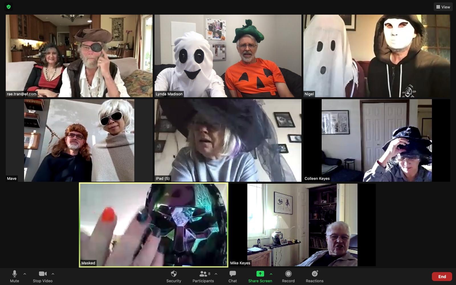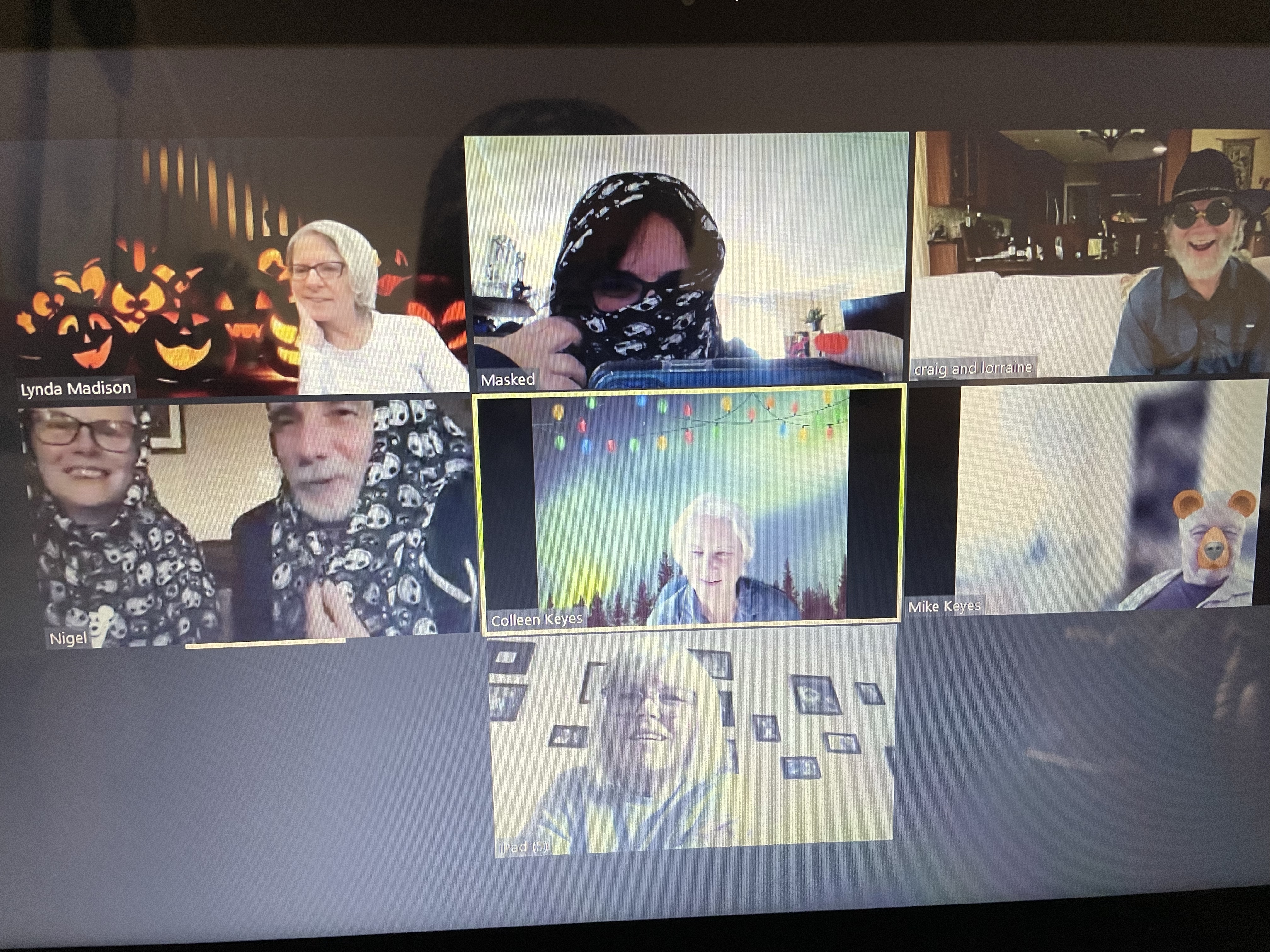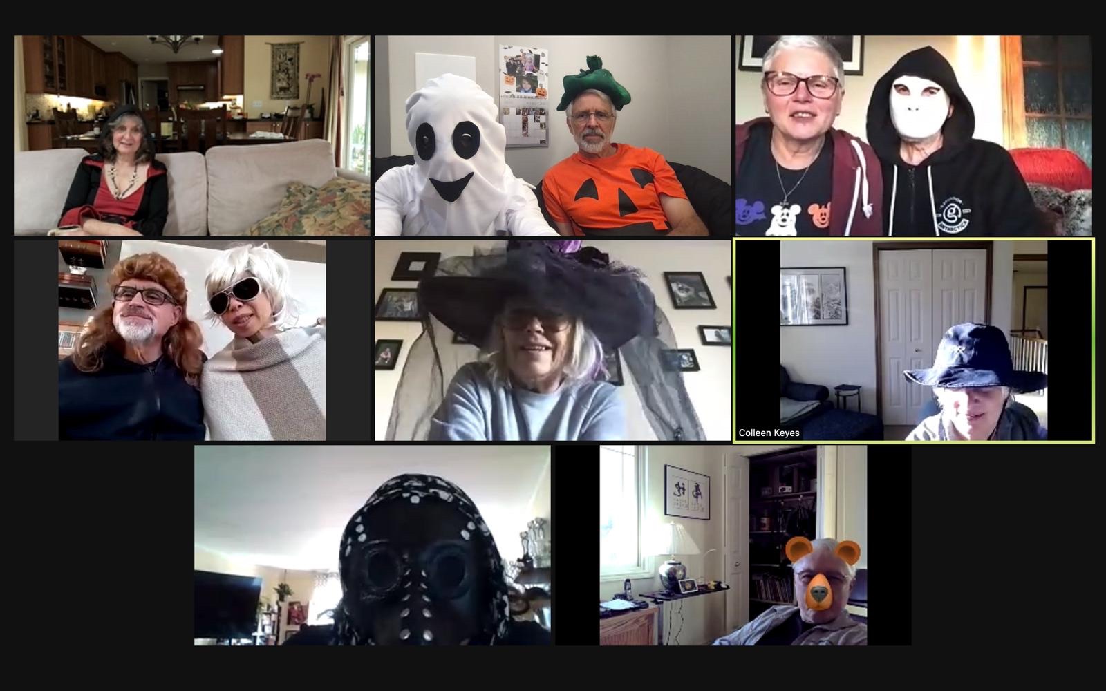 I am home finally after a very full and fabulous day. It began with an alarm to get me up and organized for our ABC Halloween Zoom. I had 8 masks ready to switch out on a regular basis as we talked. It was a lot of fun and so great to see everyone’s costumes. Several couldn’t make it but it was a good visit and laughs were had as always. There were also sad and touching moments as several shared the tough times they are going through. Several of us stayed on longer sharing and caring. It struck me at one point that I was grateful to be able to picture each of their homes in Santa Barbara, California, Biggin Hill, UK and West Linn, Oregon as I had spent time visiting each of them. I find comfort in being able to visualize where my friends are, to picture in my head the renovations and gardening they are doing, to have pet their dogs and cats and laughed with their kids. I truly am blessed by those moments.