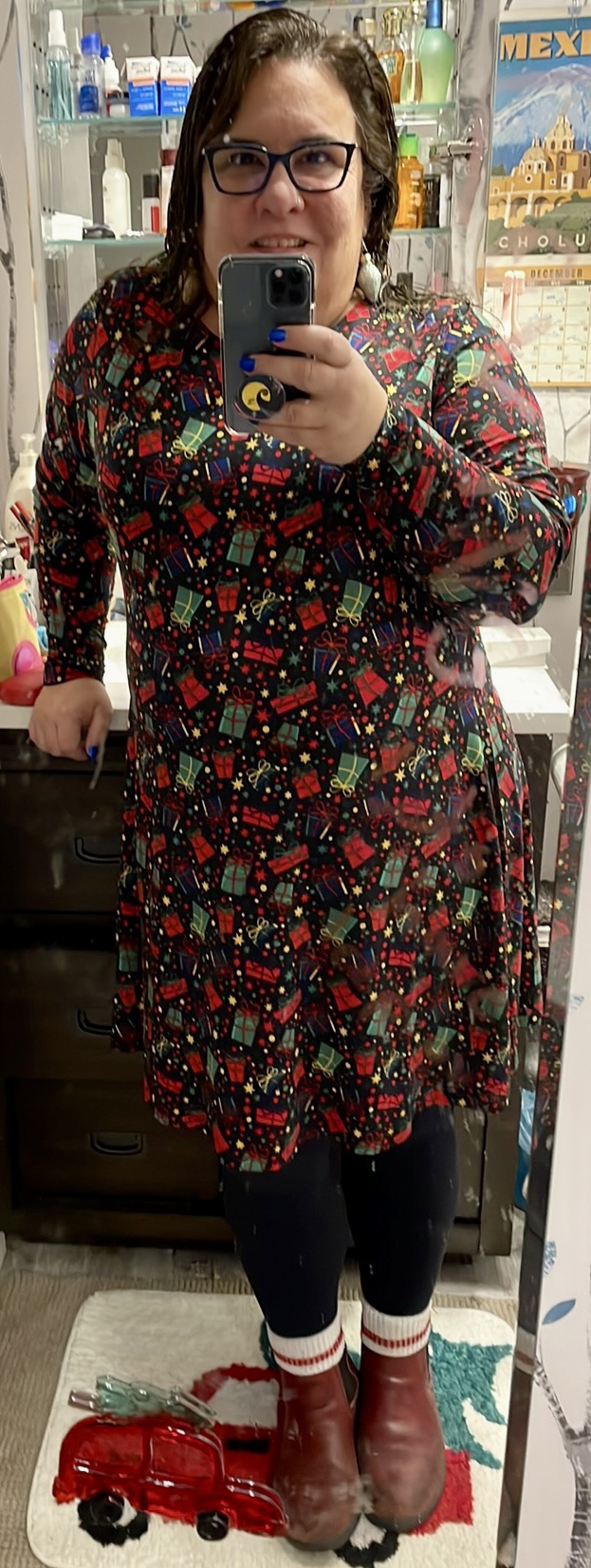 It was a day full of funny things and odd things and good things. I really was comfortable in my Walmart Christmas dress. I will have to buckle down tomorrow but it was nice to take a break.