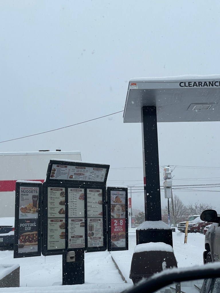 One of the things I discovered I appreciate about Arby’s, besides their chicken nuggets, is the roof over the order spot so snow doesn’t come in!