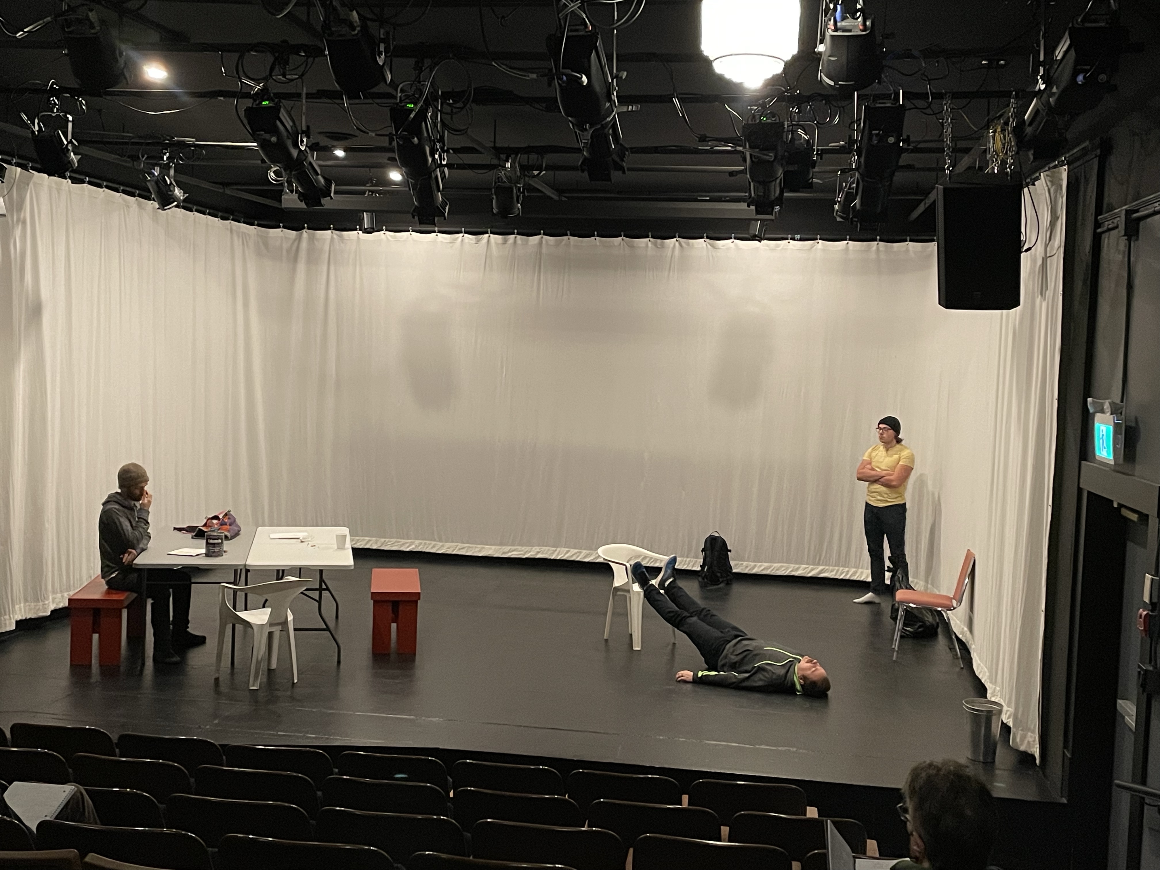 I shoveled my way out to go to the show. I am impressed with the work the guys have put in and they are only half way there. It was great to see Thom meeting with the director and set designer in anticipation of building the set. After rehearsal Duncan met with the costumer. Things are on the move forward. A producer’s dream