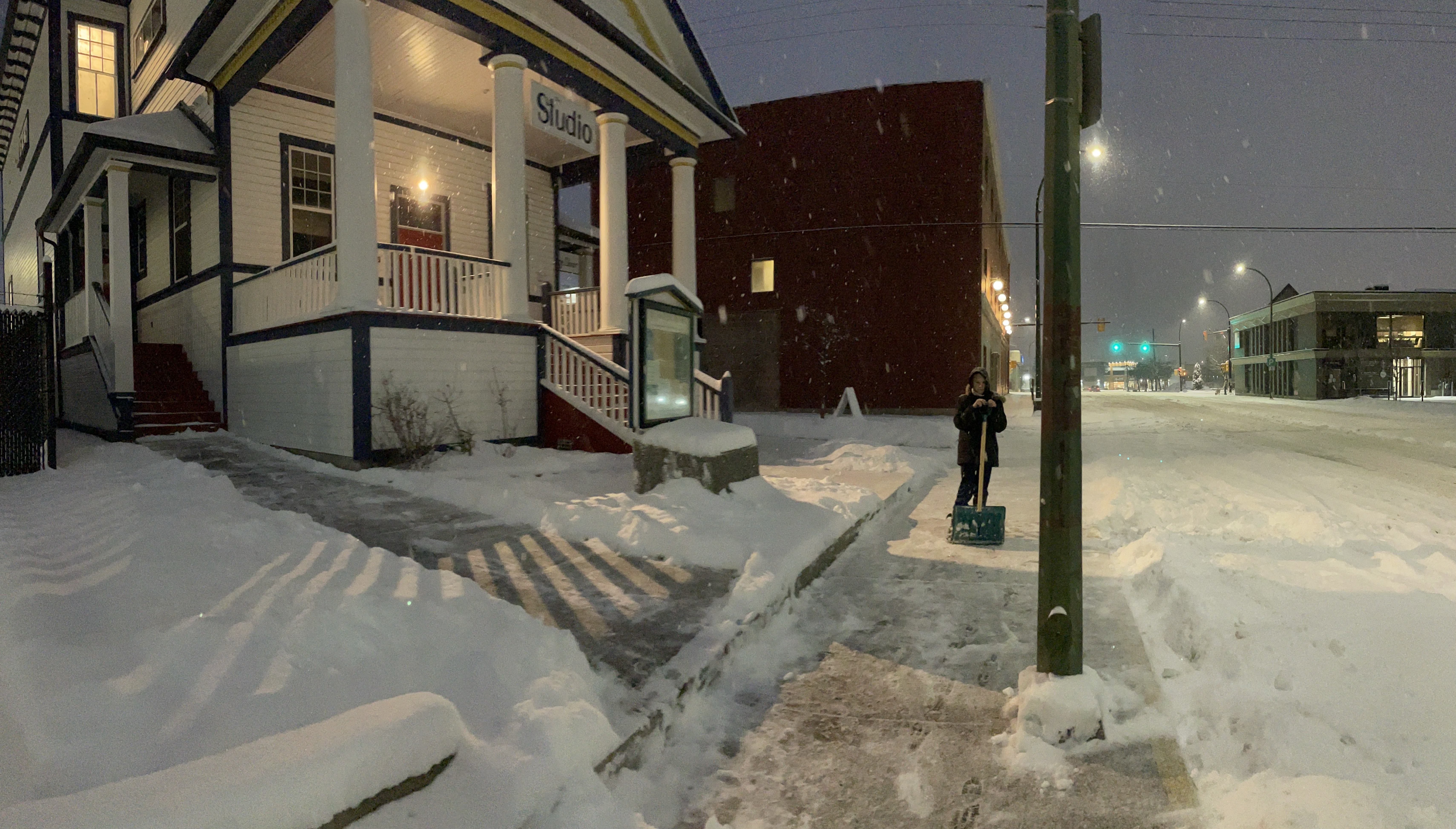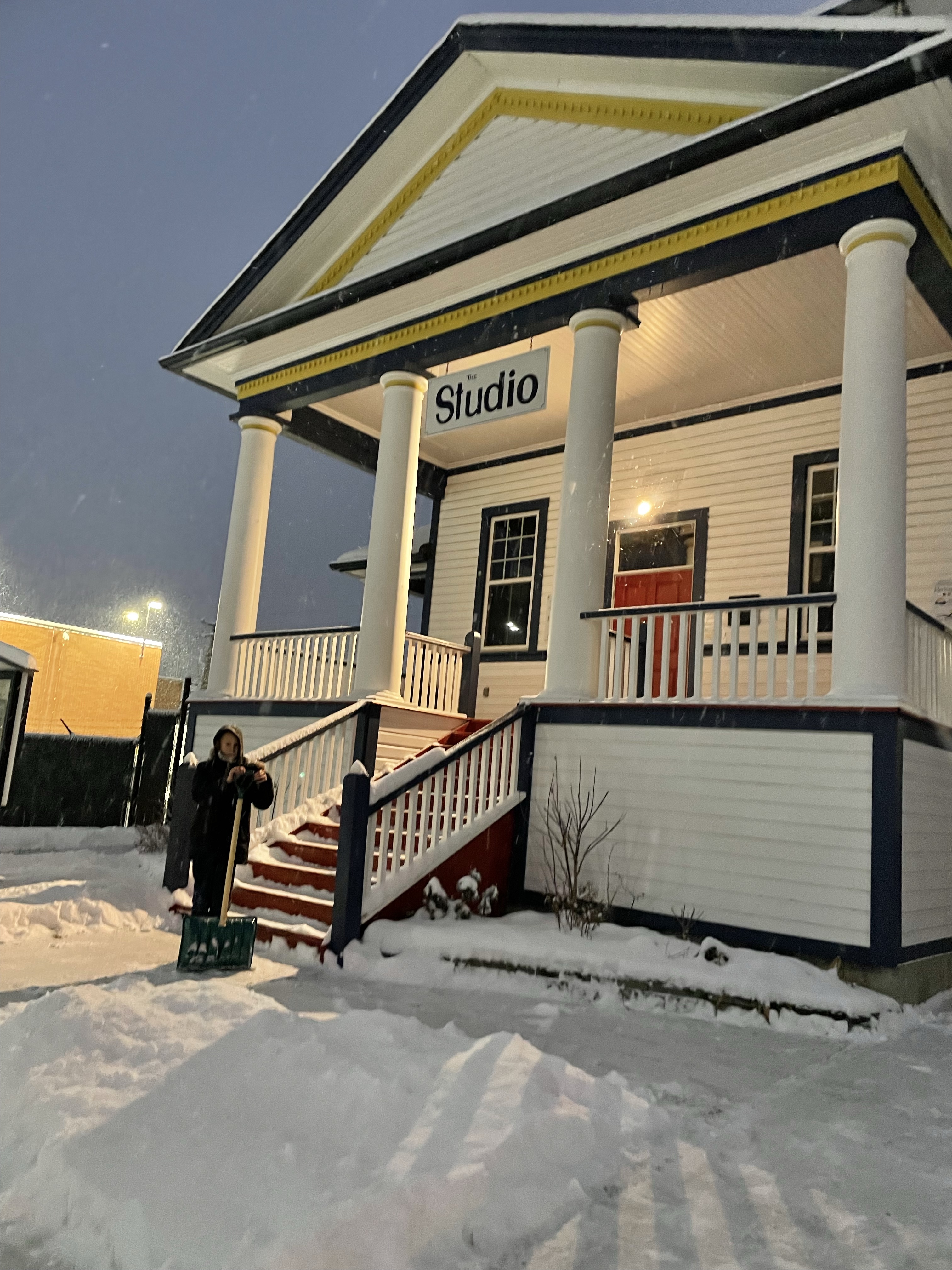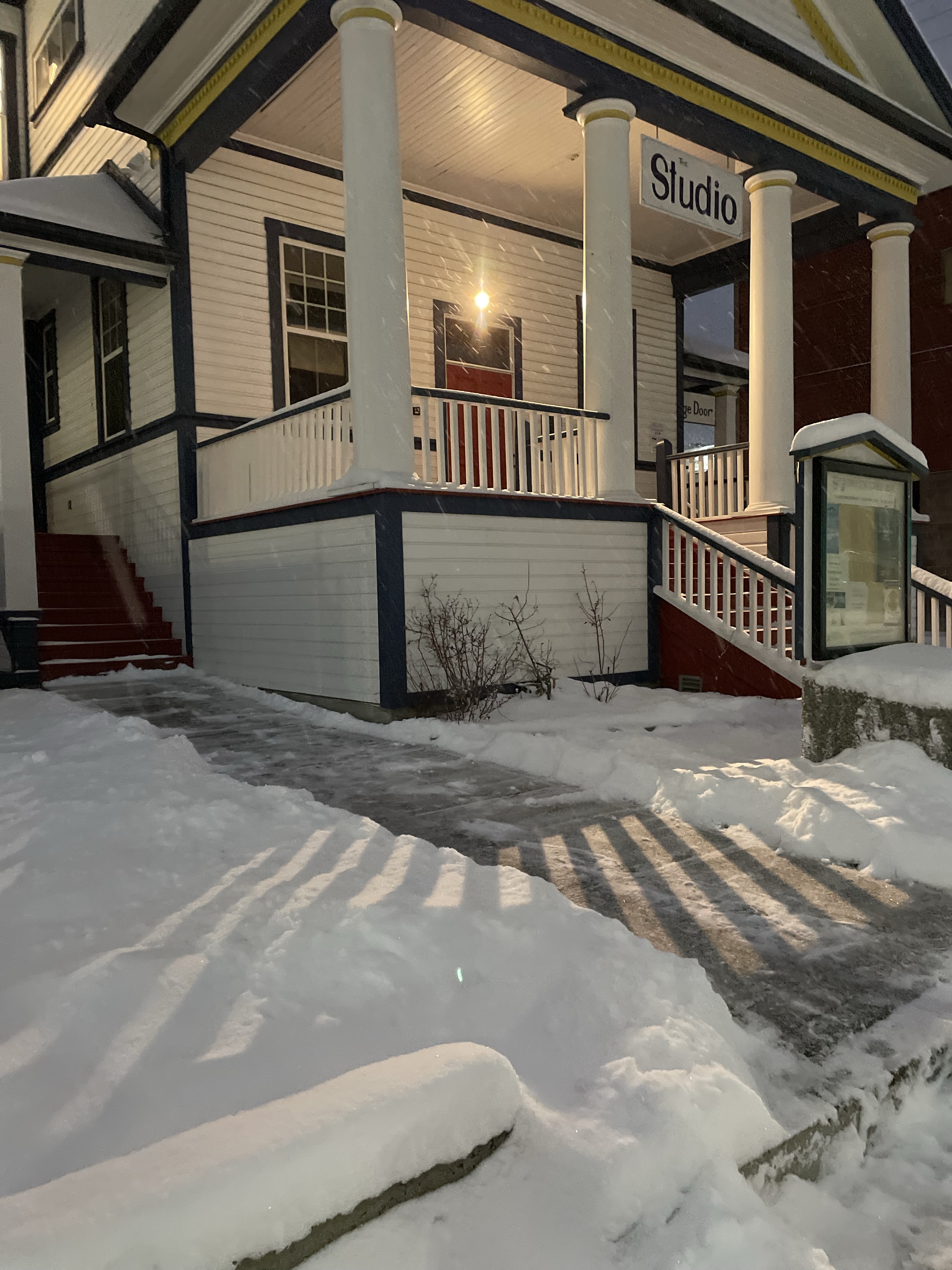 Lukas showed up as soon as I texted him and I supervised him doing the first snow cleaning and we negotiated a reasonable flat rate. While we were out there a guy stopped to talk to us and offer his services as he really wants to get involved with the theatre. He told me some of his skill set and I suggested he get a membership online and then I will have his information and will reach out to him for set building. What a great way to recruit, lol.