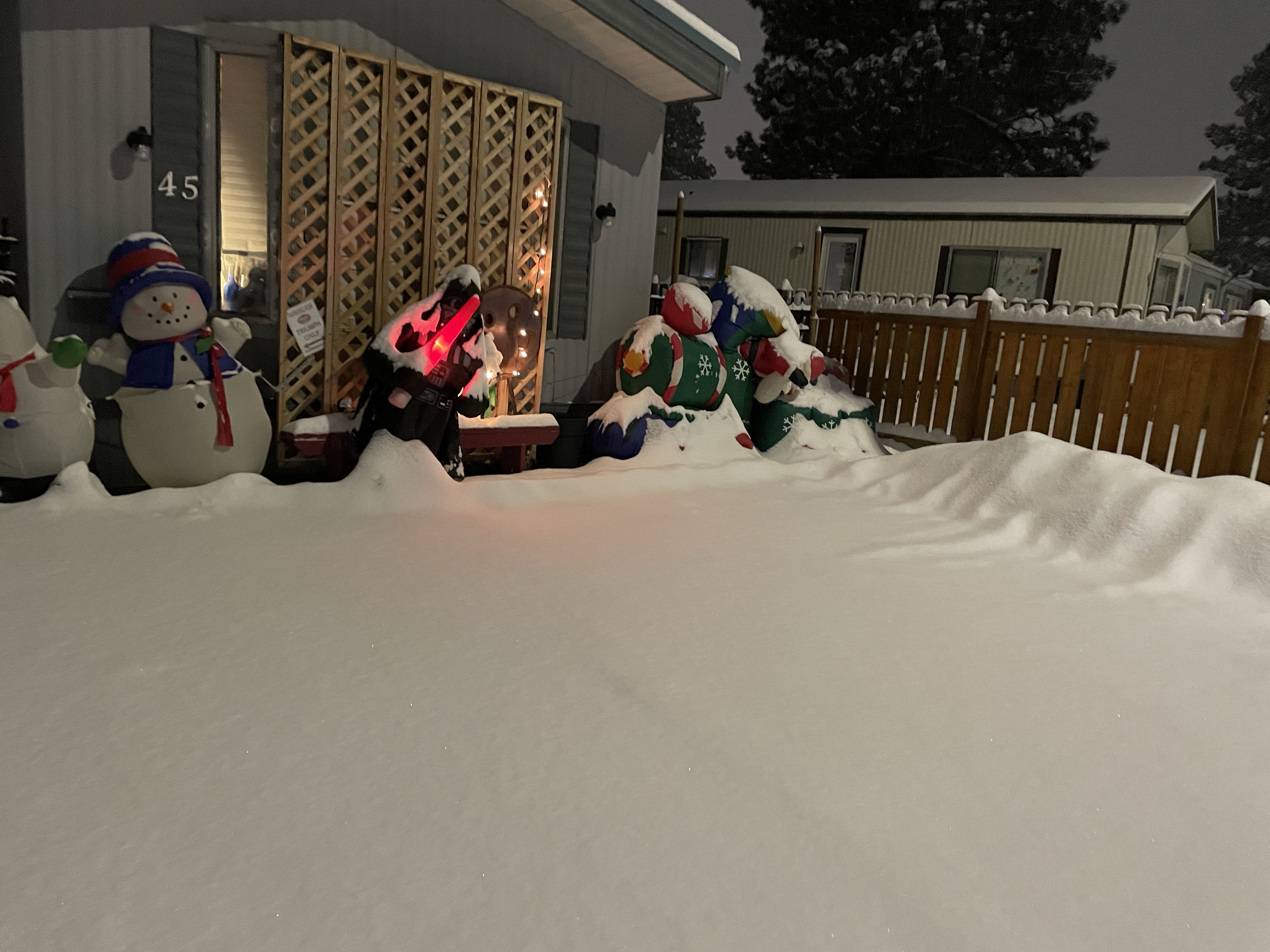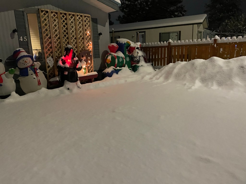 I returned home to shovel once again, about he same amount as each of the previous times. It seems to have tapered off a bit. I feel better about heading out tomorrow. I do have a 3.5 hour drive that includes going over Kootenay Pass which I am not going to did you, has scared me in the past. I once did it in a fog bank, on my motorcycle, that was so thick I could only see two dotted lines at a time. I had hypothermia by the time I got to Cranbrook. This will not be the same. I have my list of safety gear to take, just in case and am looking forward to seeing my friends from long ago and my client who has become a friend.