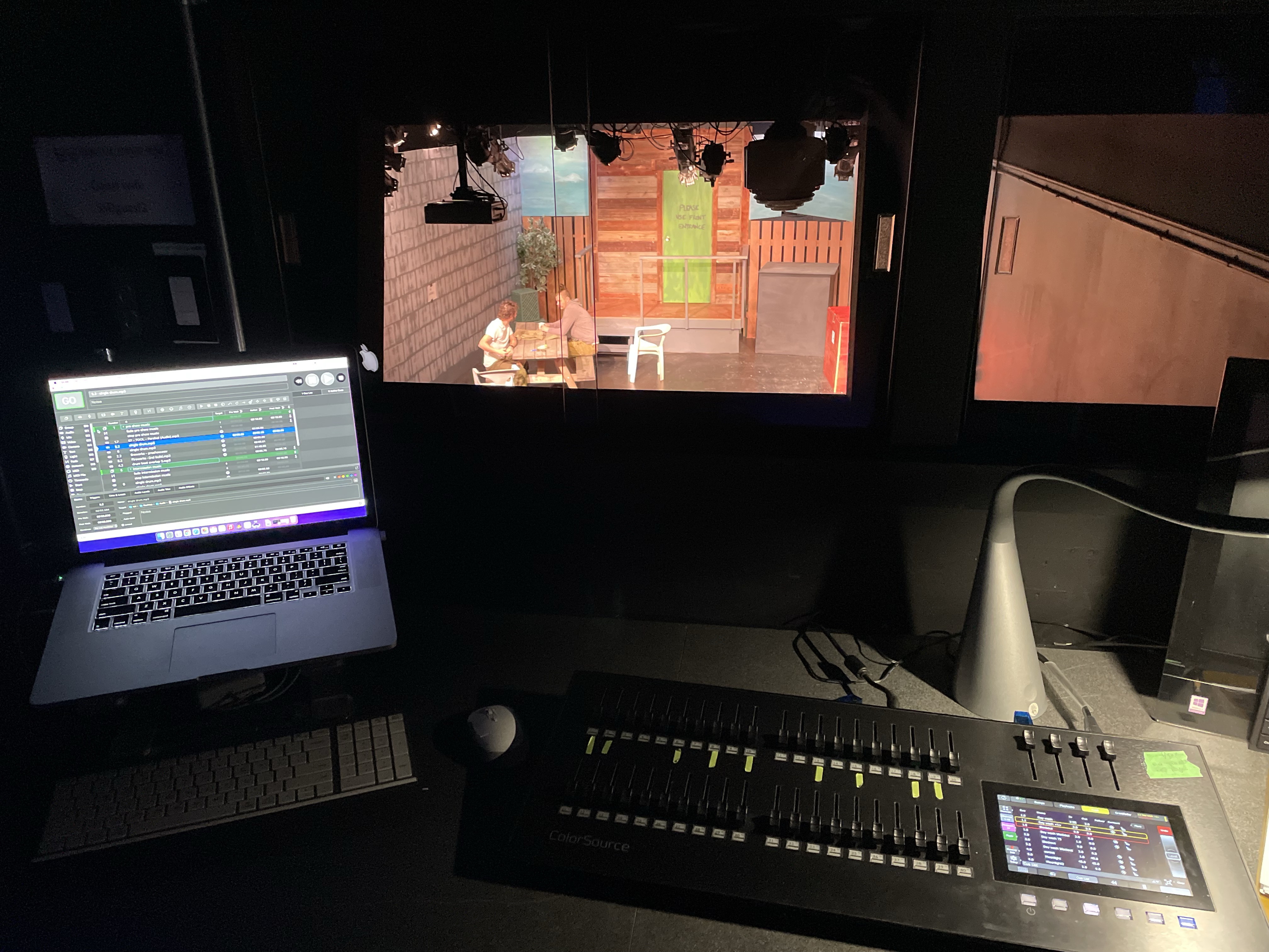 I was in a good mood, up and ready to go to the Tech run-through day. As I was about to leave to go pick up some additional items for the set and the pizza lunch I had ordered, I got a message that Pepijn, our tech guy was really sick. I had no words, and just headed to the theatre after picking things up. I admit I had a wee panic attack processing what I needed to do. Although I am the tech director, I have never set cues or run a show with the new gear. I know what things should look like, how to focus the lights etc. But have not found it necessary to get into the nitty gritty as we have capable techies. I have not used QLab at all…