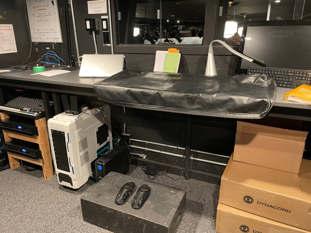 Duncan, Sandy and Lorraine let me vent my fear so I could let it go and then we went up and talked to the cast while they ate and I asked for their patience as we did a Q2Q for me to learn and write notes. They were so great and after one quick run through, we ran the show. There are two firework scenes that took the most time yesterday to co-ordinate and it turns out they were not set cues but hand created. I messaged with Pepijn and Steph stopped by to call him and confirm our actions and then I took the reins and made them happen. It wasn’t perfect but so great! At the end of the show, me made some notes for adjustments to preset fade in and out times and will test them tomorrow. I had to copy and set a couple cues even. The board does not feel intuitive until suddenly it clicks. I left pretty shaky but sure I can do it for this first week of final rehearsals, previews and three shows. I asked Pepijn to stay home and get well and then come observe and make notes at the matinee to ensure he gets the timing differences we have made as this would have been his rehearsal time.