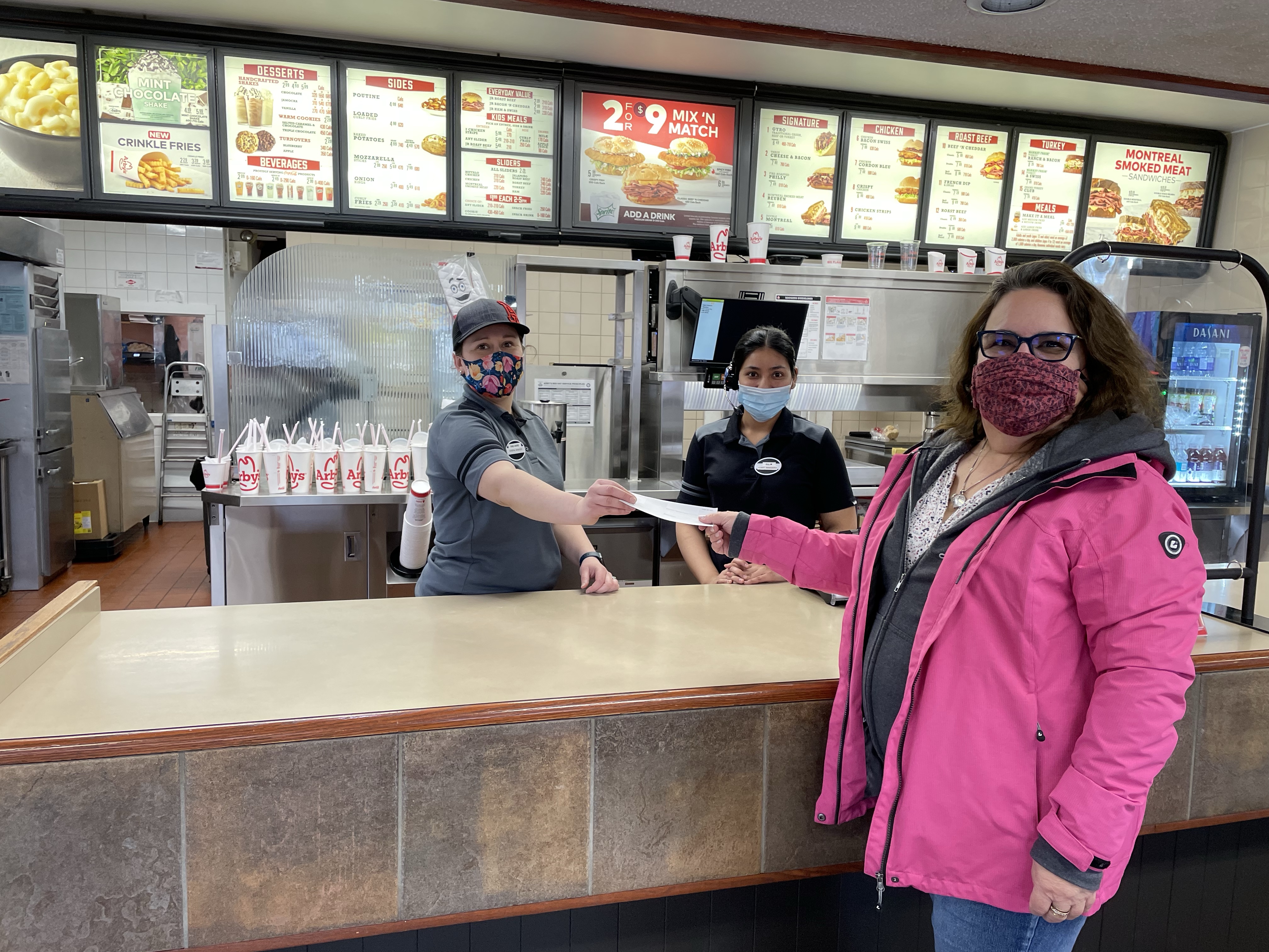 Started the morning with fresh wet snow and my own banking to take care of. As usual February ends and something of mine has fallen by the wayside. Fortunately I took a call and made a payment that was missed without any penalty. The first couple hours at work was a phone consult with clients in Kimberley. They are lovely humans and need reports from me to apply for their permanent residency status. Next I was picked up by Stacey to go for lunch at the Firehall. It is burger month to raise money for the Foundry at about 10 restaurants in town. This was the one that looked the best to me and I was happy to spend the calories. It was called the Duchess of Dinktown and was downright delicious. Burgers are not my go to but I discovered that I LOVE dill infused cream cheese. Had a great visit with Stacey as well! Next was back to the office to meet briefly with the president of the CCT Board and then head to Arby’s for a photo op receiving their donation to Summer Sounds that FPPAS puts on. I got back to the office and made all the payments for a client before the staff is away next week for training. Then around 5 I shut off the timers and started working on MusicFest stuff finally. I entered 94 people in as proper contacts to my Gmail and then individually invited them to be part of the crew this year with the explanation of the protocols. I have changed my email so wanted to do it individually in order to avoid group email going to junk folder. I am late to the party as I was supposed to have it done at the beginning of February but… well, February. As it happens, the positive responses have been rolling in. I can’t wait to see the usual suspects and meet some new partners and friends of regulars who wish to be involved as well. I need 69 people to fill out my crew and hope that won’t be hard to fill. It may be a challenge for me to recognize everyone but I am starting to get excited. I got home after 9 sometime and have been relaxing and basking in a day well spent. I look forward to tomorrow’s ABC Zoom meeting.