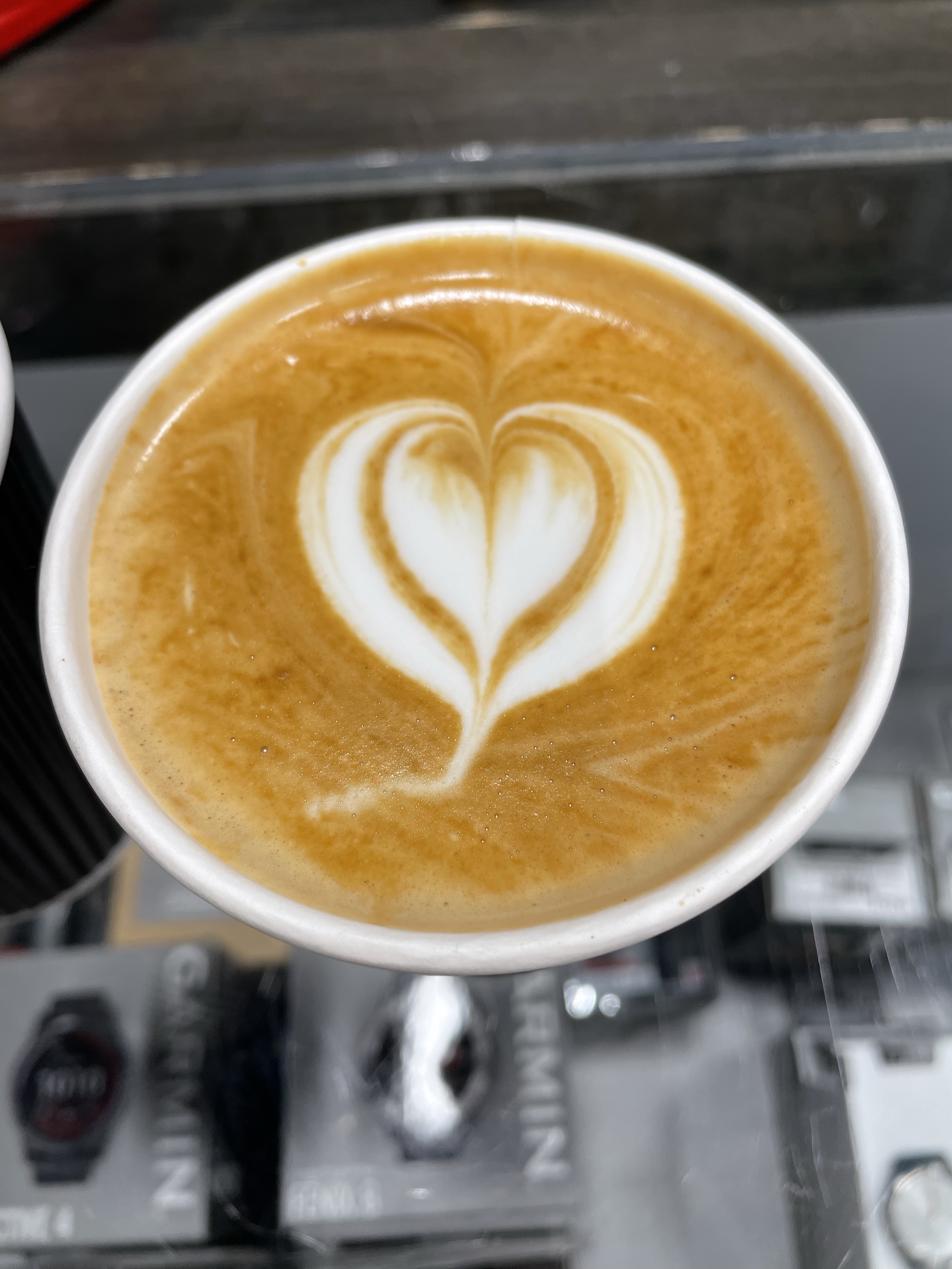 I loaded the car, took out the garbage and headed to the office. Got a lot of people paid and reports done before going to fill up the car at Shell where there was double air miles and 3 cents off with BCAA. Stopped at Northstar Bicycle Company where I had been told yesterday that there is a great barista and that was the truth. He (dang I forgot, I think TImmy) was just a lovely human being who made me a wee dog and Rae a heart. What a sweet touch.