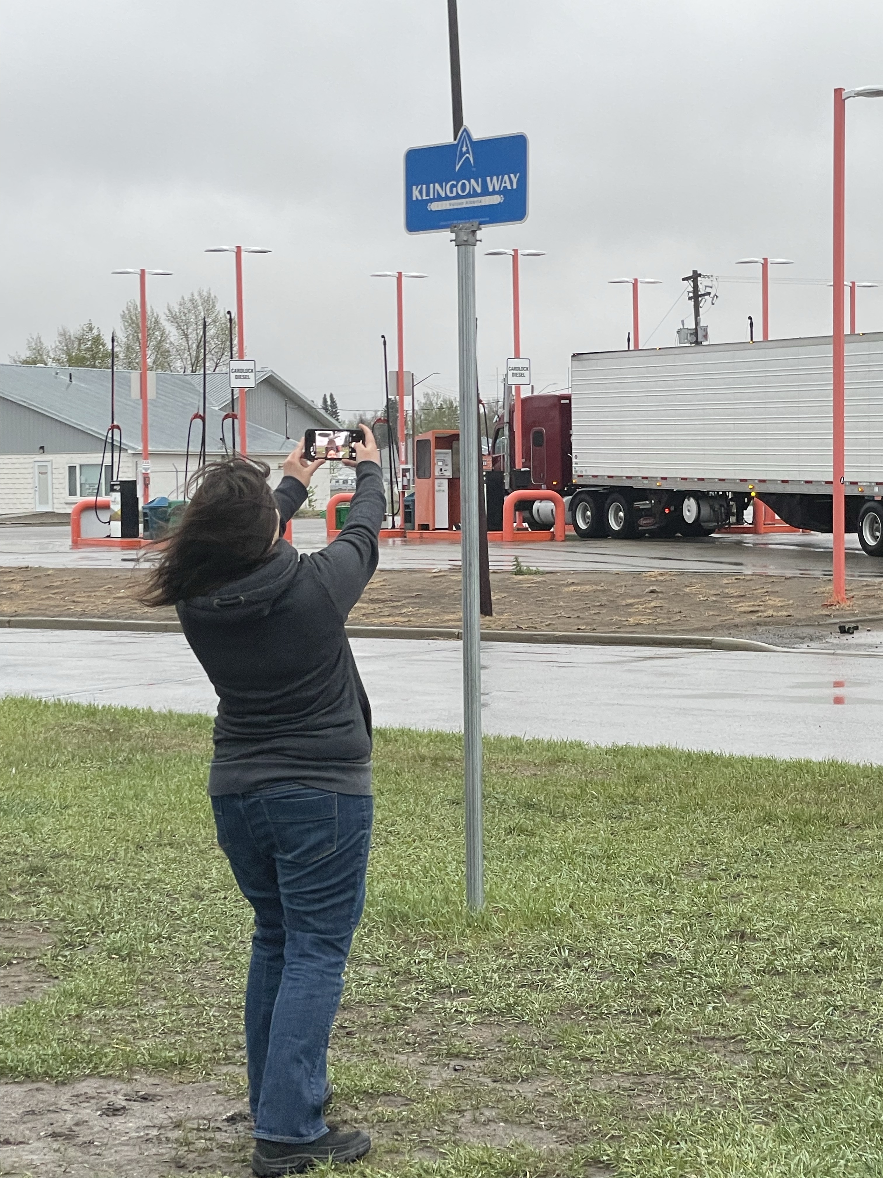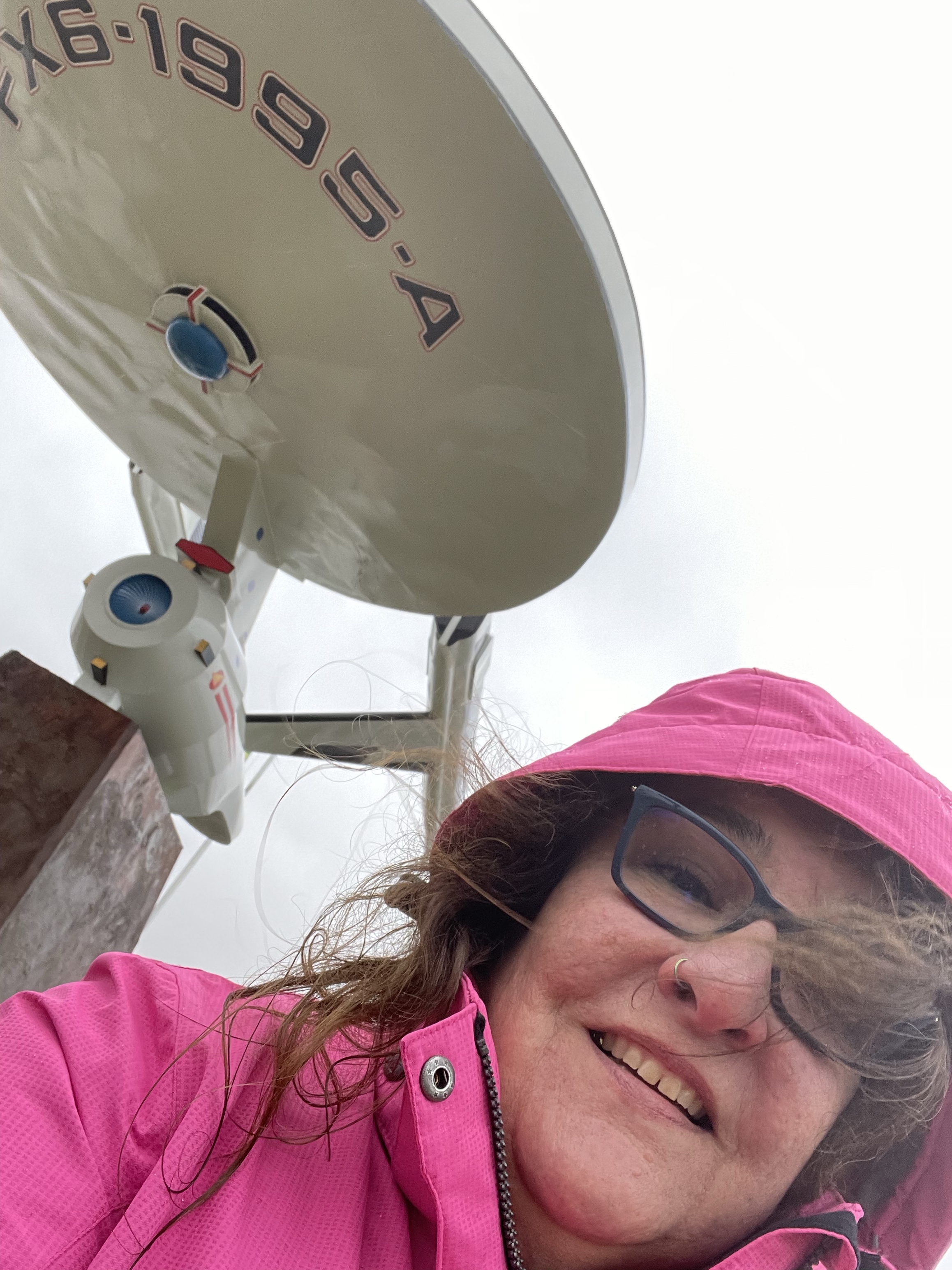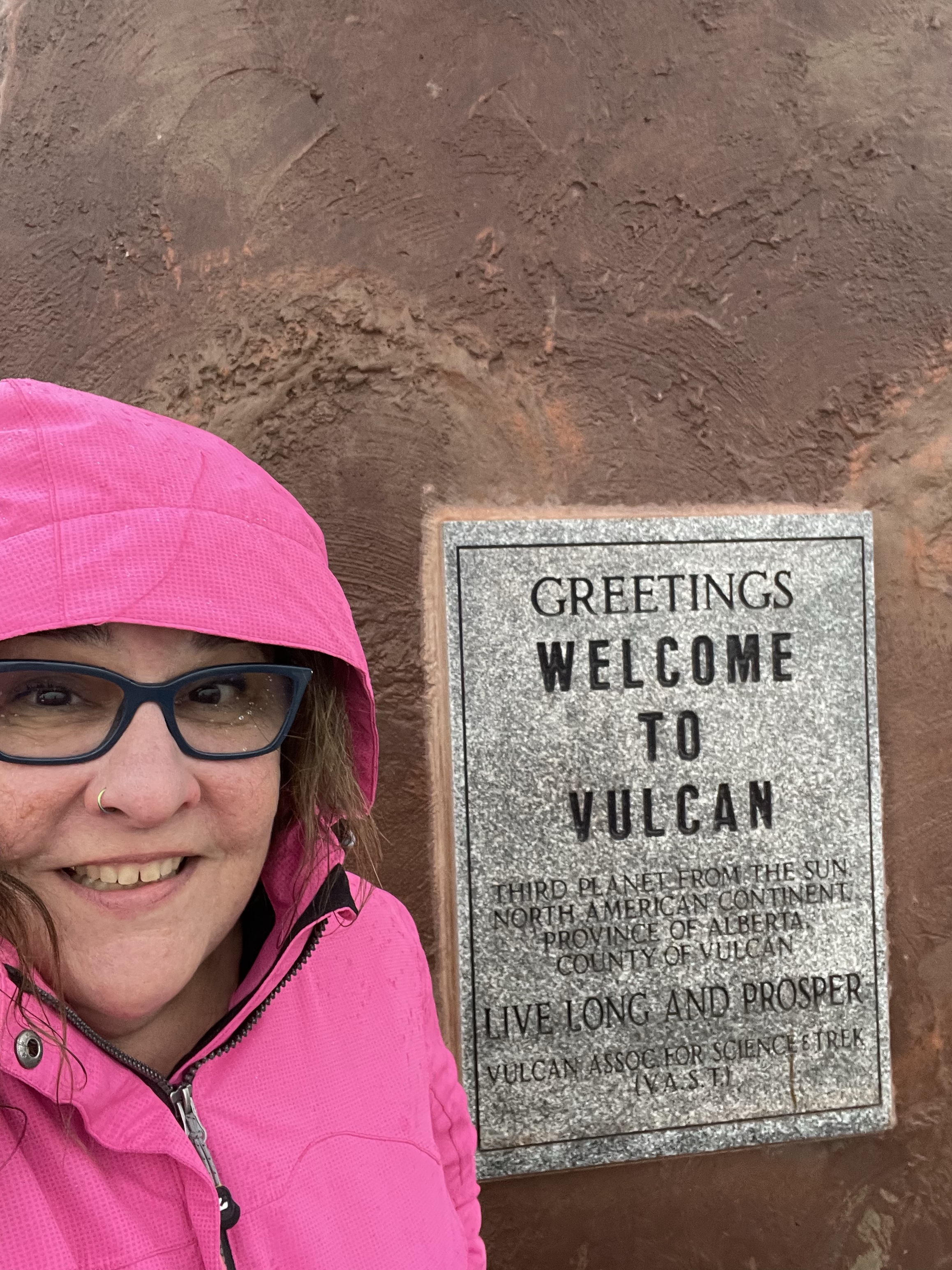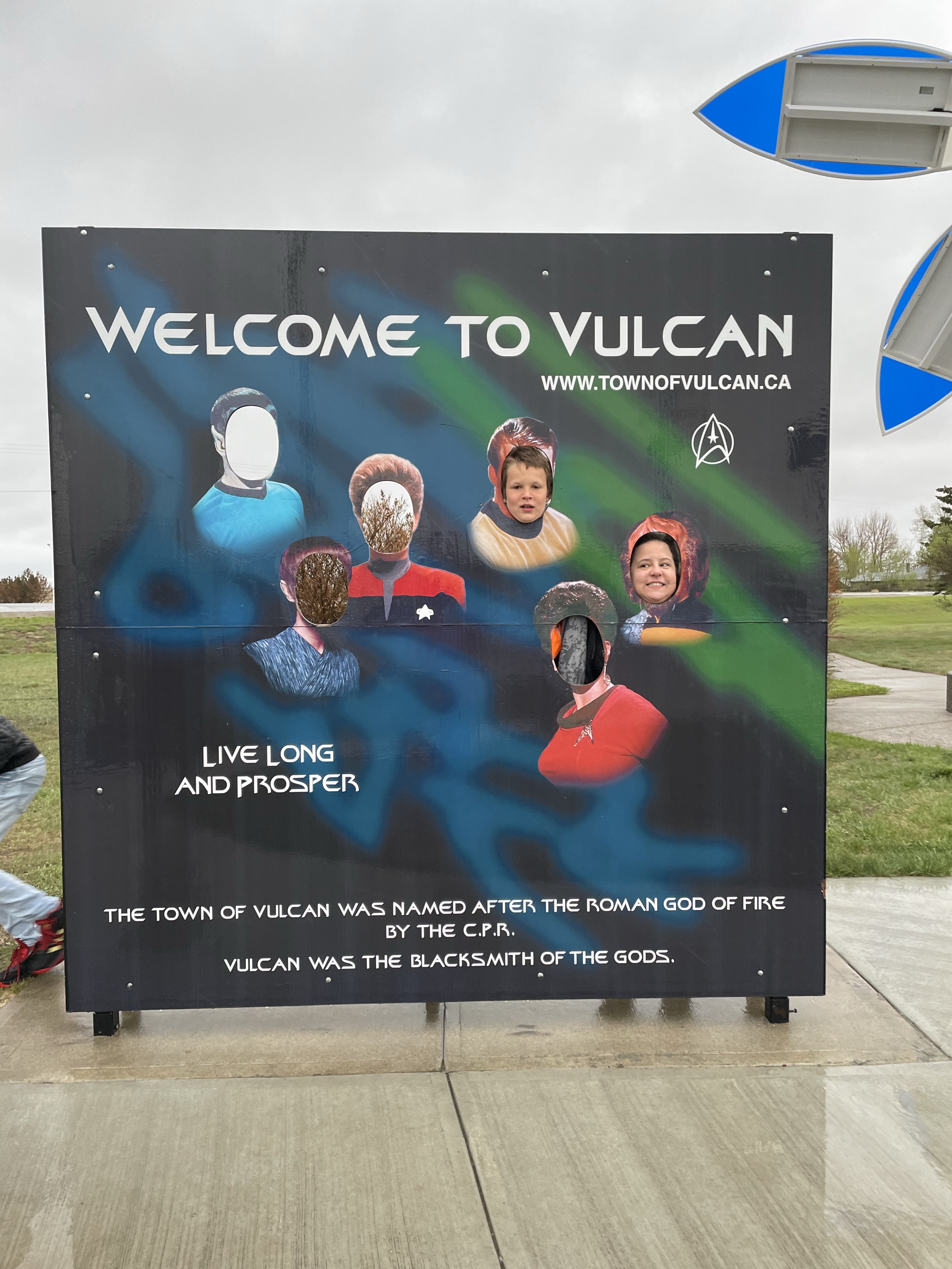 I listened to audible books and Ash tried to sleep along the way until we got to Vulcan which is a cool little spot celebrating the Star Trek universe. It wasn’t open and it was pouring rain so we stopped at the Subway across the street use the loo, grab food and warm up. Just as we were nearing town my car gave me a message. Maybe it came from outer space