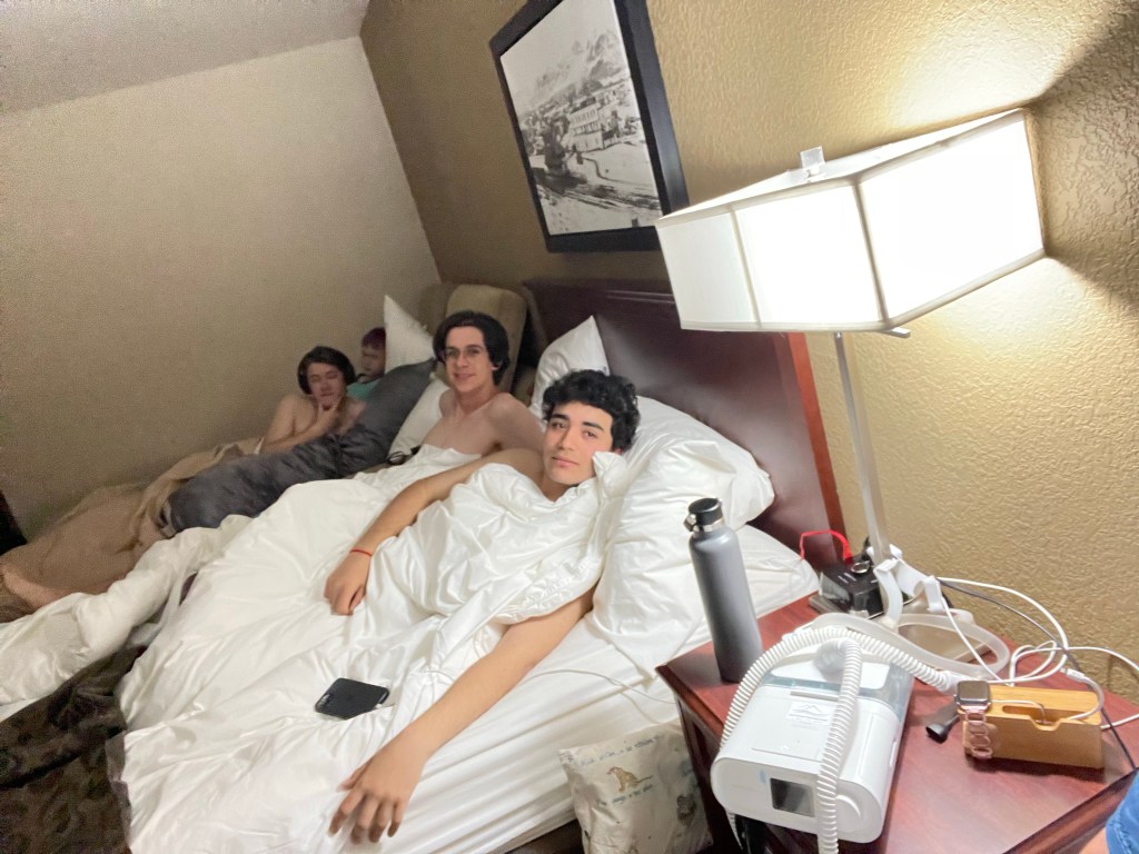Rae, Roger, Bill and Deanne, Will and Sawyer have a suite with a kitchen and separate bedroom and Ash & I are in a two queen with pullout with the 4 teens. It is already smelly in here, lol.