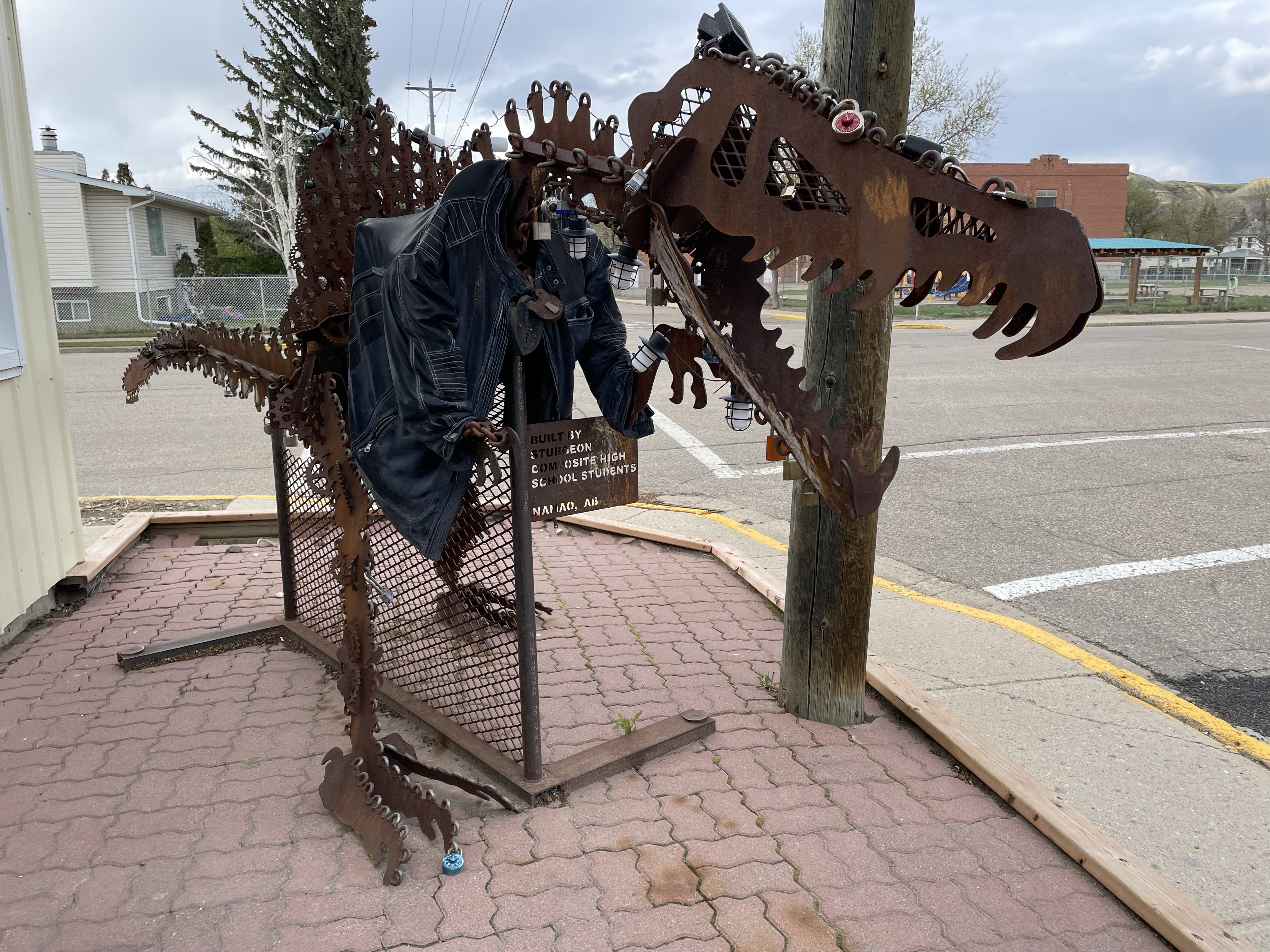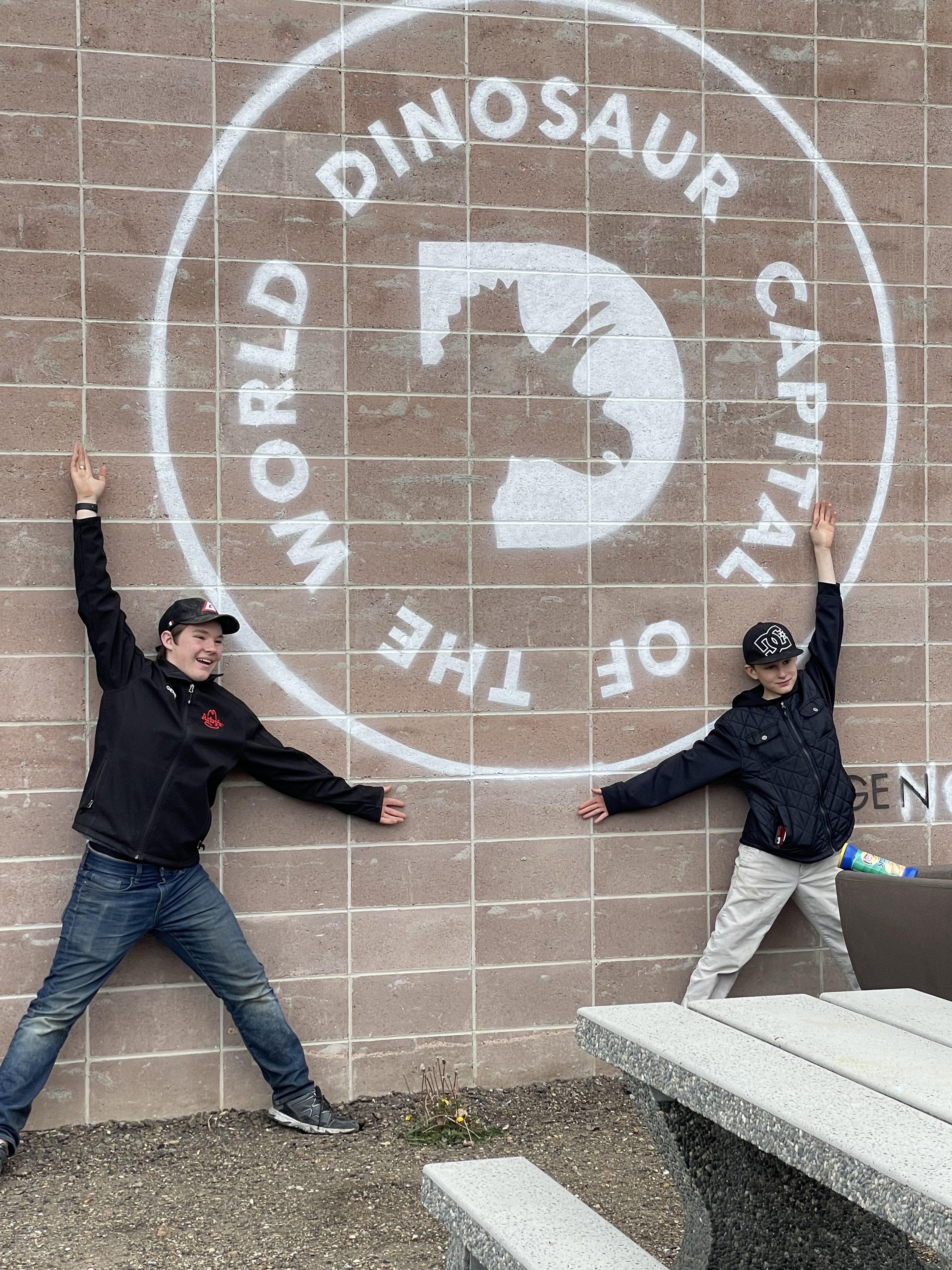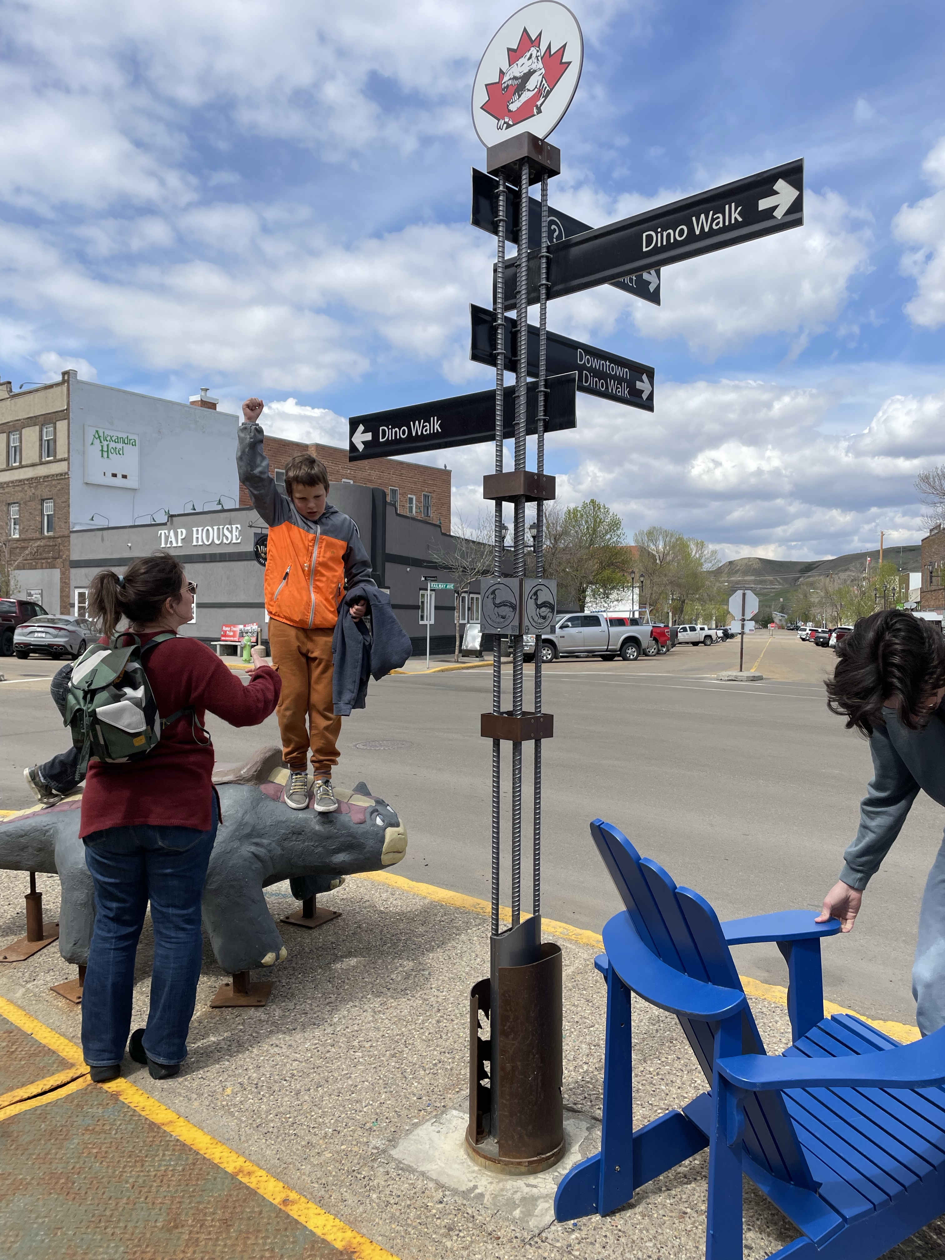 I didn’t have a lot of great sleep but was up at a decent time and we all headed to the hotel provided breakfast which was delicious. We headed out and were at the museum before 9:30 which turned out to be the best as we were ahead of the crowds and took our time wandering through and enjoying it all. It really is world class!! I had no idea that Drumheller is the Dinosaur Capital of the world. I learned so much today and it really was special. We headed into downtown to do the dinosaur walk. The kids had fun posing with so many of the art installations and we wandered in and out of stores and stopped for flights of beer being sure to bring some cans back with us. The kids went to the pool while Rae and I took the students to Walmart to pickup a few things and then it was out for dinner to Bernie and the Boys Bistro for great burgers in a very weird environment. I picked up some dehydrated salt water taffy. When we got back, the teens went to the pool again and Rae and Roger and I went for a walk to the neighbourhood stores, and they picked up drinks and snacks for the kids. Roger and I continued on to the Liquor store across the street for some treats. I then played RummyCube with him and we each won a game before I headed back to my room to get people settled for the night. It is challenging with one room and 6 different expectations of sleep times. It is a really nice time together and I am really glad I came. I have even mostly been able to ignore my email, ha-ha