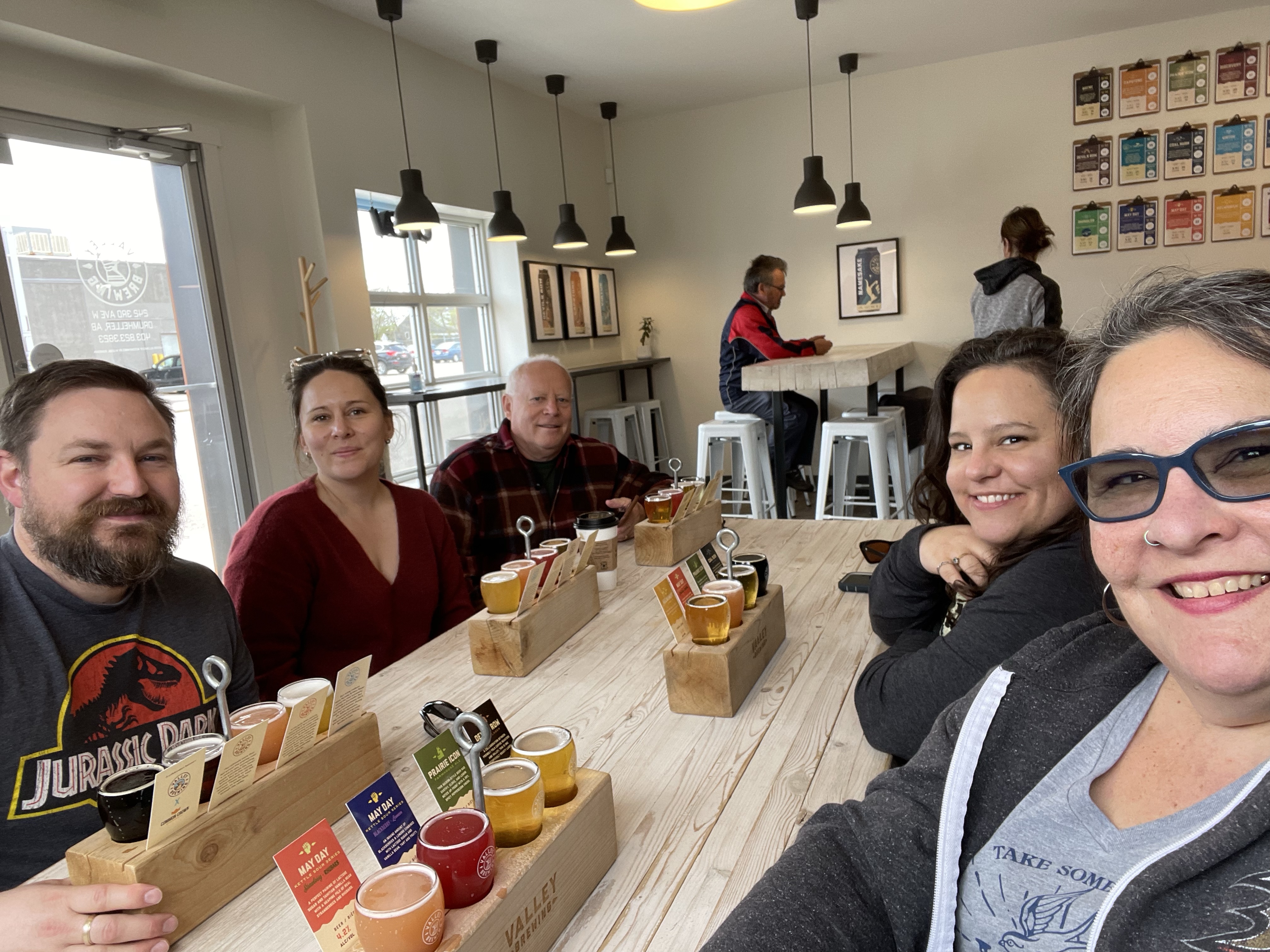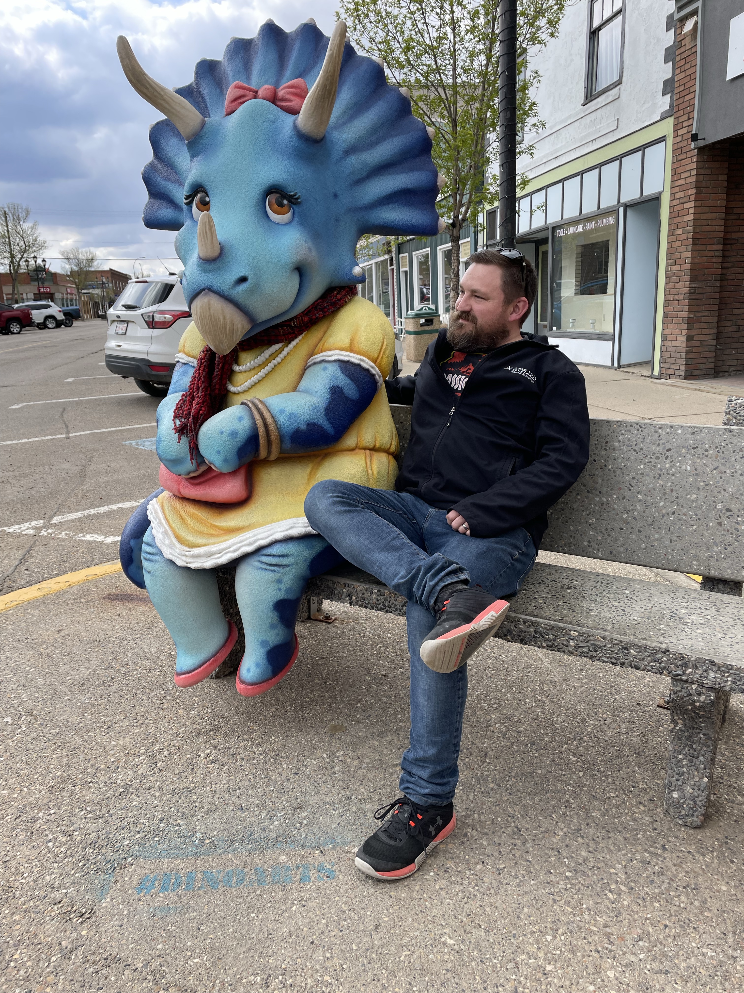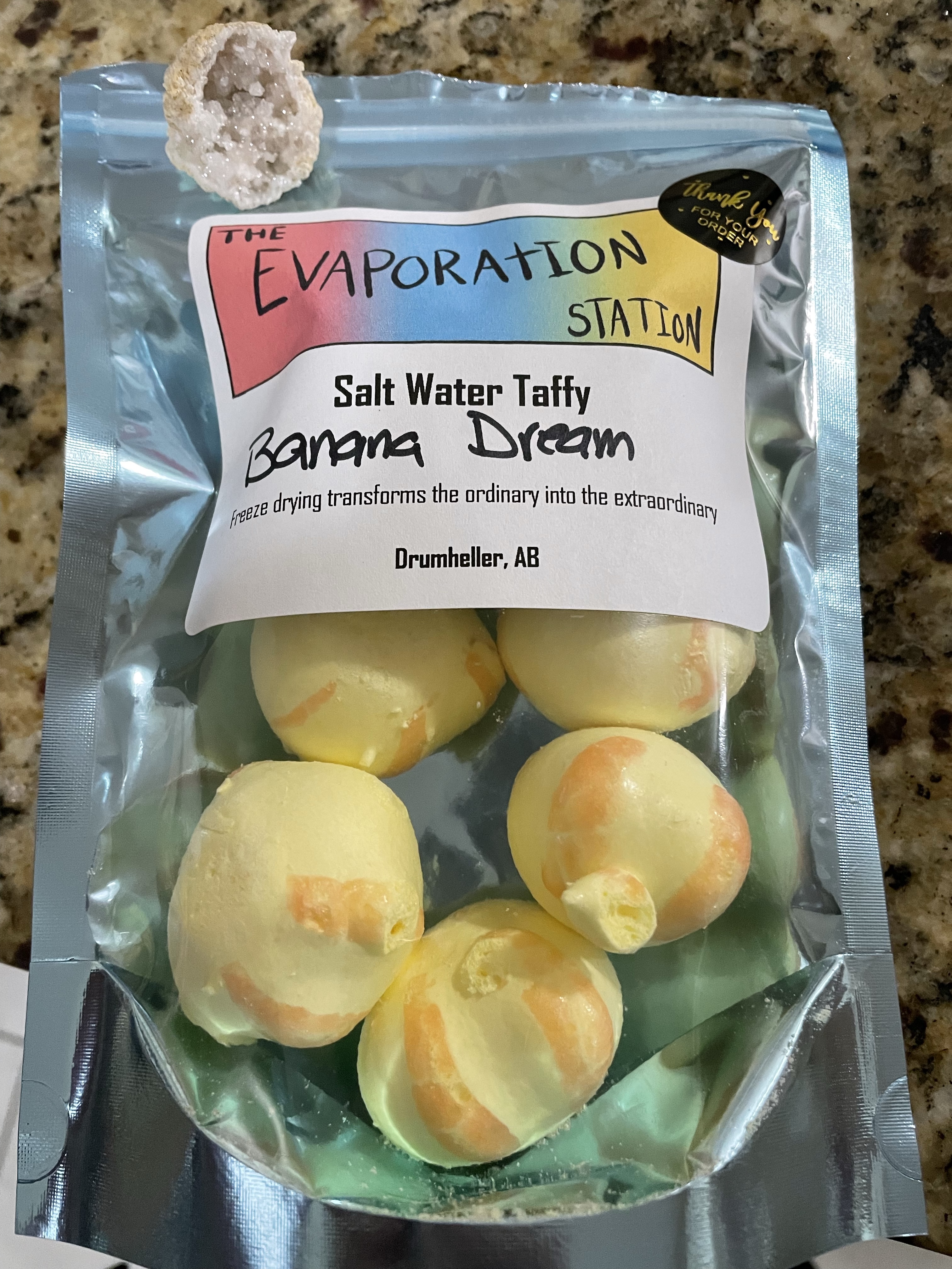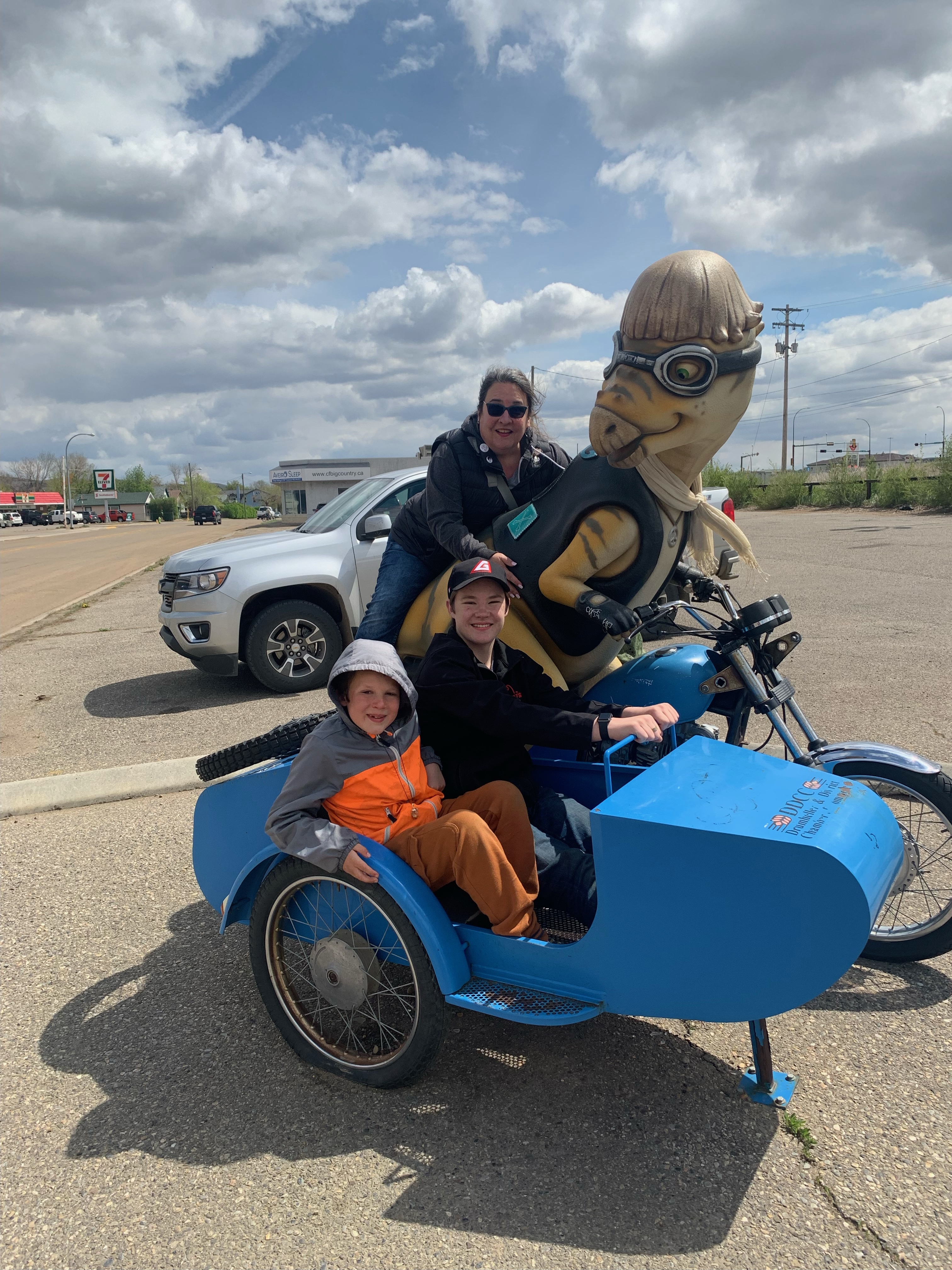 I didn’t have a lot of great sleep but was up at a decent time and we all headed to the hotel provided breakfast which was delicious. We headed out and were at the museum before 9:30 which turned out to be the best as we were ahead of the crowds and took our time wandering through and enjoying it all. It really is world class!! I had no idea that Drumheller is the Dinosaur Capital of the world. I learned so much today and it really was special. We headed into downtown to do the dinosaur walk. The kids had fun posing with so many of the art installations and we wandered in and out of stores and stopped for flights of beer being sure to bring some cans back with us. The kids went to the pool while Rae and I took the students to Walmart to pickup a few things and then it was out for dinner to Bernie and the Boys Bistro for great burgers in a very weird environment. I picked up some dehydrated salt water taffy. When we got back, the teens went to the pool again and Rae and Roger and I went for a walk to the neighbourhood stores, and they picked up drinks and snacks for the kids. Roger and I continued on to the Liquor store across the street for some treats. I then played RummyCube with him and we each won a game before I headed back to my room to get people settled for the night. It is challenging with one room and 6 different expectations of sleep times. It is a really nice time together and I am really glad I came. I have even mostly been able to ignore my email, ha-ha