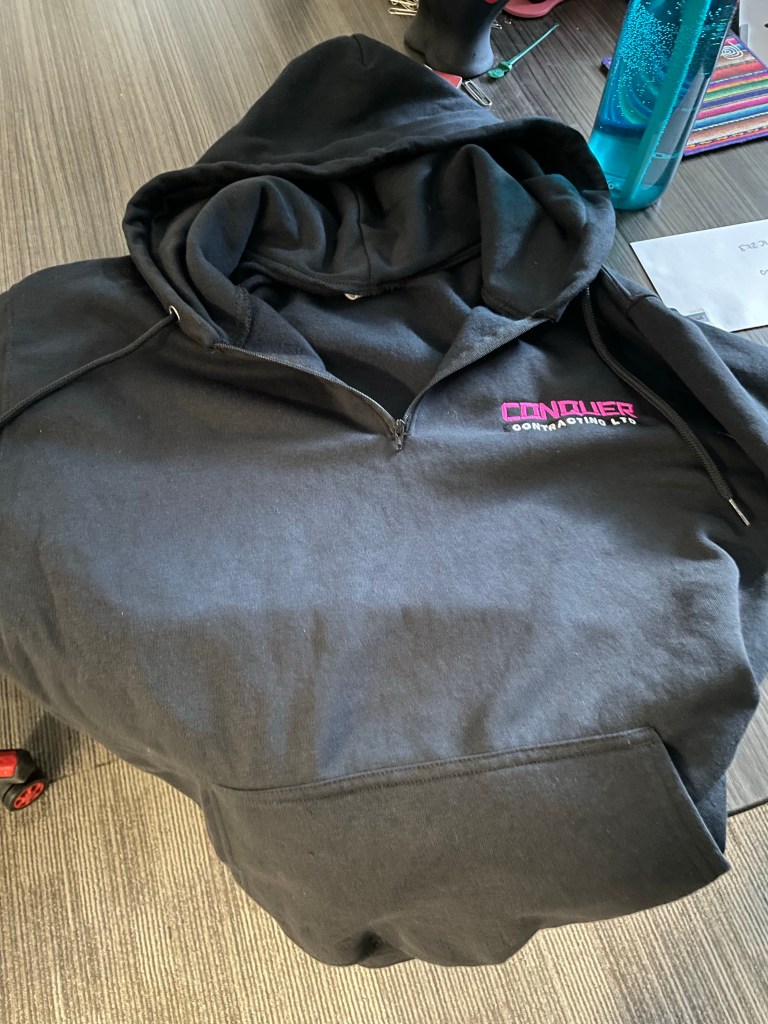 I had to really focus as there was nothing simple about anything I had to do but I got it done and toward the end of the day my client, now friend, Matt stopped by to give me my own hoodie from his company. I had admired his with the zip neckline some time ago and he remembered and brought me one, saying, girls like pink. That made me smile. We then had a good long chat about nothing work or book related and it really was special.