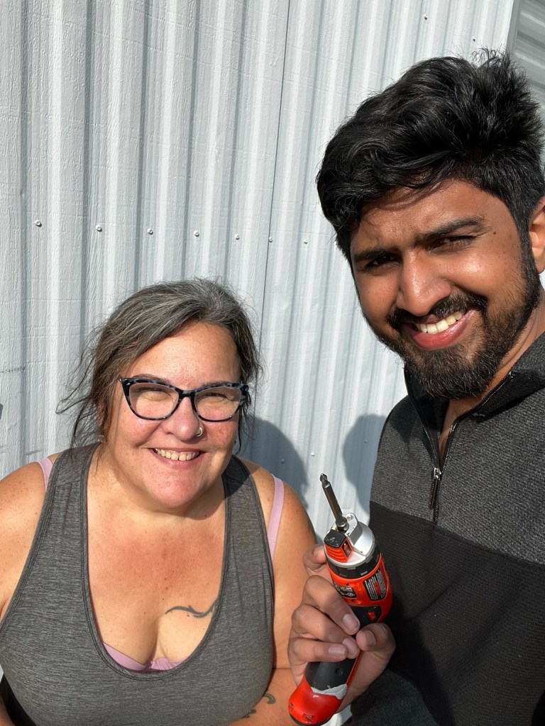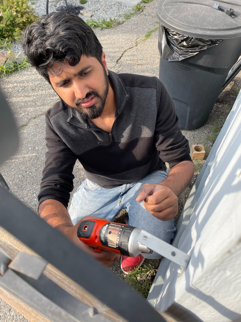 I discovered I had not watched the final episodes of the Book of Boba Fett and so watched two of them. I was sitting outside watching the third when Safwan arrived. He offered to help me accomplish the things I wanted to outside today. I took him up on it! We moved the big ugly pile behind the trailer, I designed and he assisted in making a new gate which will keep out the deer and stand up to winter. I repurposed the arch way and am pretty darn happy with it, just have to add a little bolt lock to make it stay easily. NO MORE DEER!!! And no more crazy net hanging to keep them out. Safwan was a great help and we had many good laughs that his father would be amazed at what he was doing. He is the same age as Jake and I think similar in nature. It was fun to have a surrogate son for the day. The final thing we did was store my Kayak for the season. We had gone to pick up a few hardware items at Home Hardware and stopped at Superstore for dinner items. I made dinner to thank him and we watched the first 5 episodes available of She Hulk. It’s cute.