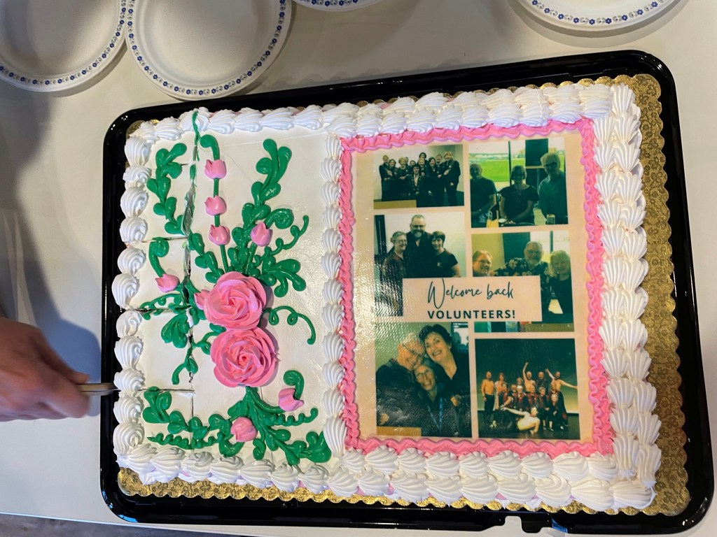 I went to the Key City welcome back to volunteers night and thought it funny that I saw my face on a cake for the first time and even got the piece with it on it! For the evacuation training drill I was assigned as the wheelchair person and to be honest, it was stressful waiting to be last taken out. It definitely gave me a new perspective.