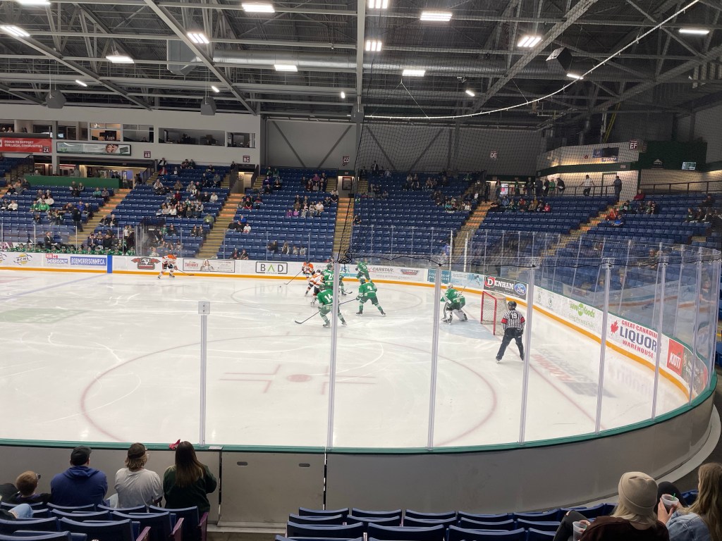 Rae-Anne had a bunch of us over for a beautiful roast dinner eaten out in the yard. It was nice to spend time with Dee and Zach, and all the home stay students as well as the usual family. Only Roger and Deanne were missing, he for work and she for scrapbooking. After dinner many of us headed to the first exhibition hockey game which was against the Trail Smoke Eaters. There was no score in the first and third periods and we got 5 in the second to accomplish a shutout. It was lovely to have sweet Will sit with me. He is really feeling life changing as Lukas hangs out more with the older kids now. It can be tough to be the younger brother. I am sorry that Tracey couldn’t make it as she has pulled her back and is immobile. It was nice of her to give up her ticket to Jonas, one of the Guedes students.