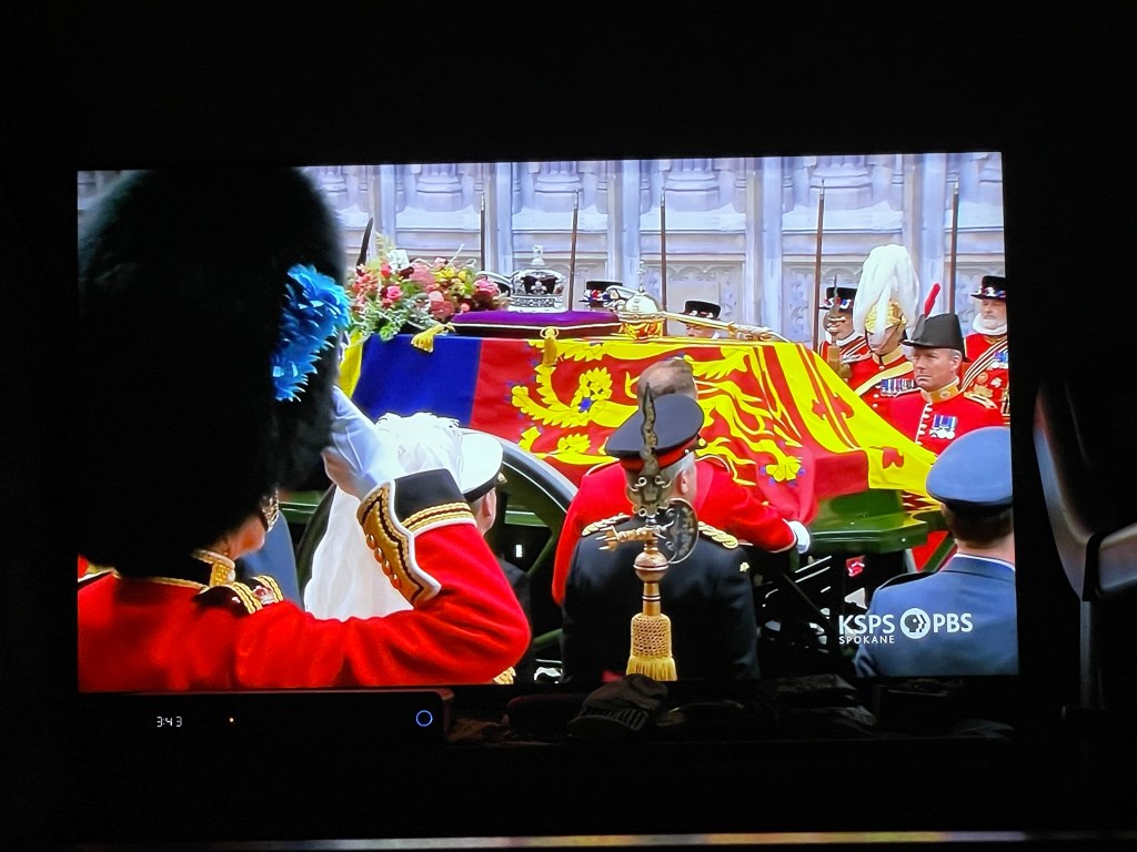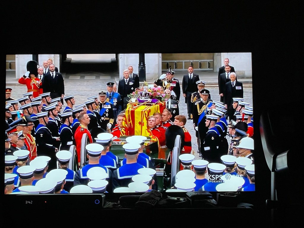 I had set my PVR to record the Queen’s funeral but woke up at 2:45 am and it was to start at 3. I turned it on and tucked back in. It was very moving and incredibly impressive. The pomp and circumstance was like nothing I have ever witnessed nor imagined. I was constantly aware of the precision of movement of thousands of military personnel and how perfectly timed it all was. Everyone must be completely exhausted tonight. There were so many touching moments and I was also filled with pride seeing the Royal Canadian Mounted Police holding a spot of honour in the procession. I was choked seeing the Queen’s pony watching her go by. It is all just so much to process and I am glad I was able to take as much time as needed to watch and feel a participant in respecting and honouring her legacy. It is still so odd to consider she is no longer. I wish I could hug my UK friends and family and care for them in this loss. I am sure I will be processing it for some time and I am glad I woke up as the recordings were only a small part of the entire thing and I am grateful to have seen it all.
