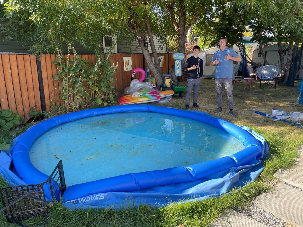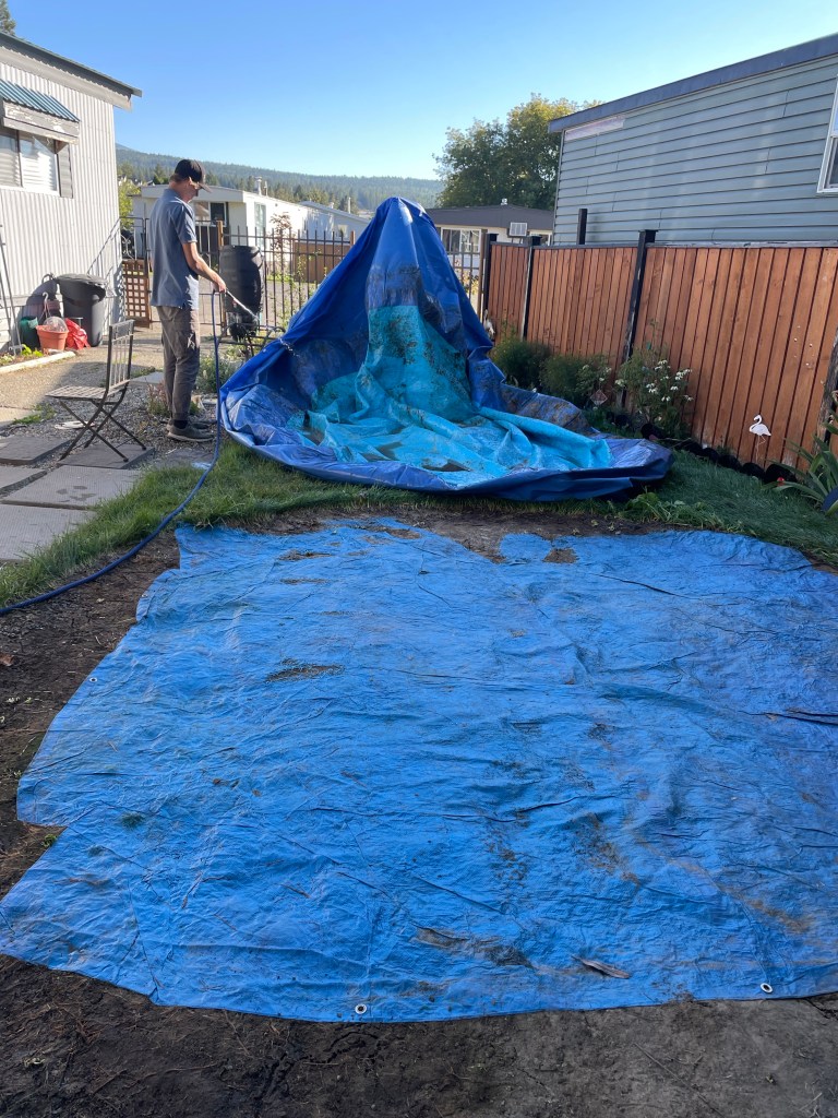 I guess I needed to catch up on sleep as my alarm was my hungry cat after 12 hours and 39 minutes in bed! It is so awkward to awake at 1 in the afternoon, so much of a gorgeous day was already done. I had a bath, got the place tidied up, started washing wine bottles as I will be bottling later this week and began the dismantling of the pool. Rae-Anne dropped off her two home stay students, Jonas and Eugene. They were incredible at getting it drained and cleaned. I am so grateful. When I dropped them off after, I stayed and had spaghetti with them although it had peppers in it. I was hungry and regretted it, lol. I did have time to go do 9 holes at the Idlewild disc golf course with Rae, Will and Sawyer before the very ill effects kicked in. It was a lovely evening at the perfect temperature on the course. Once I got home, I finished washing the bottles and my clothes and settled to watch the season finale of Big Brother. I am not especially tired but need to hit the hay.
