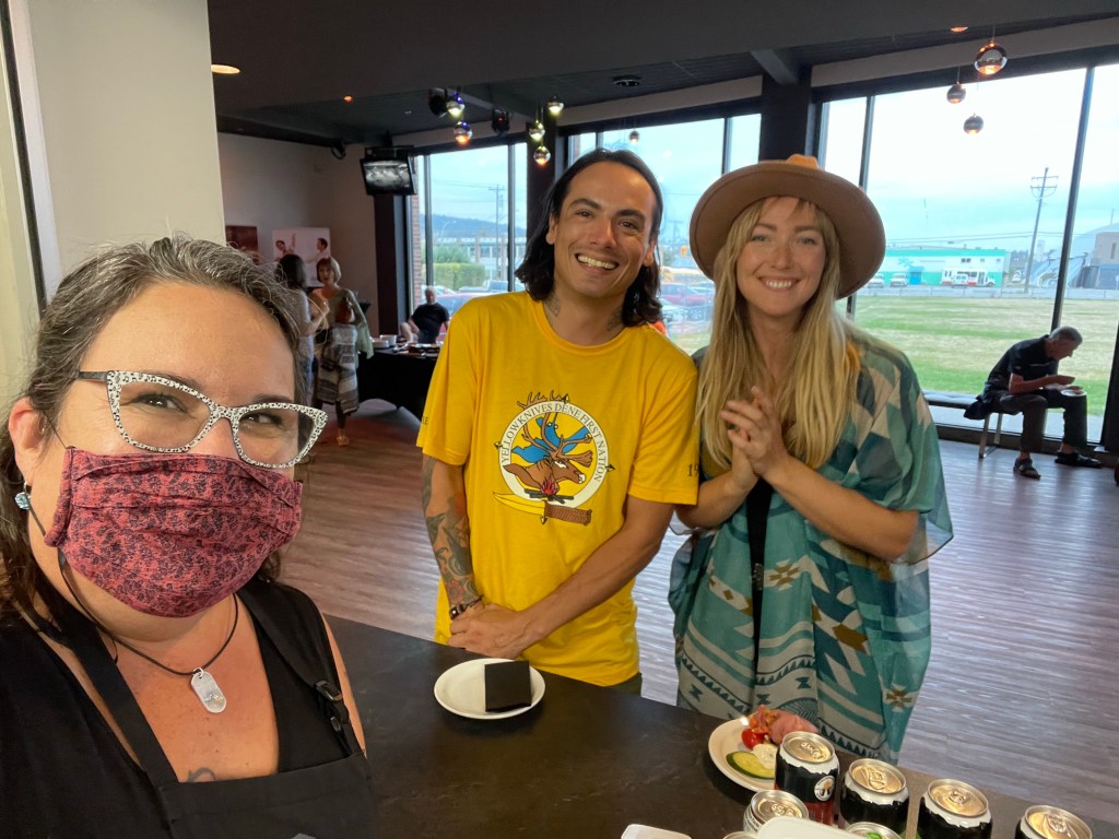 Piq Siq (Pilk silk) were the main attraction and a First Nations art exhibit. I was surveying the lobby when I saw a couple that I should know but not from here. When they came to my bar I said I recognized them, were they musicians, and as it happened they were Court and Ali the bird and bear from Amazing Race Canada! I admit to being fan girl but remained calm and cool. As i had been on a reality show before, we had a great conversation about Producers, and editing. They were happy to take a selfie with me and I was thrilled to be there in spite of my grief.