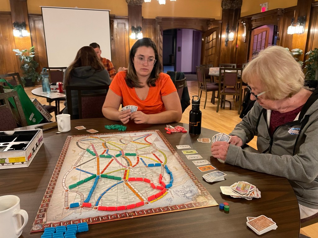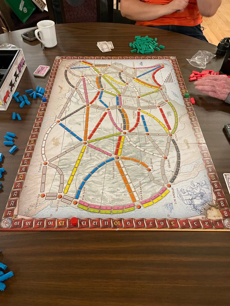 I managed to get all deadlines met a day early and a jump on a big file. At 3 pm I met Stacey at Kootenay Winecrafters and we bottled my two batches of wine. This space is clean and beautiful and we got them done in no time at all. Elva gifted me with a mug, bottle stopper and other treasures when I left. What a nice perk! I went back to the office until it was time to head to Cranbrook History Centre for the Ticket to Ride game night. Not too many showed up but we were a friendly group and I kicked butt the first game against Monika and Marg. Travis joined us for the second game and I came in a close second. Overall I had the highest score and won an expansion pack which is awesome! Gordon did a good job although I suspect if he sent a reminder email more people would have showed up. I hope we have more of these nights. It was the first time in a very long time that I scheduled some pure fun for myself. I am up as long as I like tonight as I plan no alarm and then will go in to take care of payroll and anything else that pops up but mostly will rest for the big move in on Saturday. It will be good to know Mom’s stress is over and she is settled here. Also good she will be here for Ryon’s memorial. The plans are being made.