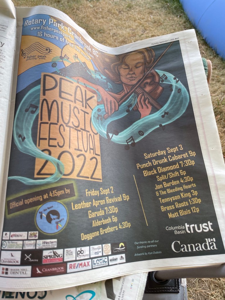 Up and off to the office to run a payroll and take care of a couple clients before it was off to set up the site for Peak Music Fest 2022 at Rotary Park. My neighbour Jessie met me at the office with his truck to pick up the two fabulous tents leant to us by Community Foundation of the Kootenay Rockies.